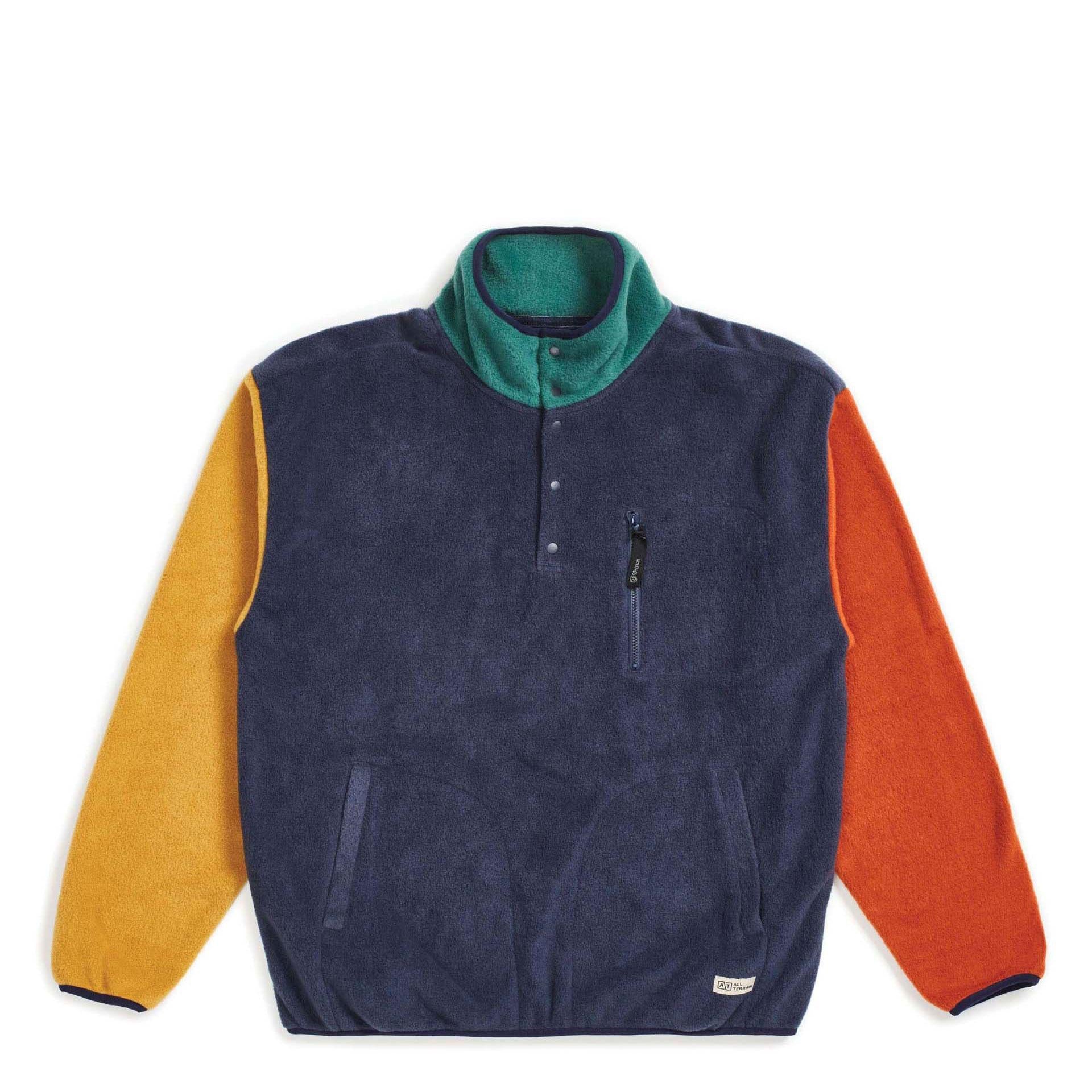 A mock-neck pullover jacket made in a 100% polyester soft-pile Arctic fleece. It features a snap placket, zipper chest pocket, and elasticized self-adjusting wrist and waist hems.