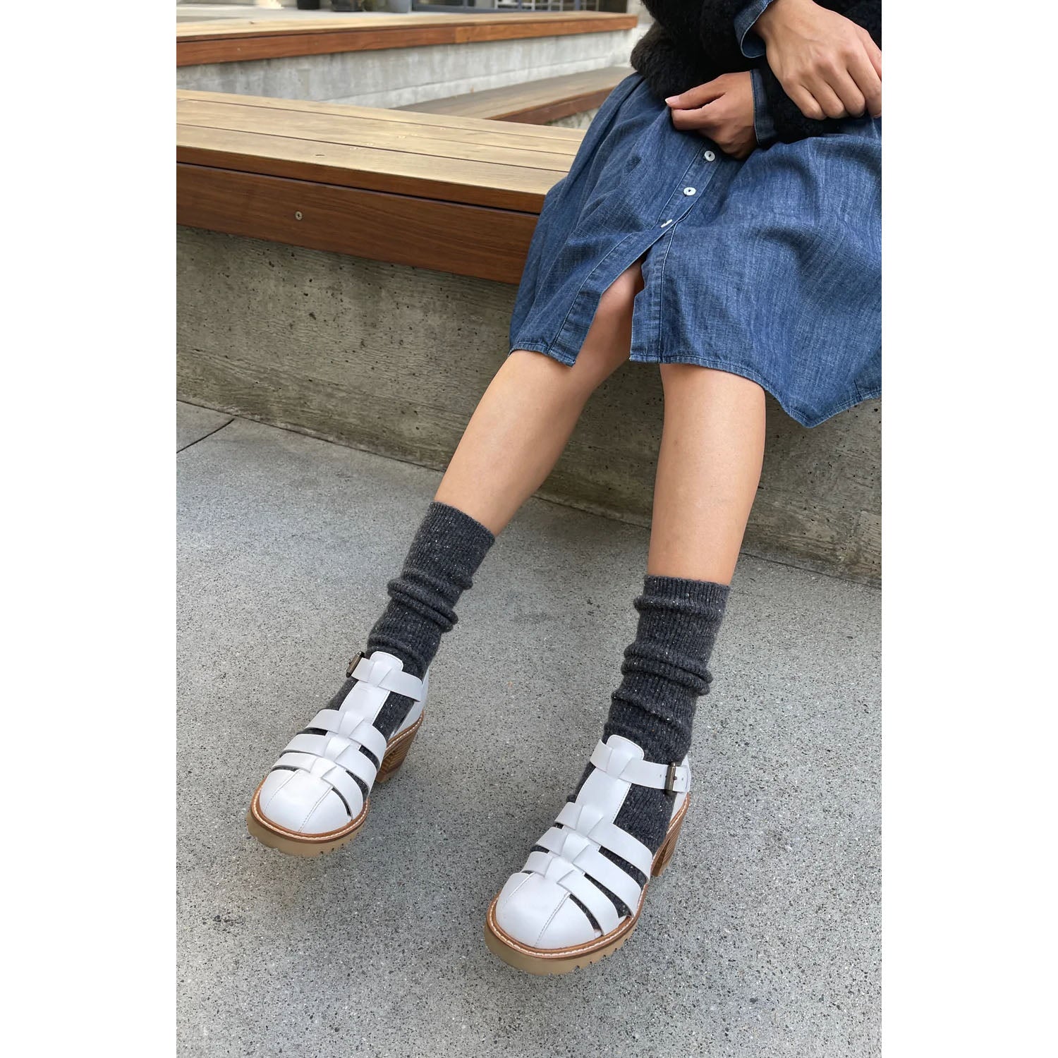 Thick wool blend knit winter socks with speckles.