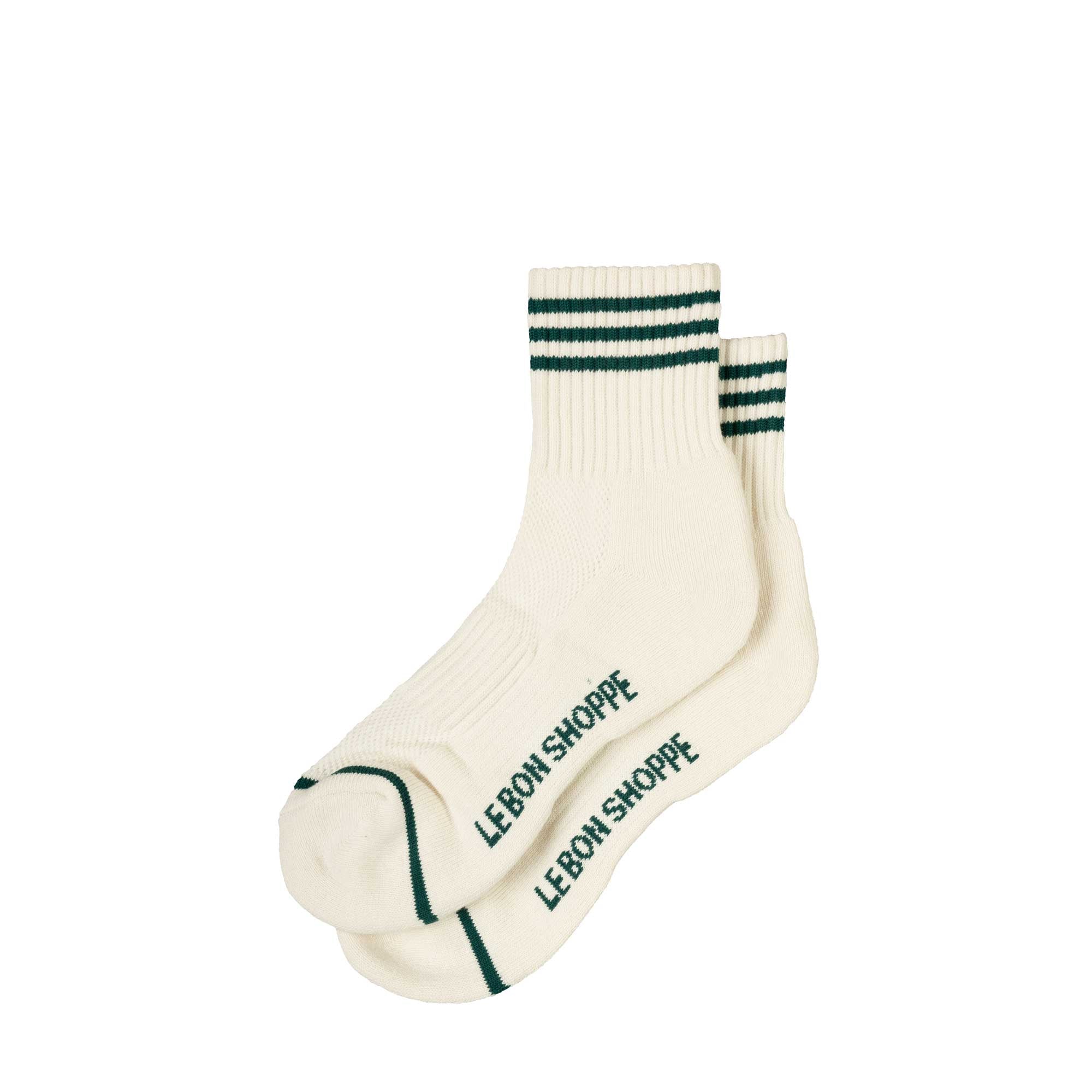 Le Bon loved their Boyfriend Socks so much they decided she needed a sister, the Girlfriend Socks is the cool crew version of their original bestseller and classic Boyfriend Socks. These beauties feature a triple contrast stripe at the opening and a shorter classic crew sock length. She is a universally quintessential sock and especially flattering for our petite ladies.