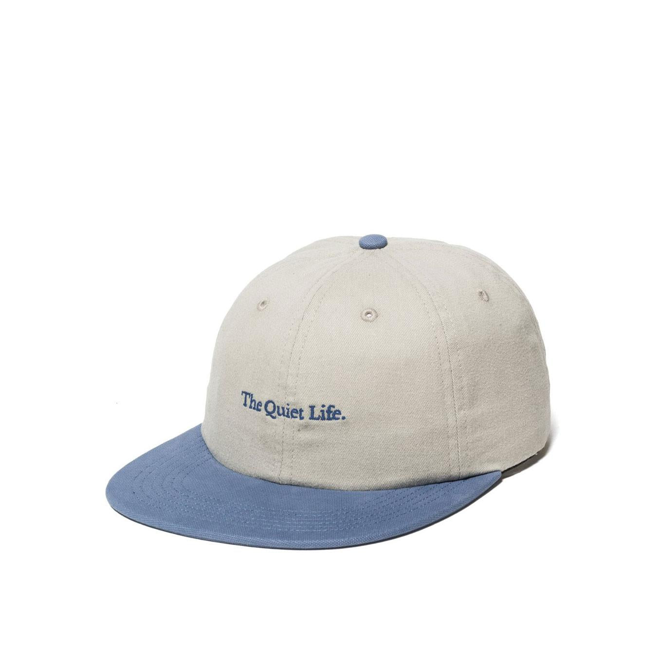 Quiet Life Serif Polo hat - Stone/Slate. Brown leather strap back.