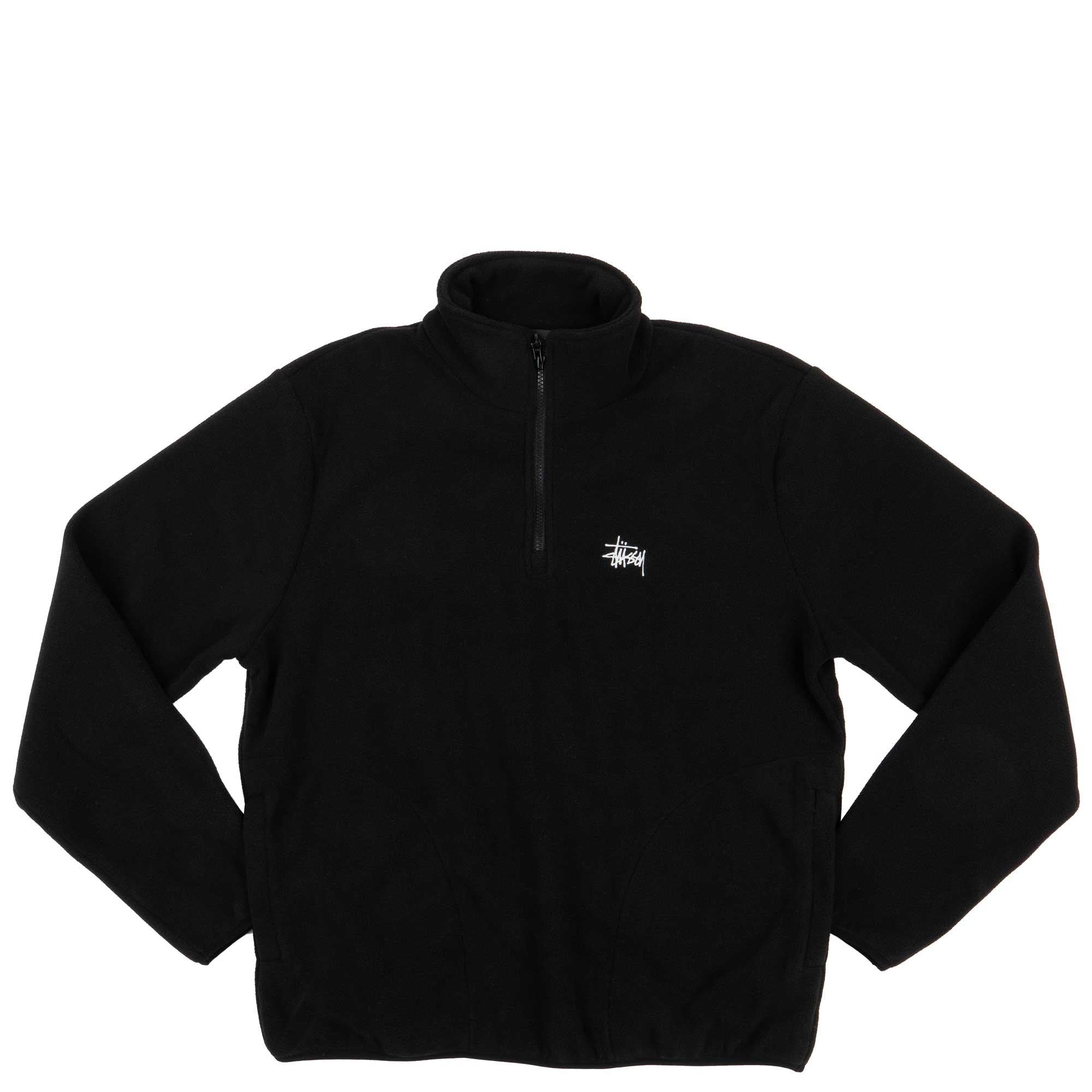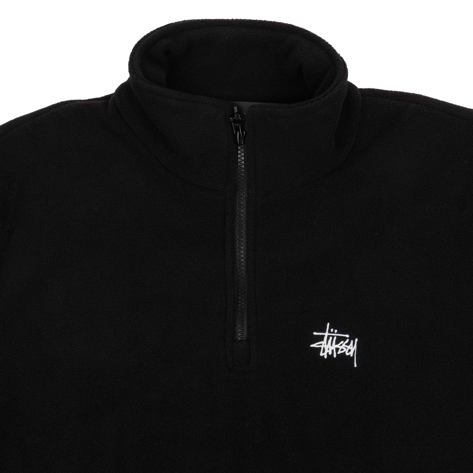 Regular fit polar fleece 1/4 zip mock neck with contrast embroidered logo.
