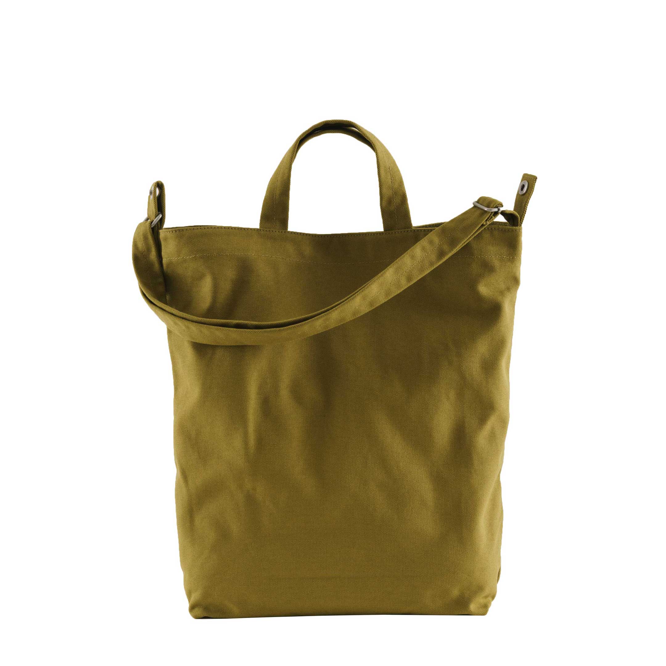 Baggu's classic everyday tote. Holds a 15" MacBook. Interior zip pocket holds an iPhone Plus. Two handles and 40" adjustable strap to carry in hand or over shoulder. Matte silver hardware. Durable taped seams.