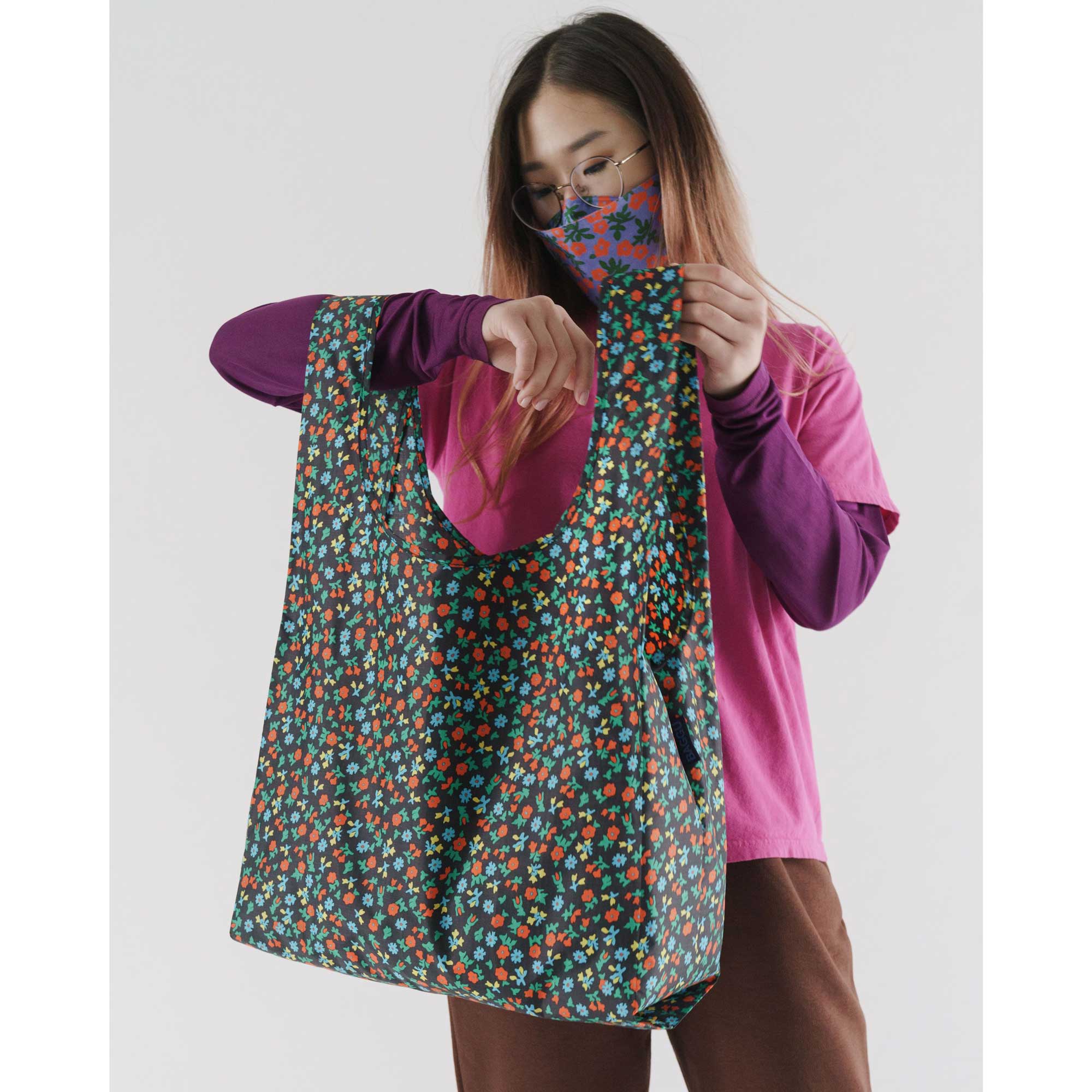 Baggu Standard Baggu, black calico florals