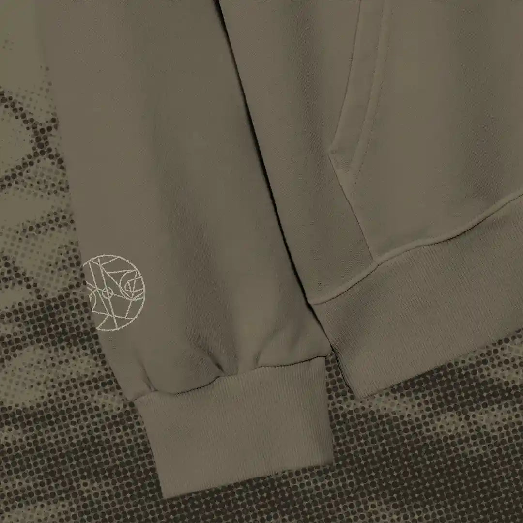 This hoodie has an oversized fit, drop shoulder, and no drawcord for a minimal appearance.