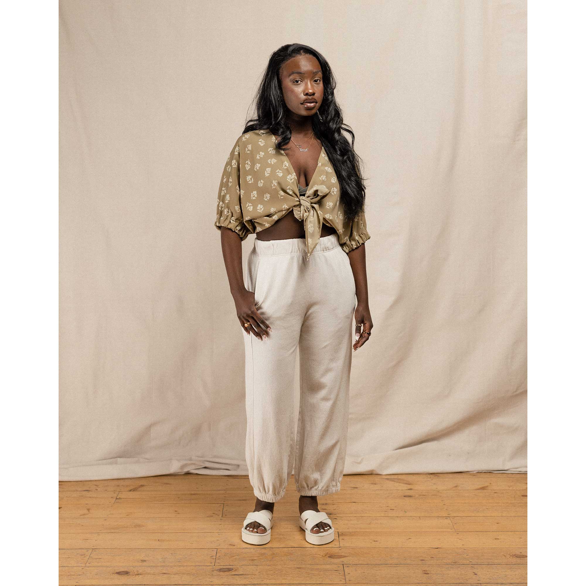 Cub Wrap top, tan plant print