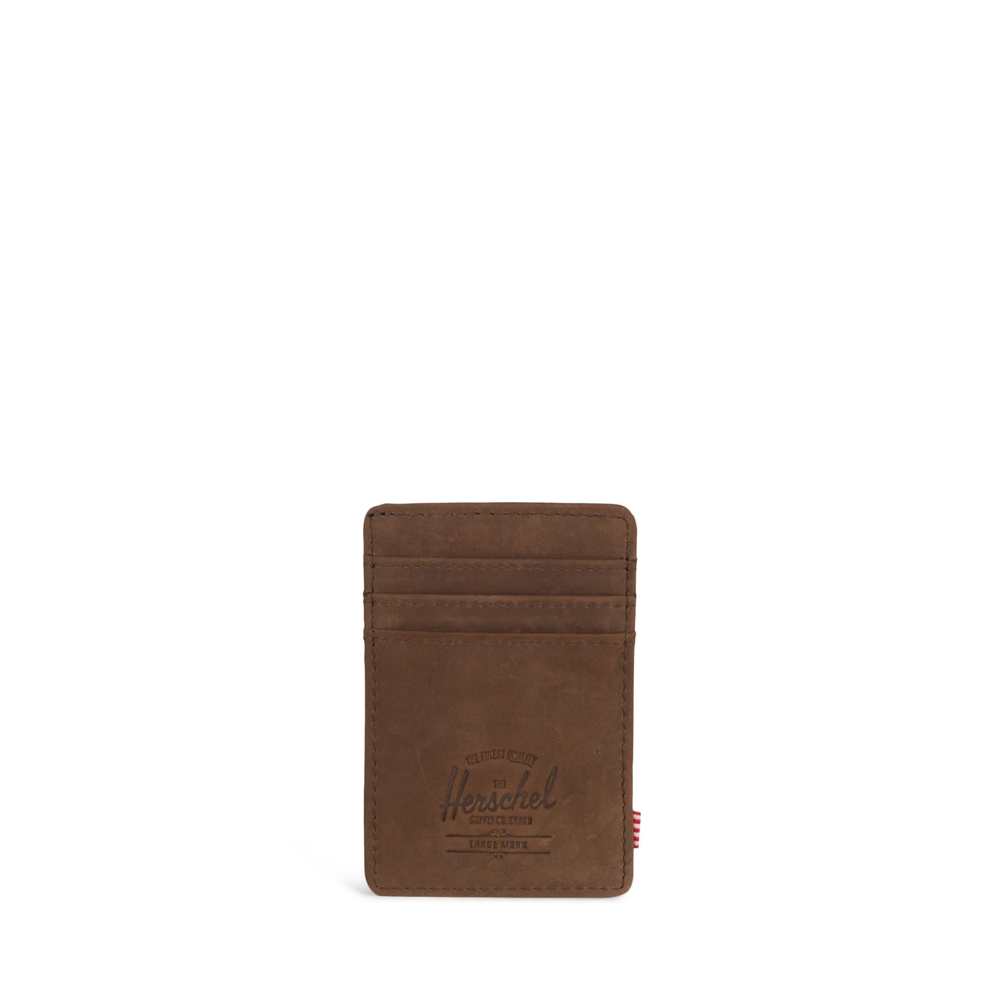 The Raven wallet functions as a vertical card holder with multiple slots and a branded metal currency clip.