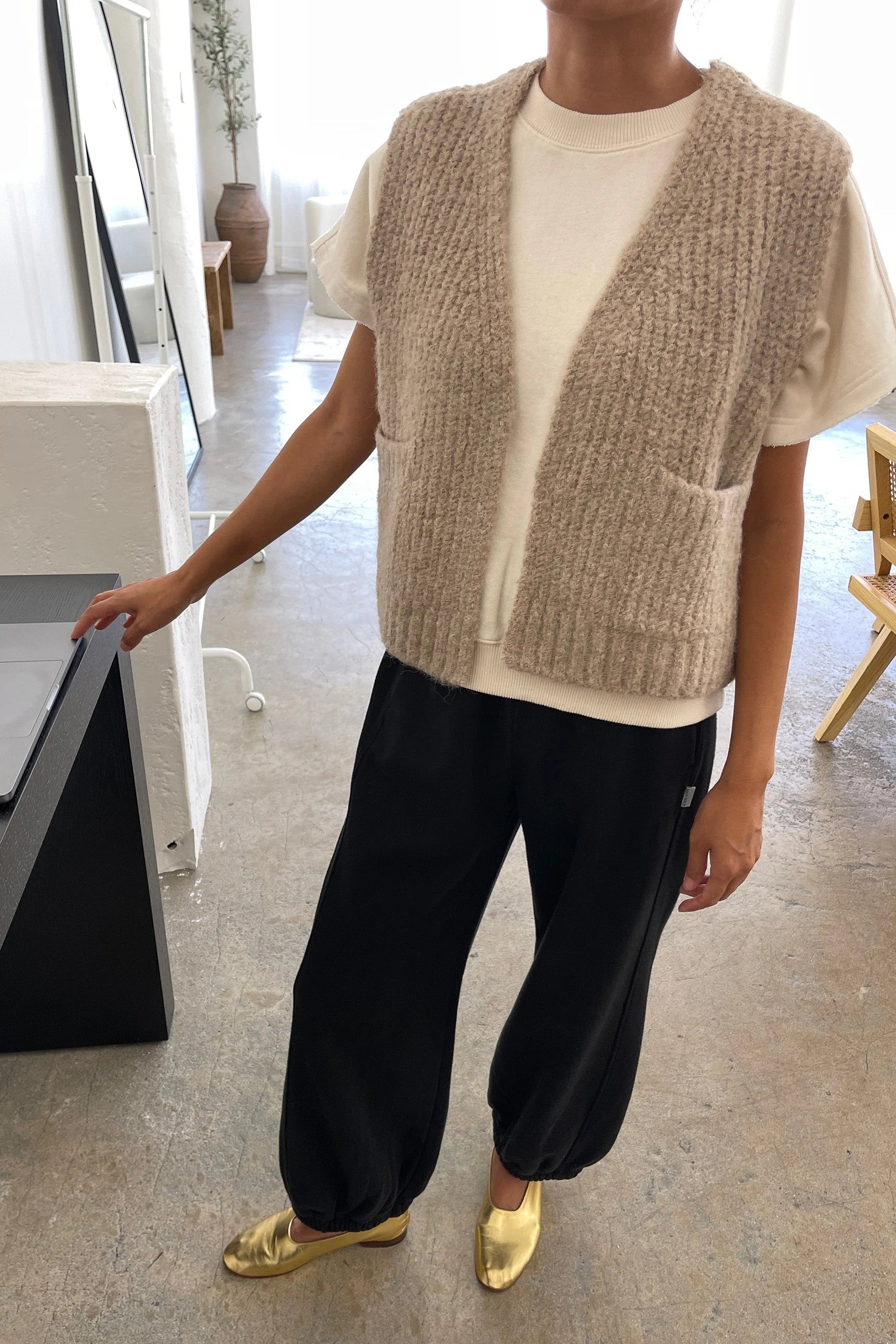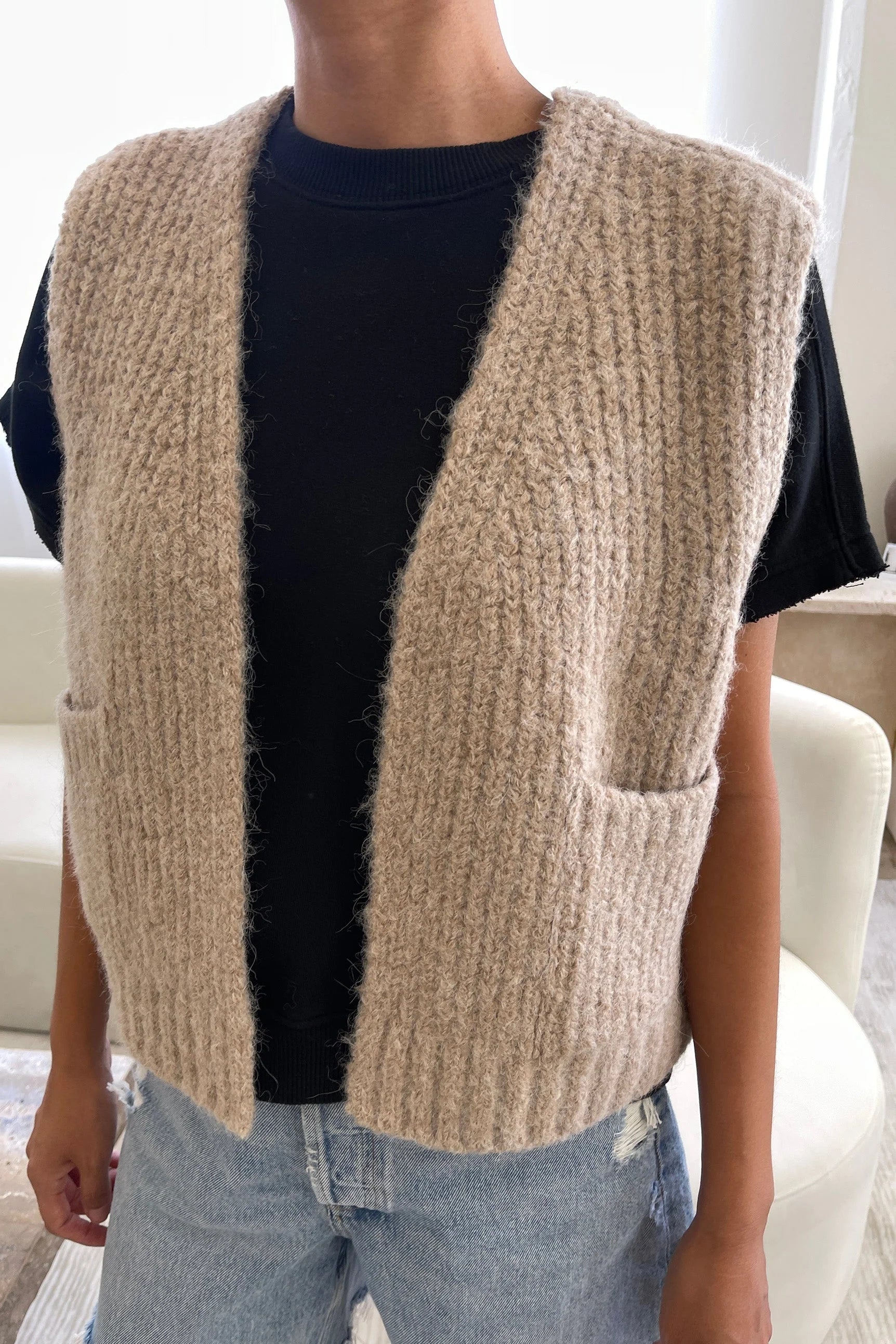 Le Bon Shoppe Womens Alpaca Grandpa Vest, oatmeal