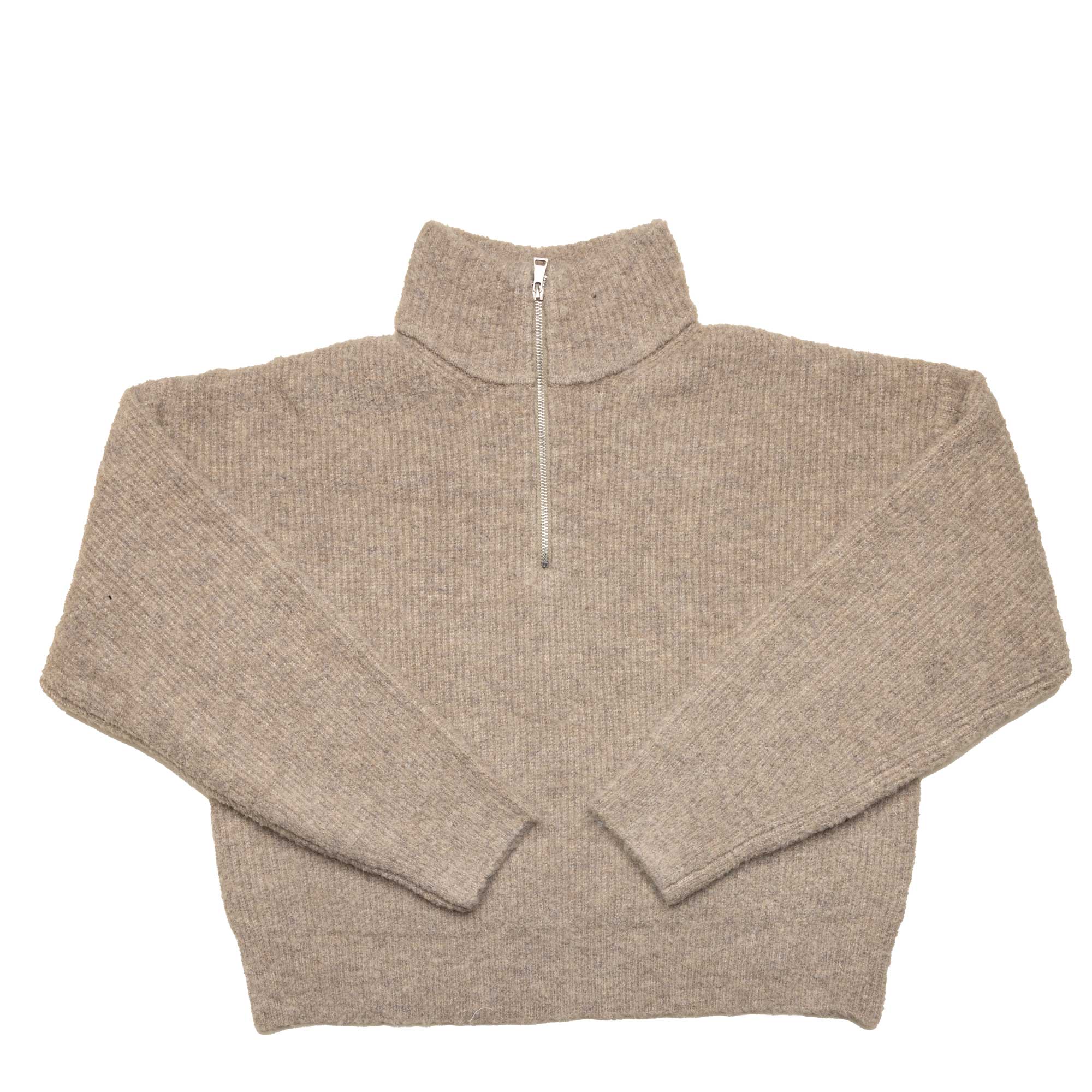 Half-zip mock-neck yarn knit sweater with a boxy fit