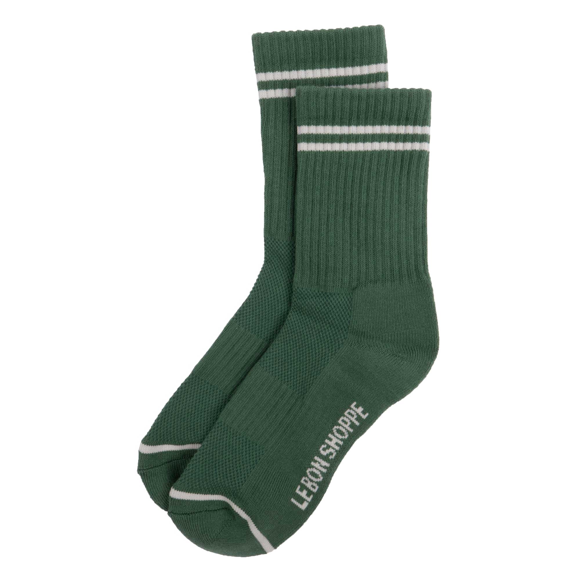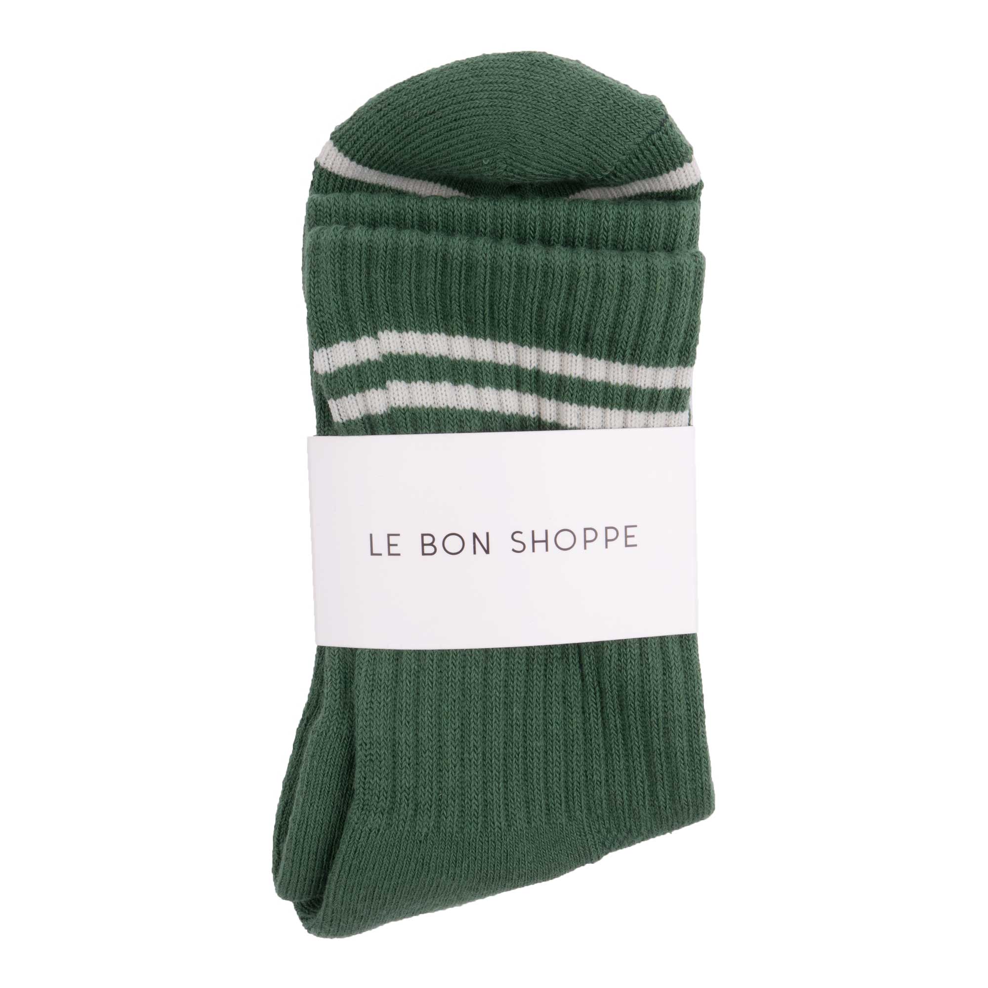 The Boyfriend Sock is one of Le Bon's signature styles and a year round bestseller. She is the perfect mix of function and fashion creating an effortless sporty vintage charm to any outfit. She is slightly longer than a classic crew and has a contrast double stripe. Durable and comfortable she upgrades any outfit. One of our go-to pairings well-worn denim and Converse chucks. They are obsessed over at the Le Bon Shoppe HQ- you can find her there on a pair of happy feet nearly 365 days a year. We don't like to play favourites so shhh don't tell anyone but this girl has a special place in our heart!
