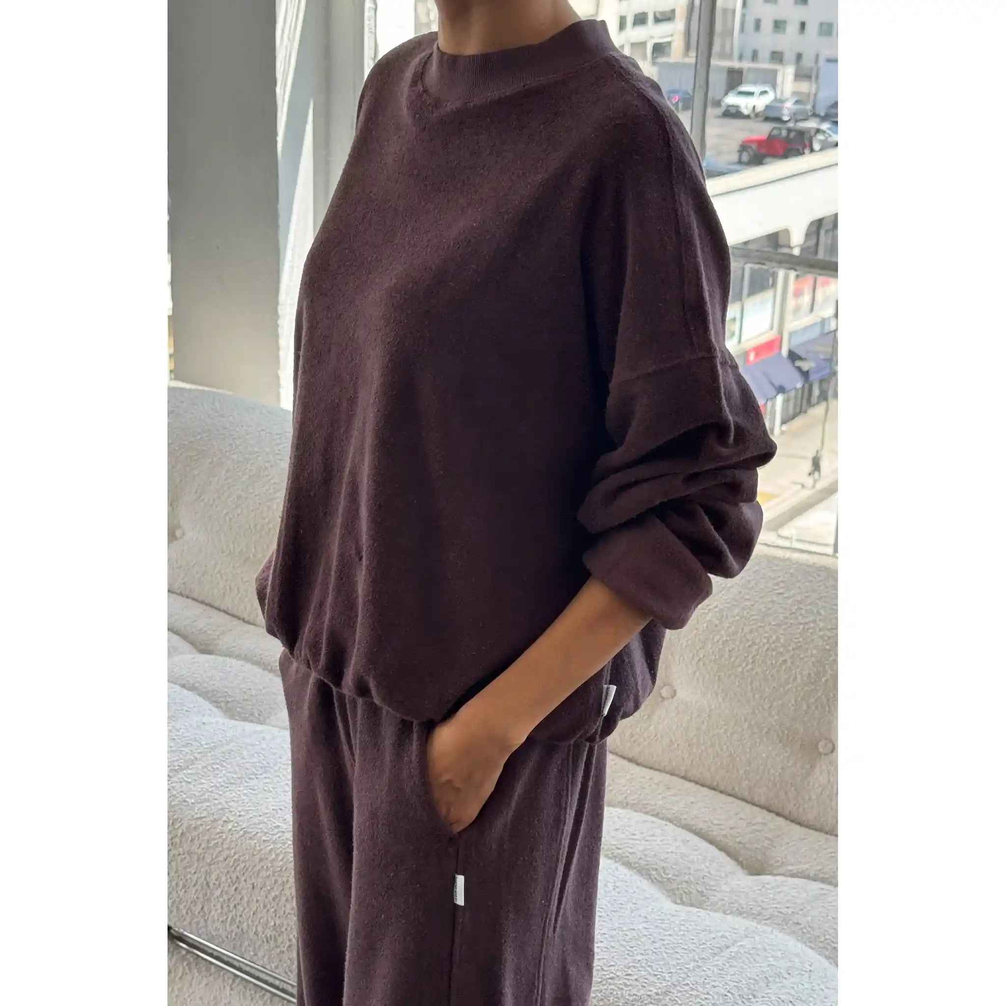 The Cotton Terry Daisy Long Sleeve Top merges oversized comfort with refined details, offering the perfect transitional piece for any season. Made from ultra-soft cotton terry, it boasts a plush exterior and cozy fleece interior, ensuring all-day warmth. Combining an oversized fit with design elements from the Naturelle Tee, it features a relaxed fit with elasticated bands at the sleeves and hem for a touch of definition.
