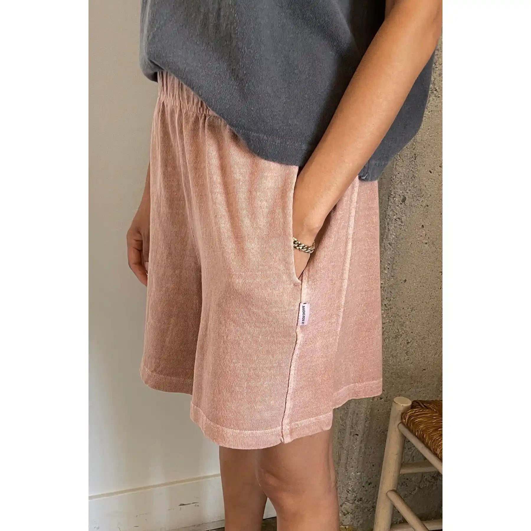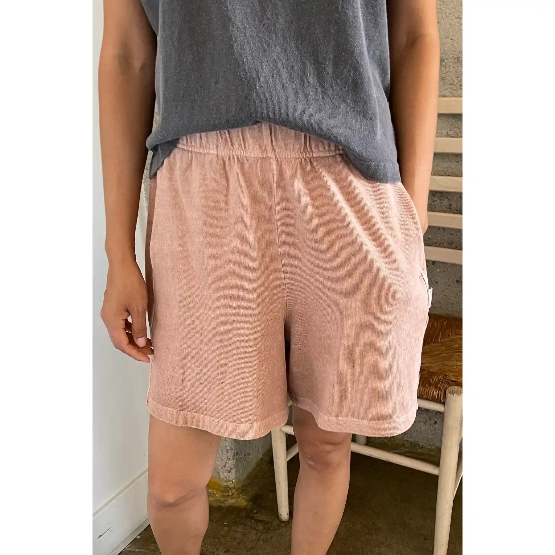 Why are most knit shorts super short, thin and tight? Le Bon Shoppe needed heavy weight knit high waisted, A-line, not showing too much skin modern retro basketball shorts! Flattering design with a slightly shorter out seam and perfect mid thigh length. This beauty is made in 100% cotton heavy weight low gauge knit. Super raw textured yet soft and airy! She is garment dyed and pre-washed for a rich textured look with an ultra soft hand.