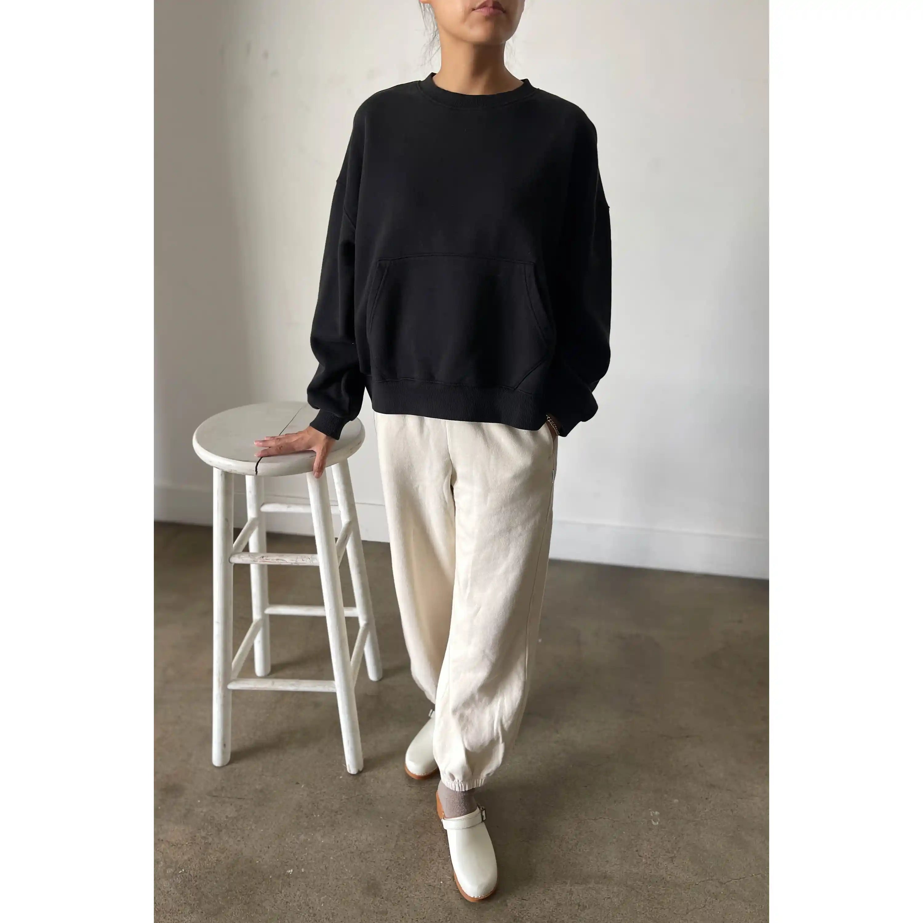 Behold this perfectly oversized classic crewneck sweatshirt crafted from the softest cotton French terry! It even boasts a dainty little kangaroo pocket for that extra dash of charm, perfect for a sporty or loungewear vibe.