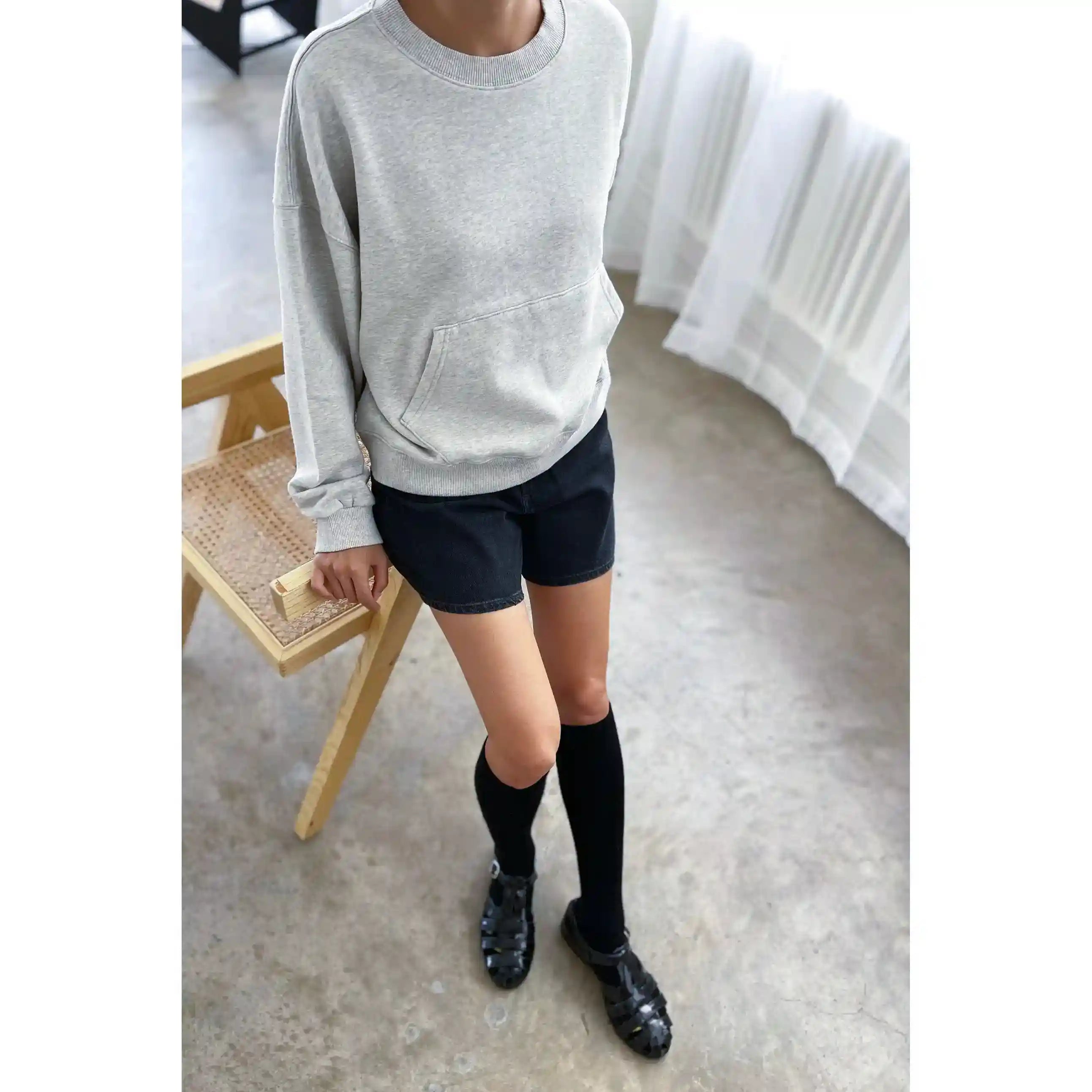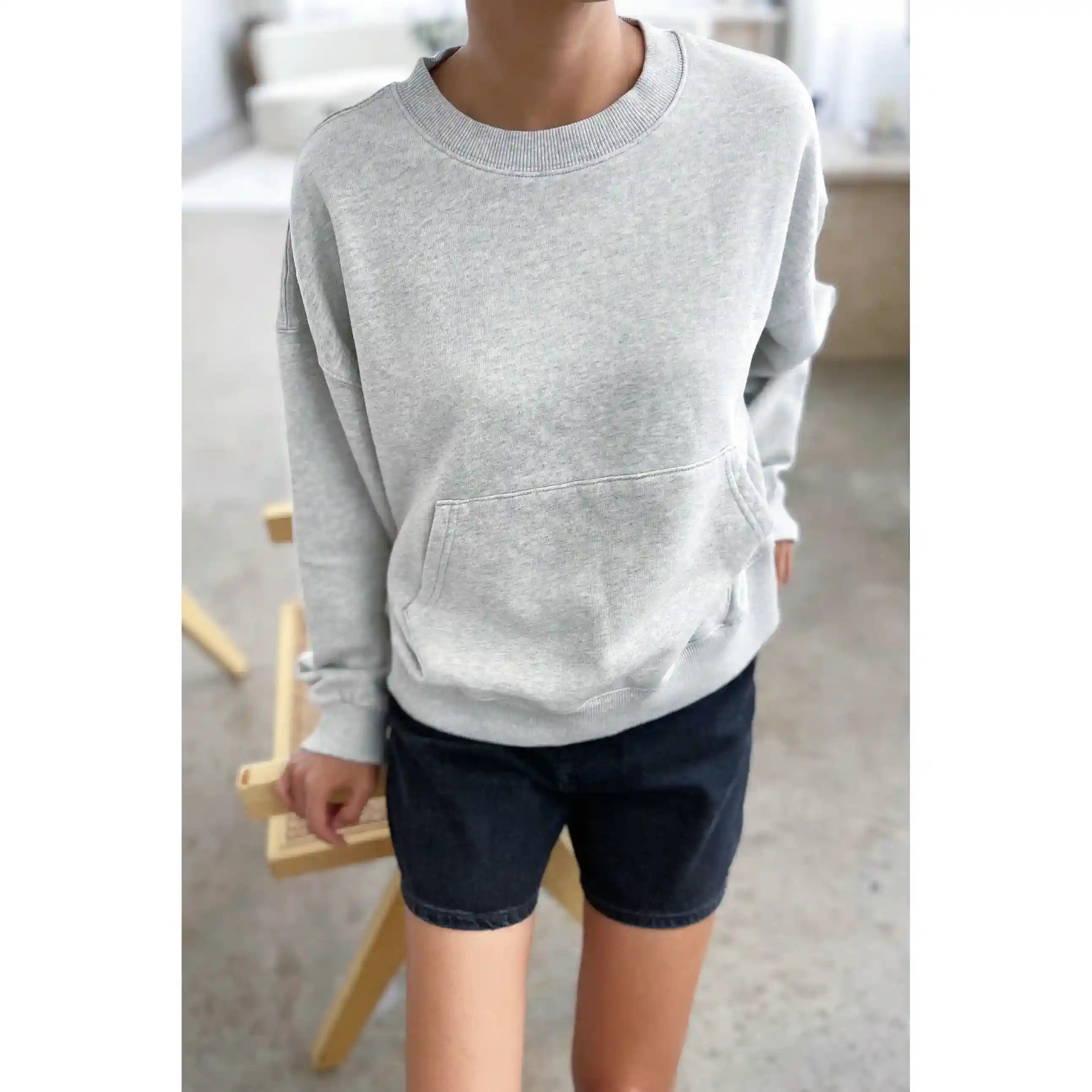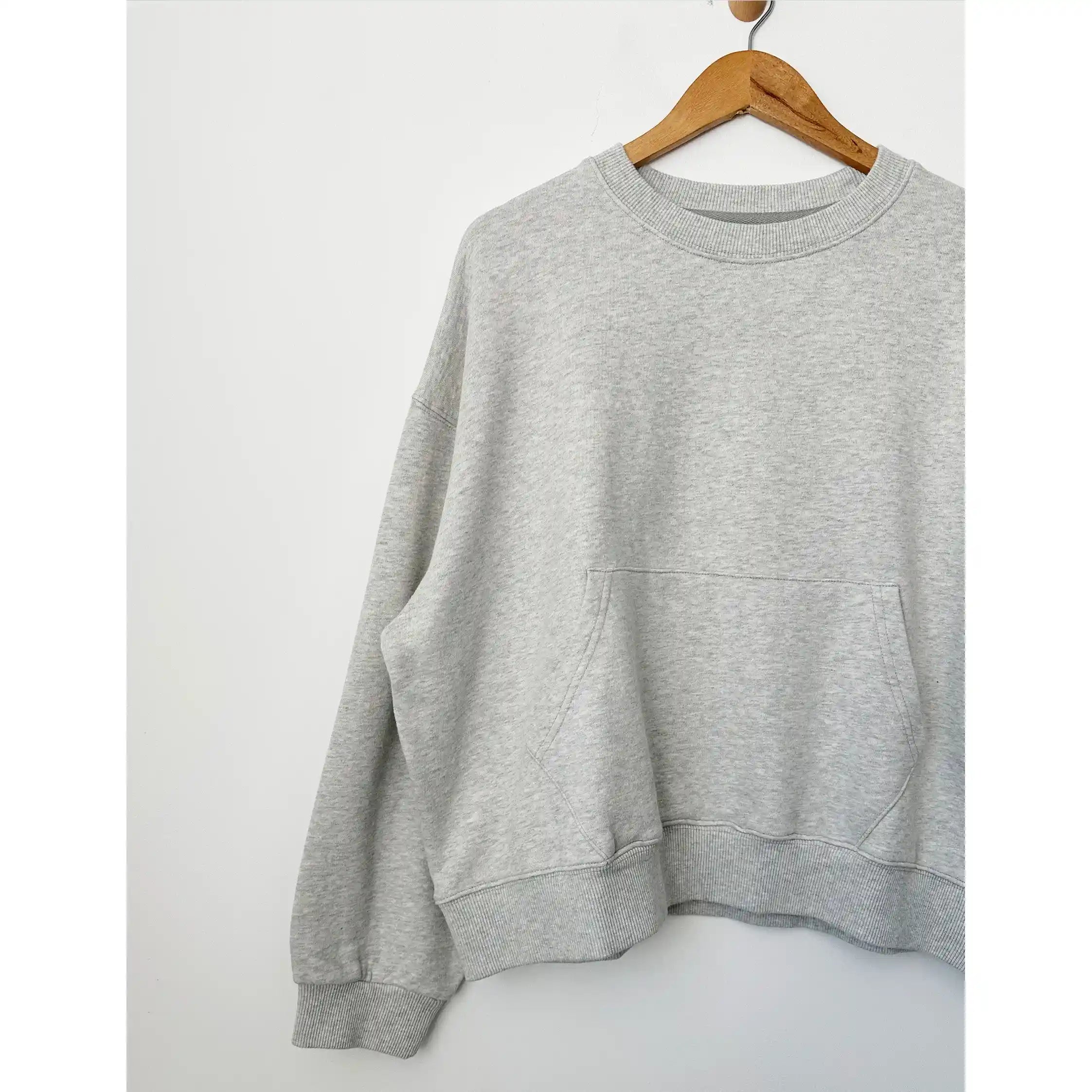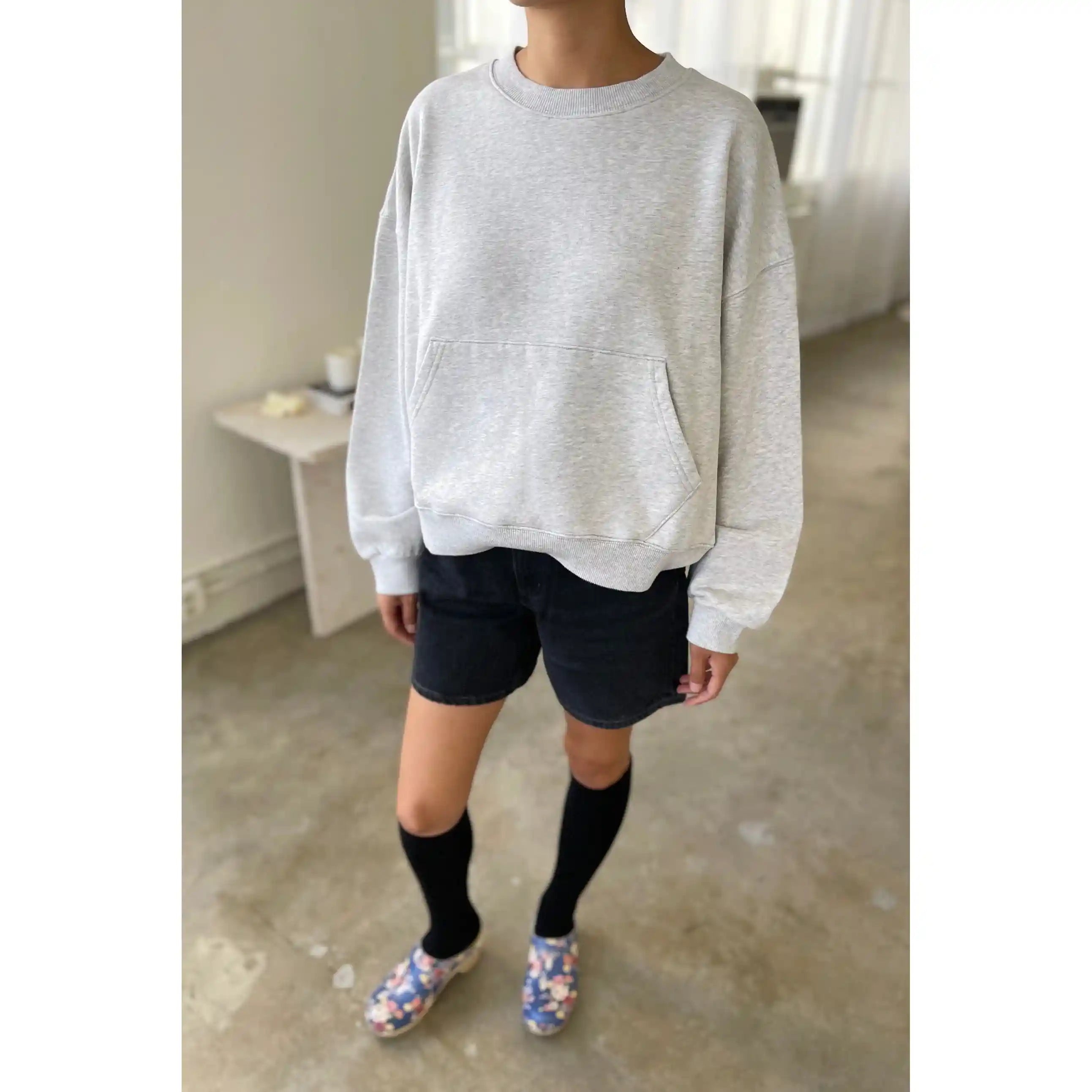 Behold this perfectly oversized classic crewneck sweatshirt crafted from the softest cotton French terry! It even boasts a dainty little kangaroo pocket for that extra dash of charm, perfect for a sporty or loungewear vibe.