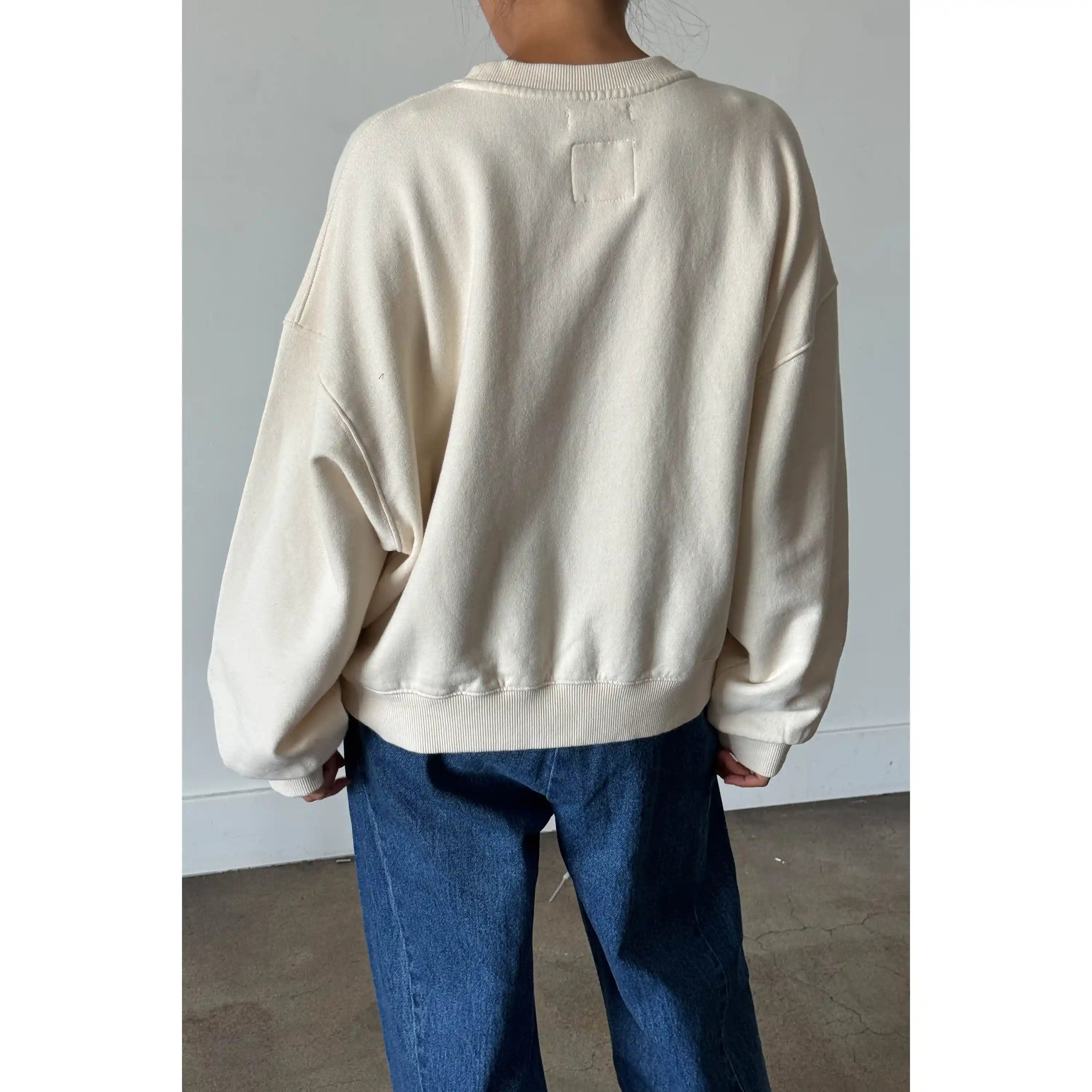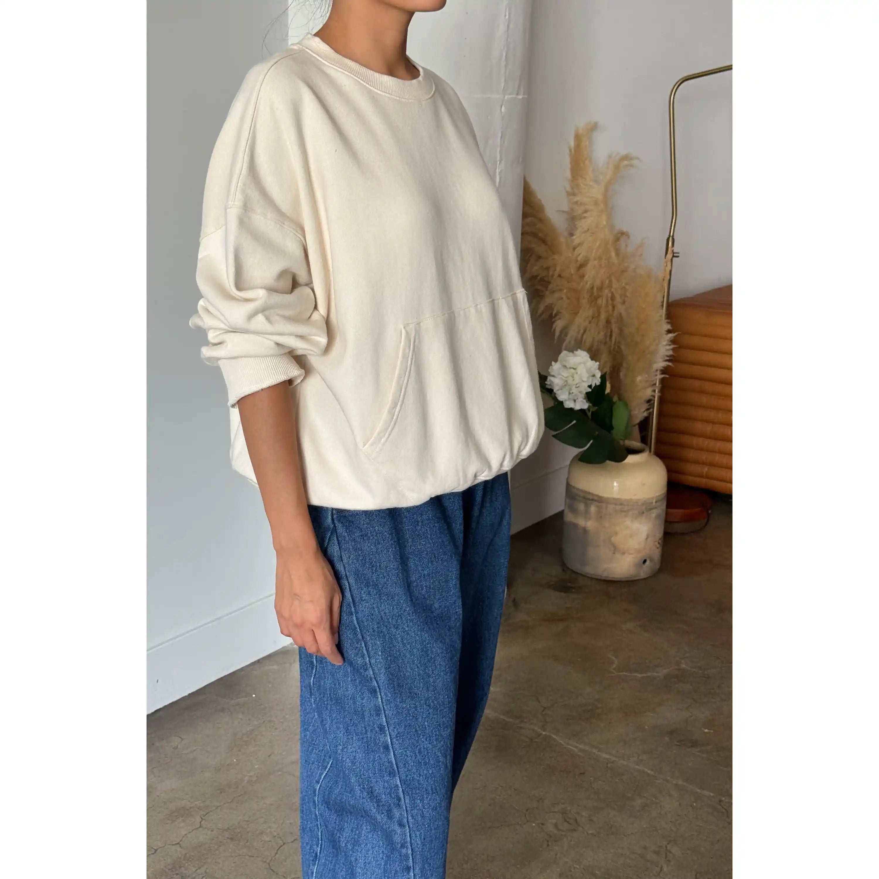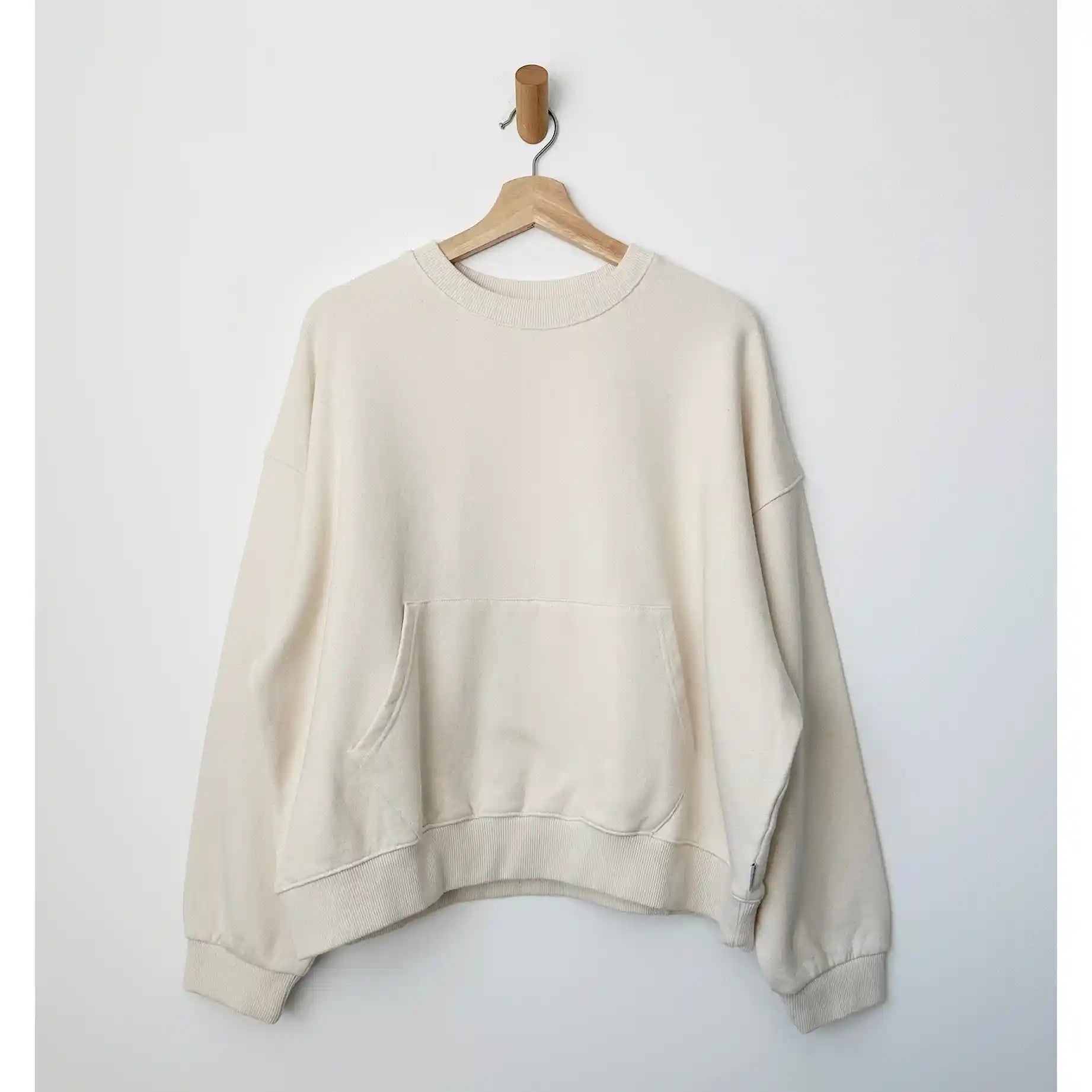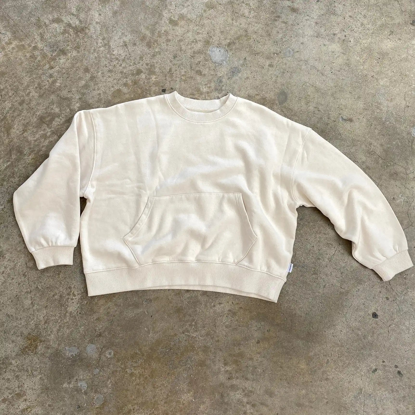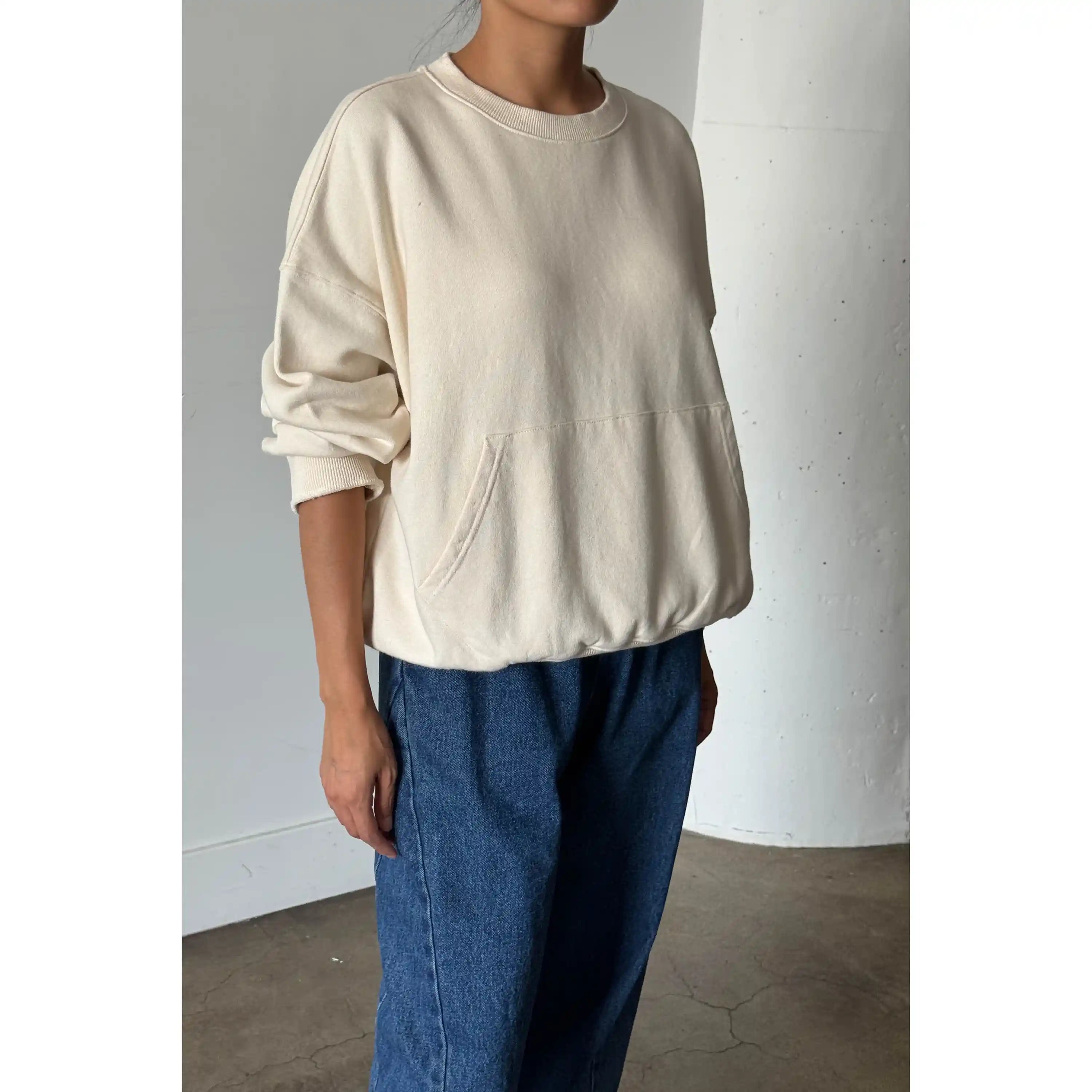 Behold this perfectly oversized classic crewneck sweatshirt crafted from the softest cotton French terry! It even boasts a dainty little kangaroo pocket for that extra dash of charm, perfect for a sporty or loungewear vibe.