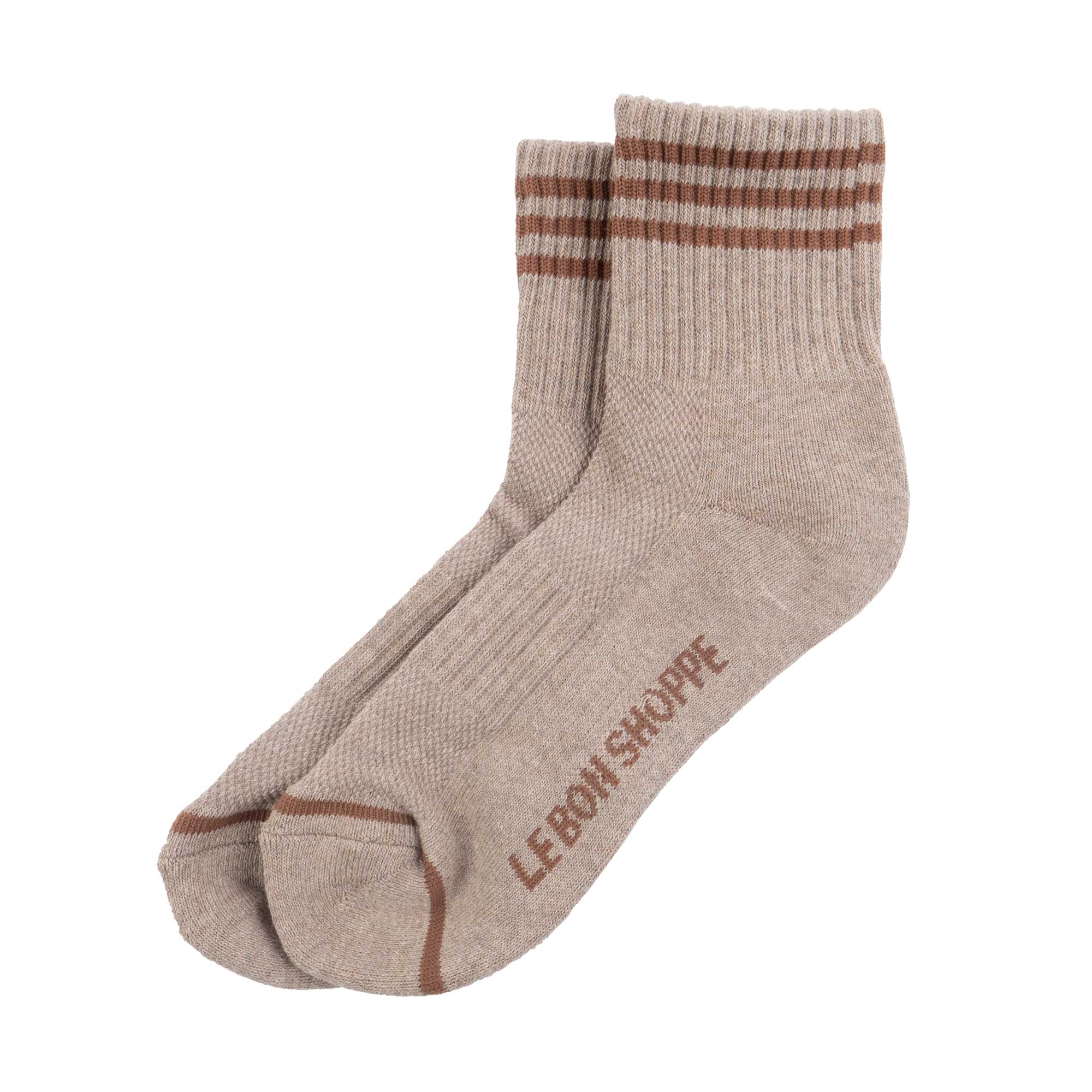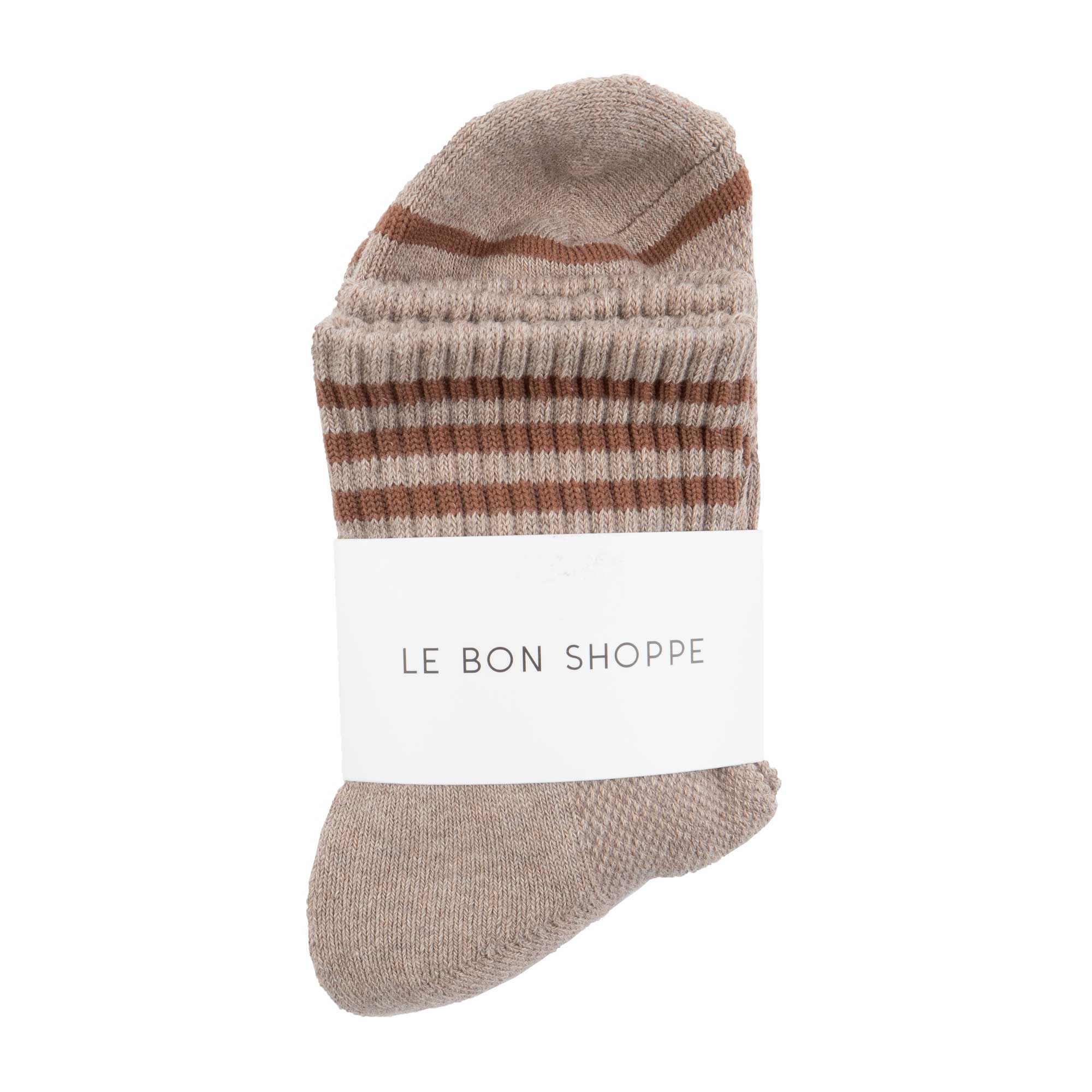Le Bon loved their Boyfriend Socks so much they decided she needed a sister, the Girlfriend Socks is the cool crew version of their original bestseller and classic Boyfriend Socks. These beauties feature a triple contrast stripe at the opening and a shorter classic crew sock length. She is a universally quintessential sock and especially flattering for our petite ladies.