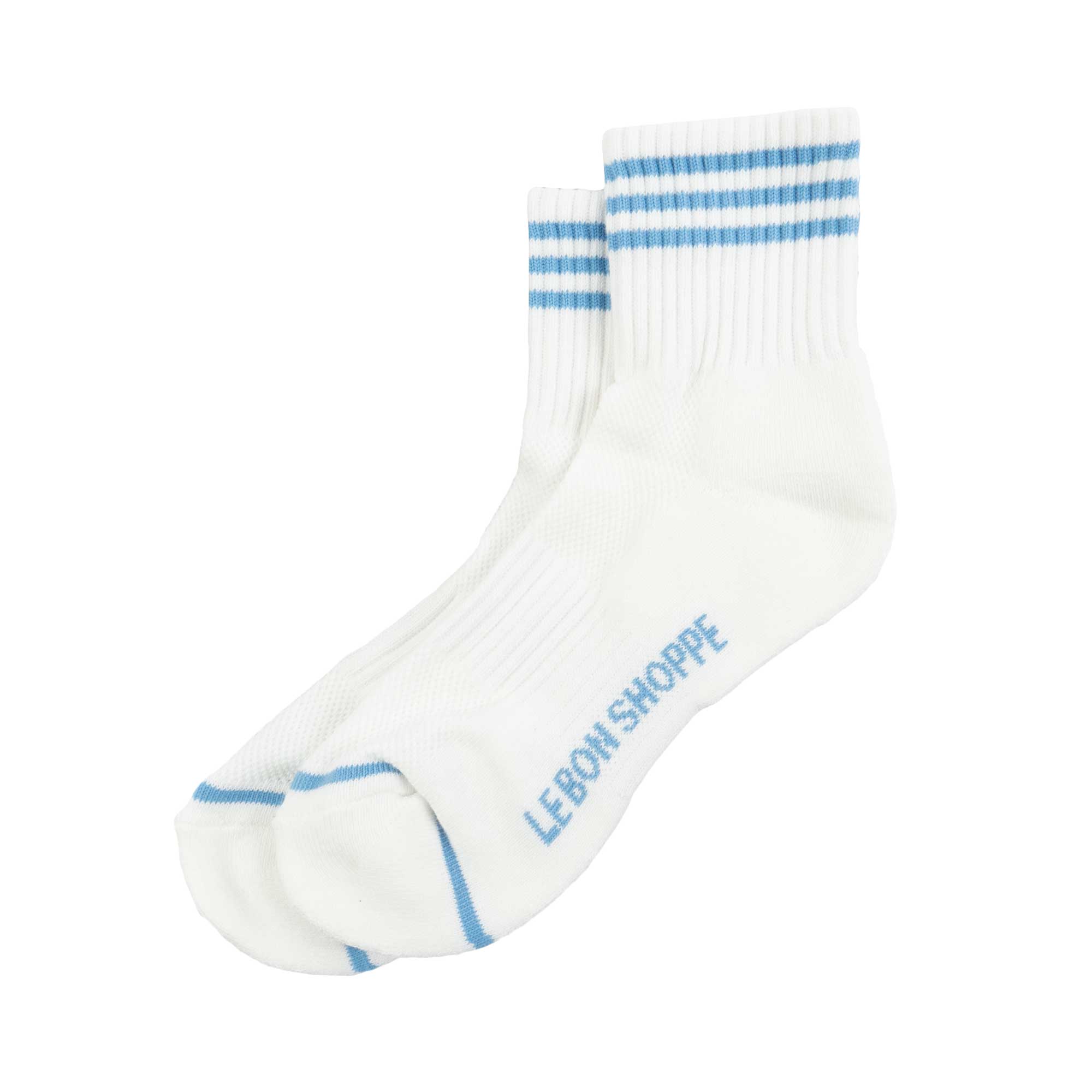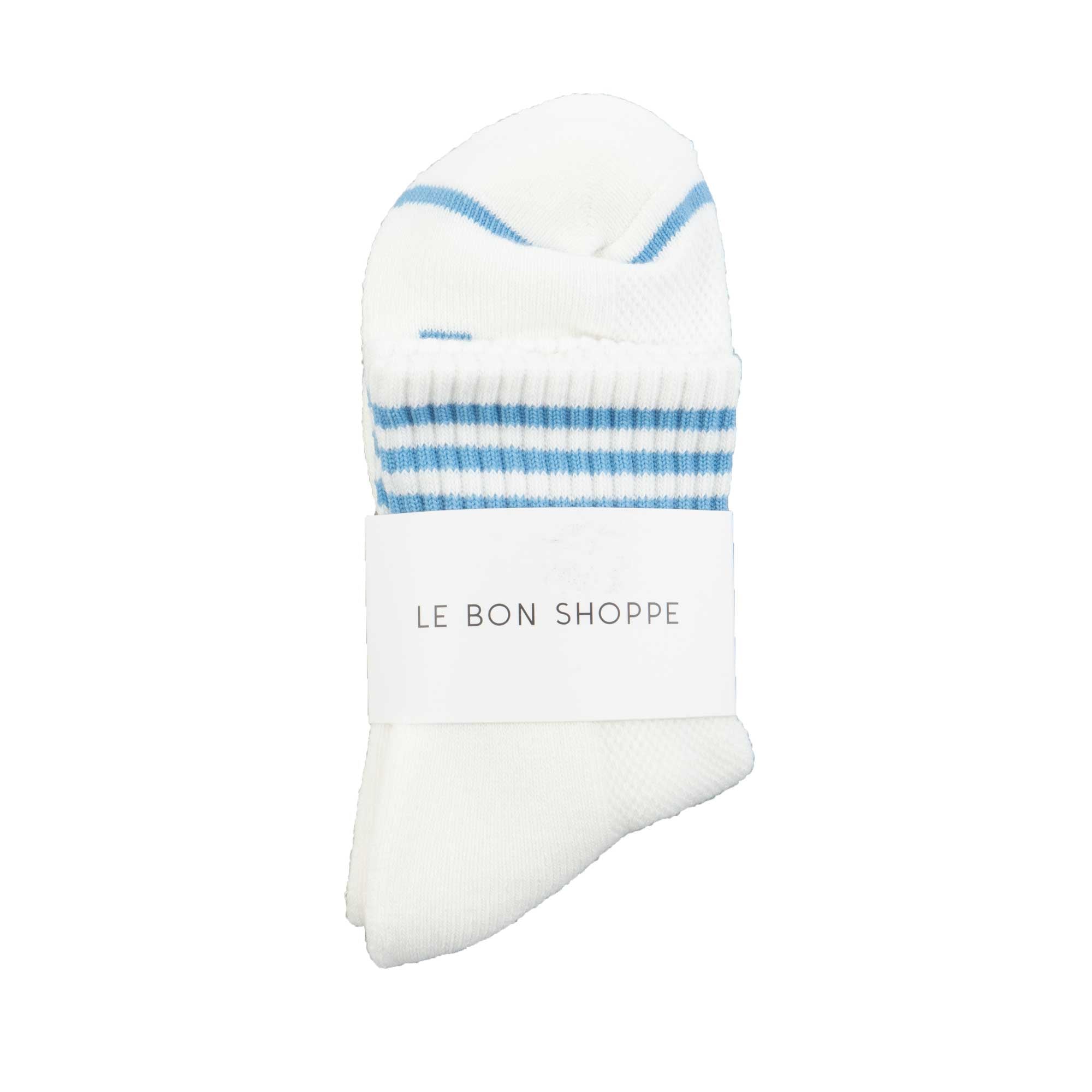Le Bon loved their Boyfriend Socks so much they decided she needed a sister, the Girlfriend Socks is the cool crew version of their original bestseller and classic Boyfriend Socks. These beauties feature a triple contrast stripe at the opening and a shorter classic crew sock length. She is a universally quintessential sock and especially flattering for our petite ladies.