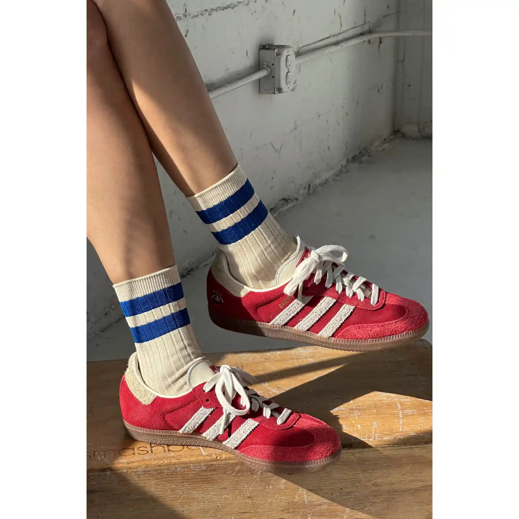A bold varsity stripe is timeless and always a classic. Her Varsity Socks is a varsity striped version of Le Bon's OG Her Socks which are classically ribbed, perfect height, cotton blend durable, chic go to socks. Add an understated sporty touch to any look with this bold stripe contrast version of Her Socks. She loves to be worn with a mini skirt, plaids, and oversized cable knit sweaters.