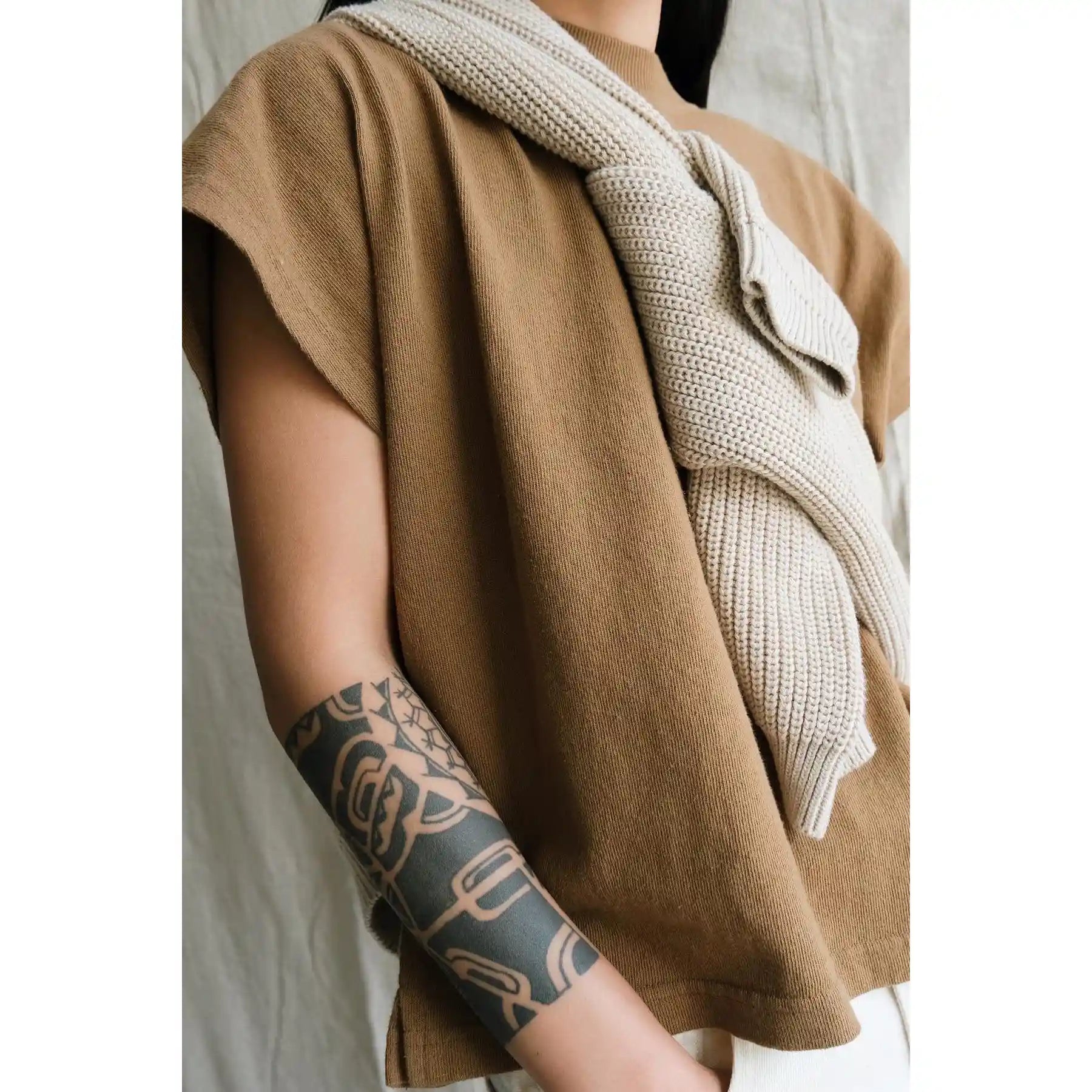Jeanne Tee is Le Bon's perfect muscle tee. She features a shorter length to pair perfectly with high waisted bottoms but still give enough coverage for mid-rise bottoms and just the right amount of off shoulder dolman sleeve. She has a high crew neck with an extra wide neckband that adds to her signature charm.
