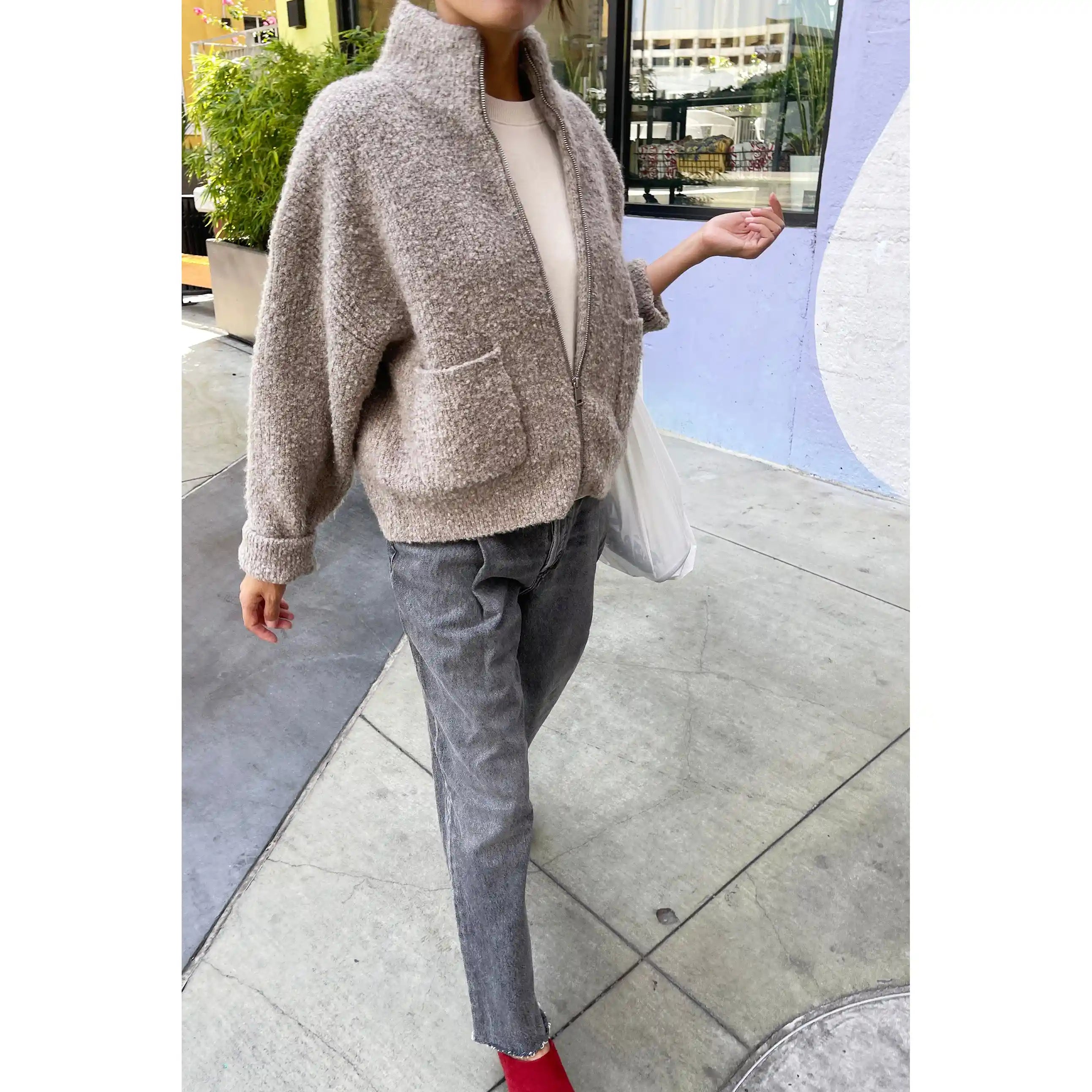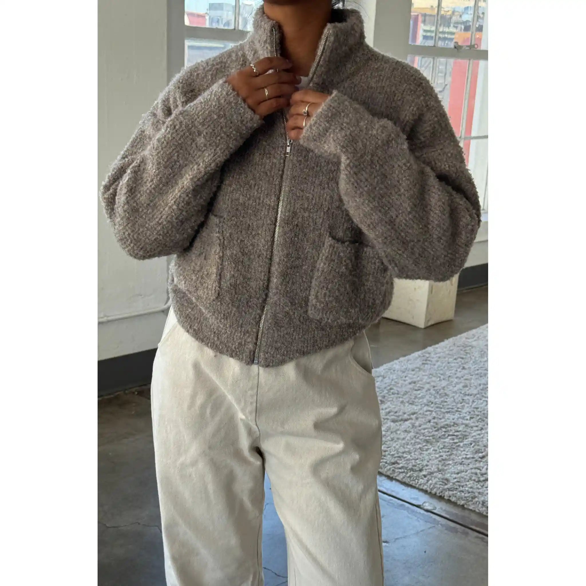 Effortless and functional, the Louie Jacket seamlessly blends form and function with its timeless silhouette and cozy warmth. Defined by a full-zip front, pockets, and mock neck, similar to the Andre Sweater. It maintains a slightly oversized, boxy fit and is made of super dreamy, fluffy Envie yarn. Consider it the perfect, non-itchy sweater that pairs well with everything, making it the ideal cool-weather staple.