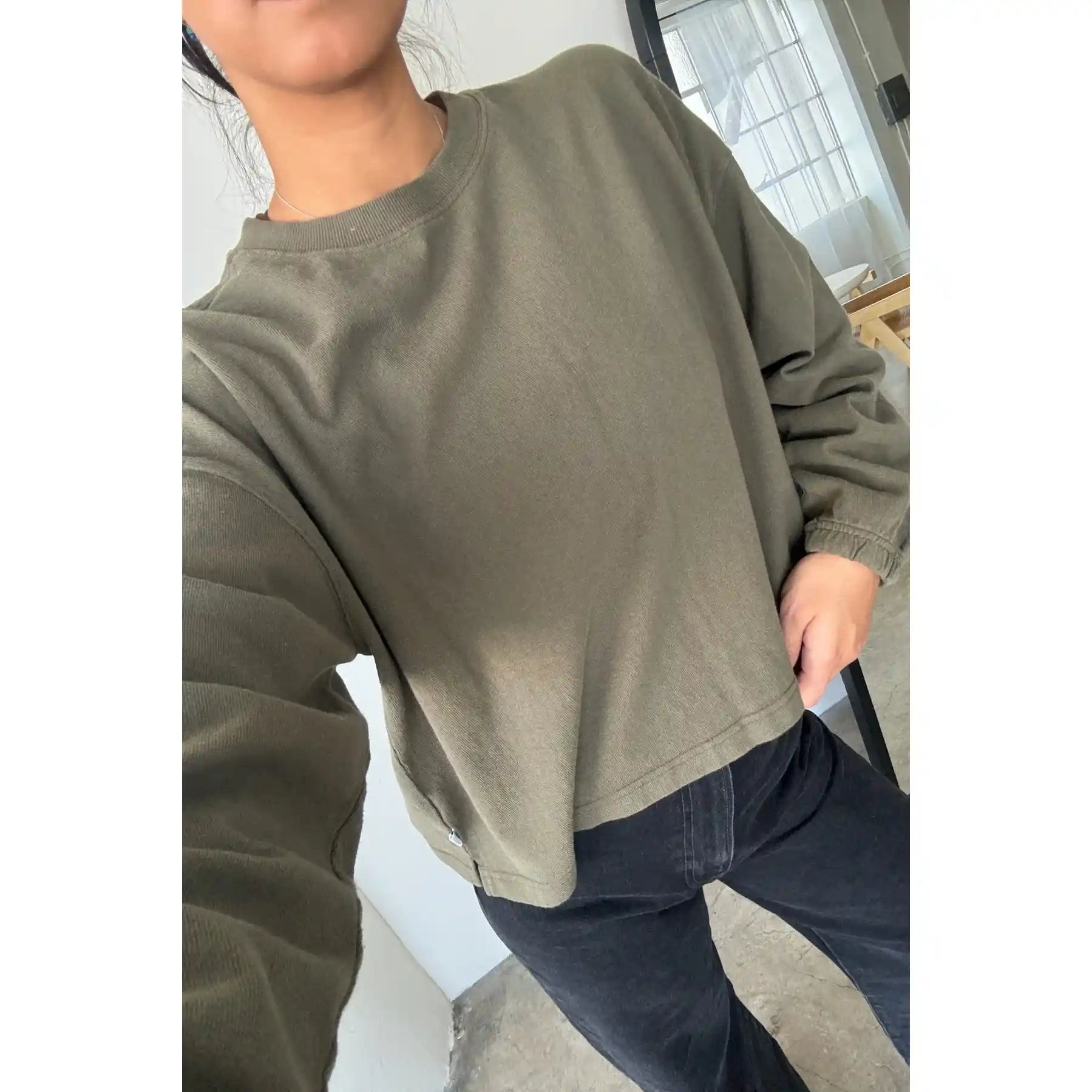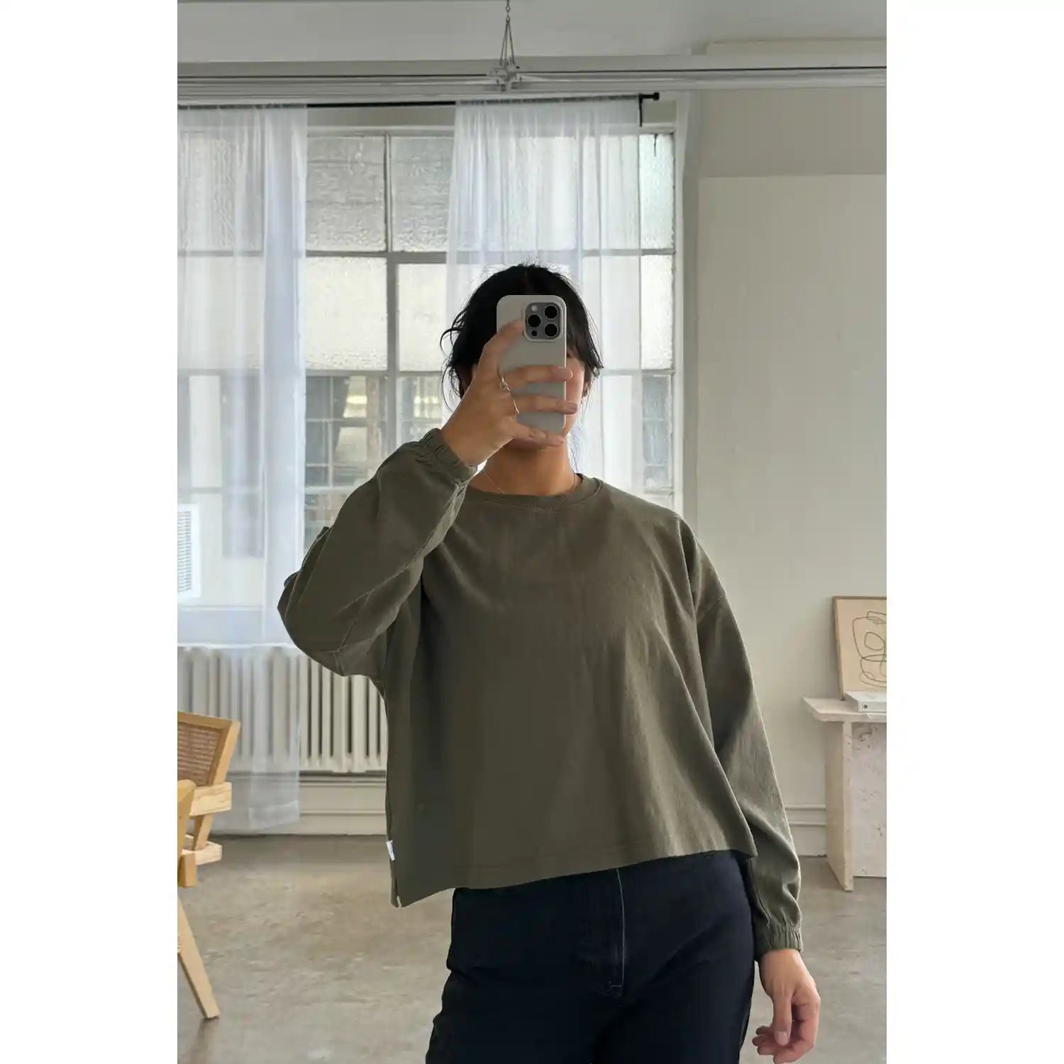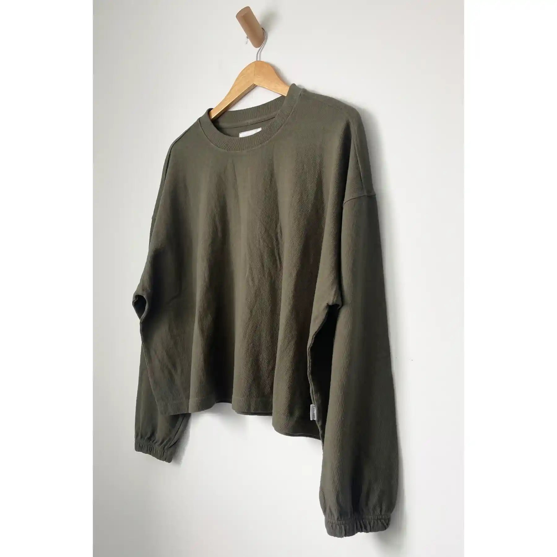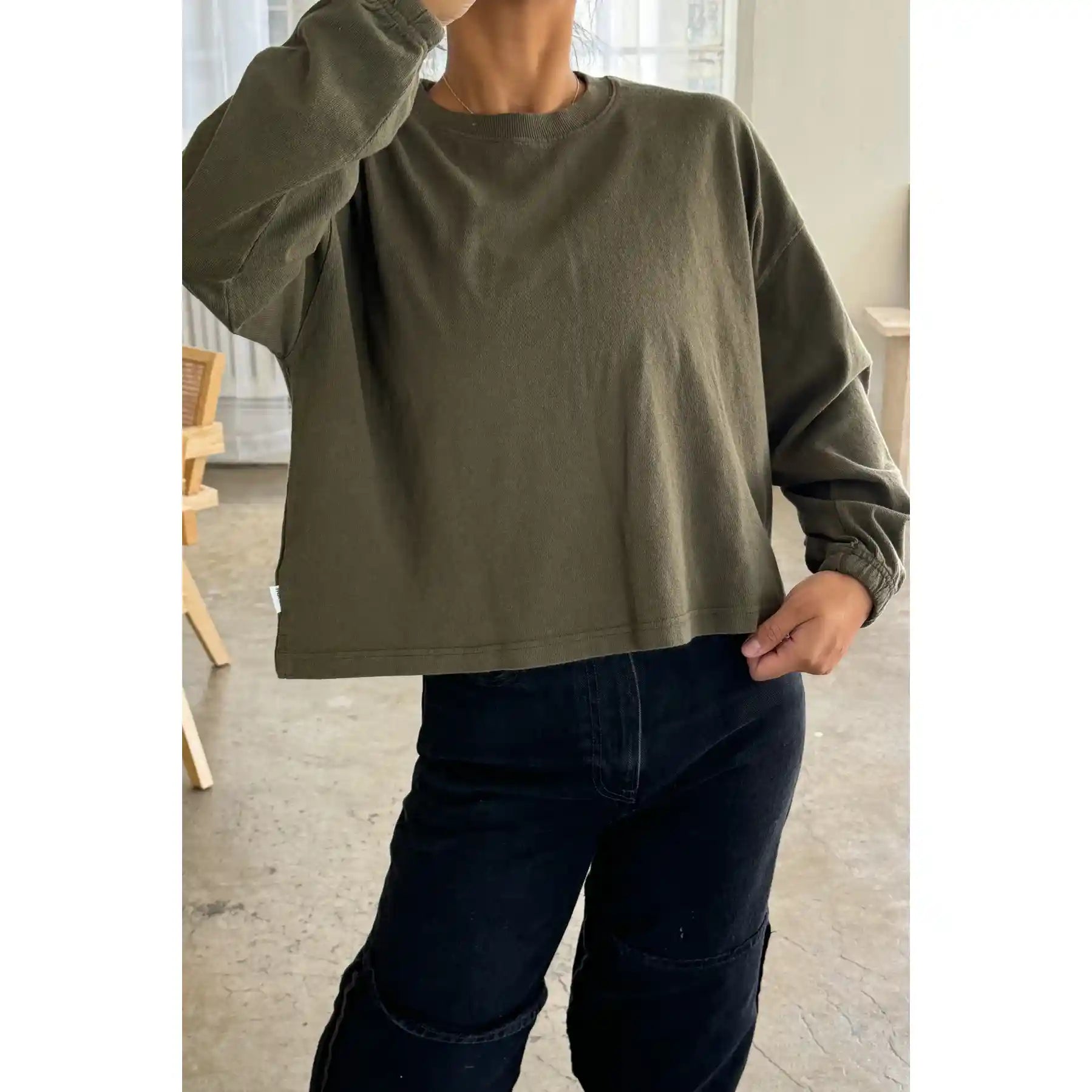 Le Bon had dreamed this beauty up while searching high and low for a simple long sleeve with a feminine touch. This essential long sleeve tee is made in a gorgeous 100% heavyweight cotton fabric. Super raw textured yet soft and airy! Elastic ruched sleeve opening creates a slight balloon sleeve effect worn down and scrunches up beautifully. This tee is garment dyed and pre-washed for a rich textured look.