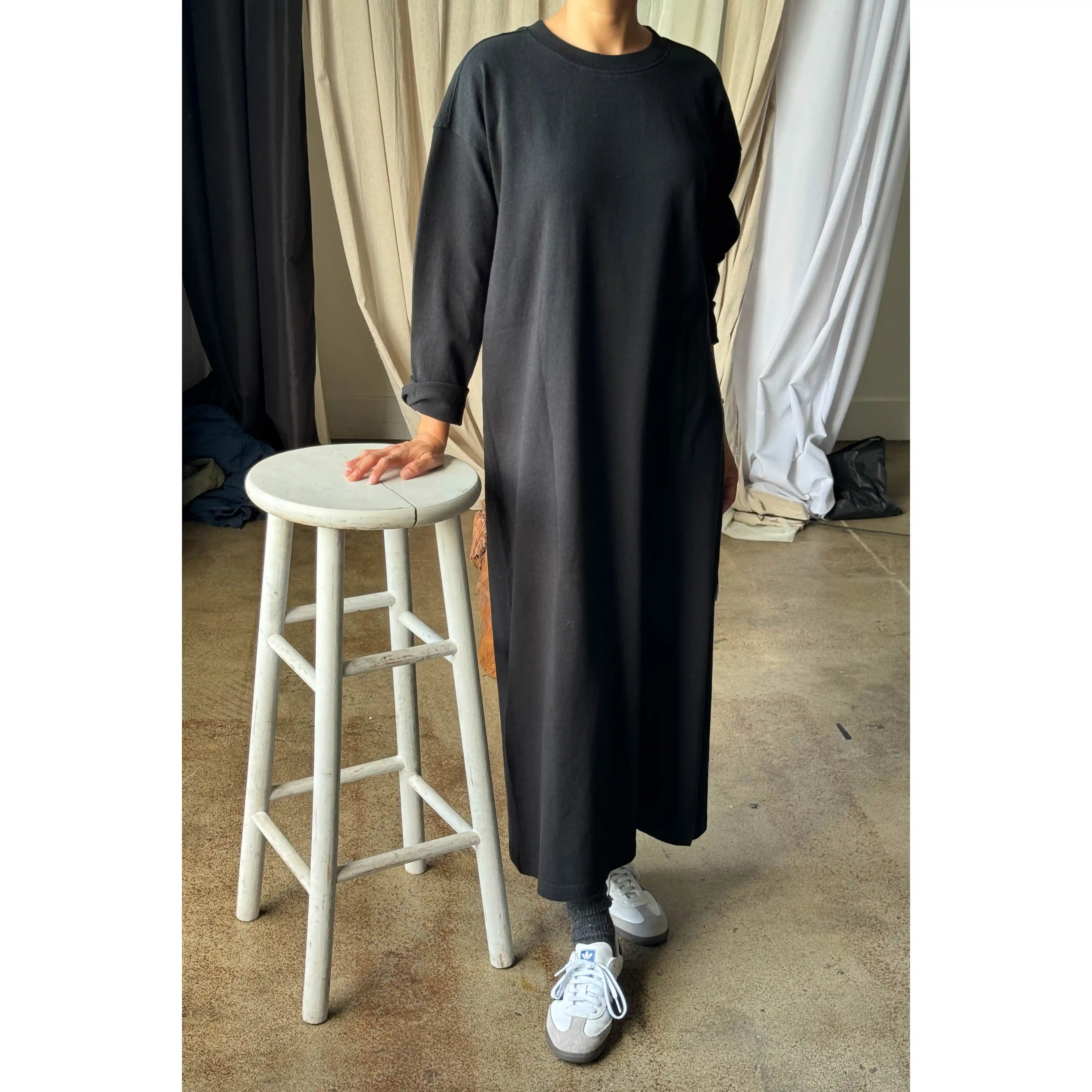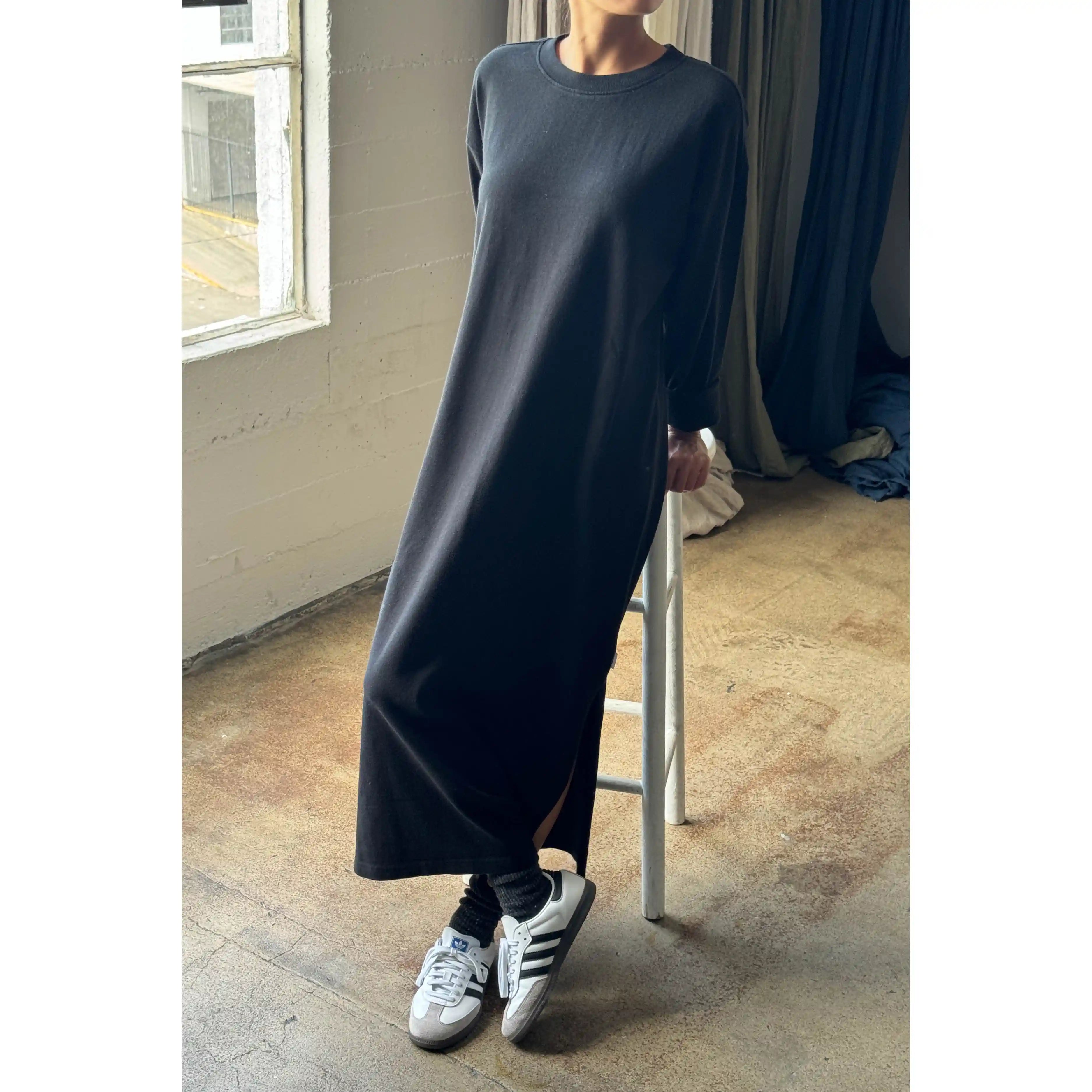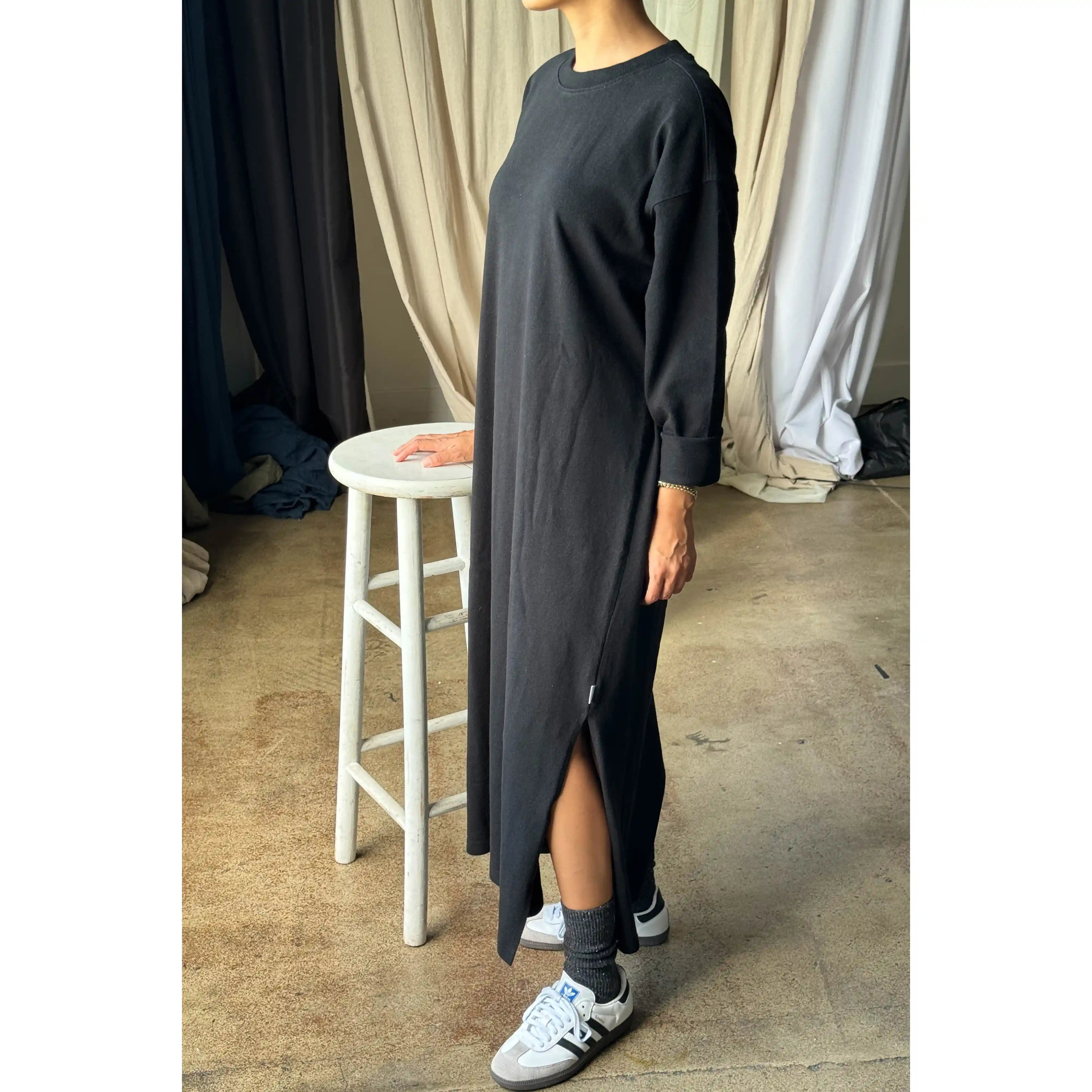 An ode to two of Le Bon's bestsellers, Sunday Tee and Her Dress, Sunday Dress is the pinnacle of comfort and style. Tastefully blending the masculine with its menswear inspired fit and the feminine with a subtle yet playful high side slit and ankle length, she will quickly become another closet staple! Sleeves are wide enough to roll up!