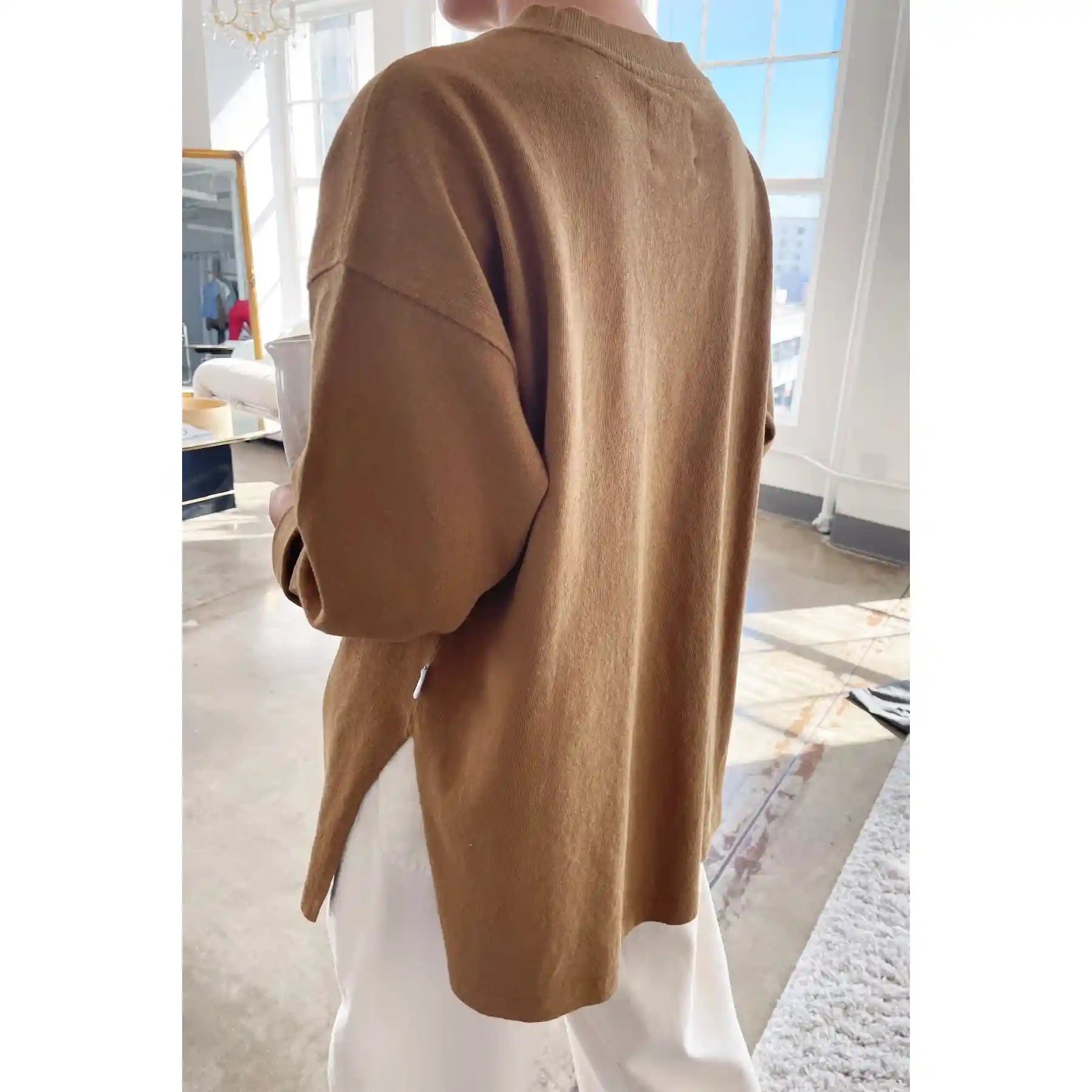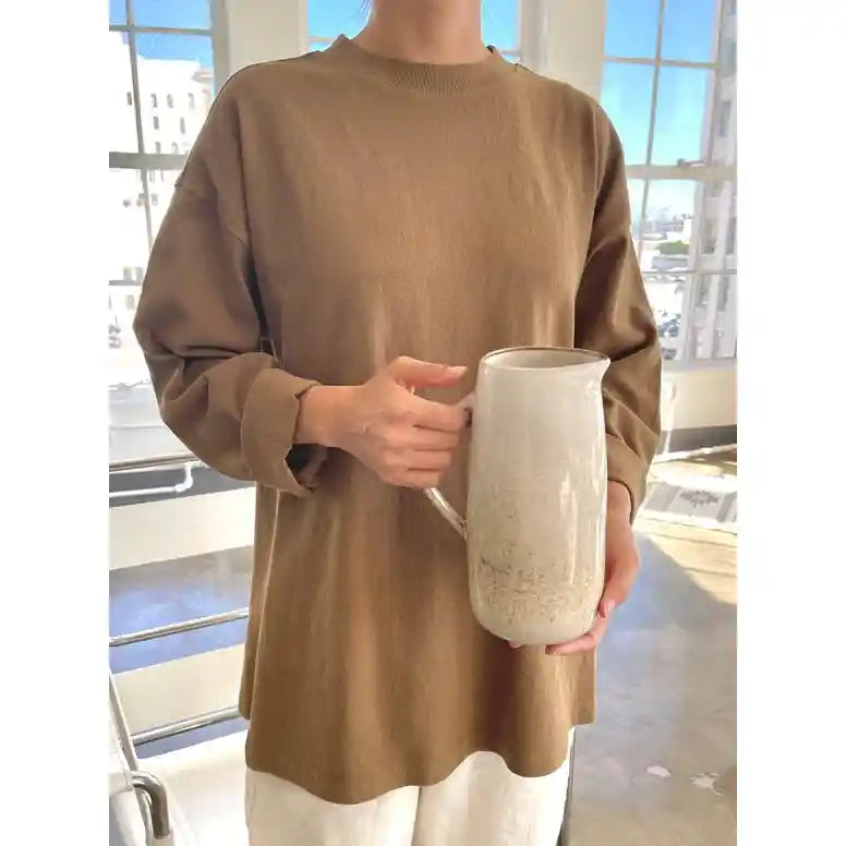 Sometimes you want to borrow things from our beau’s closet to create a fun and effortless look. Sunday Tee is inspired by menswear classic long sleeve tees. Subtle yet playful high side slit transform this simple piece into a fun closet staple. Sleeves are wide enough to roll up! She pairs beautifully with Le Bon's Balloon Pants, and also loves to be styled with gingham and denim bottoms. You can also take her with you on all your summer getaways as Sunday tee makes the best sophisticated coverup for your 👙