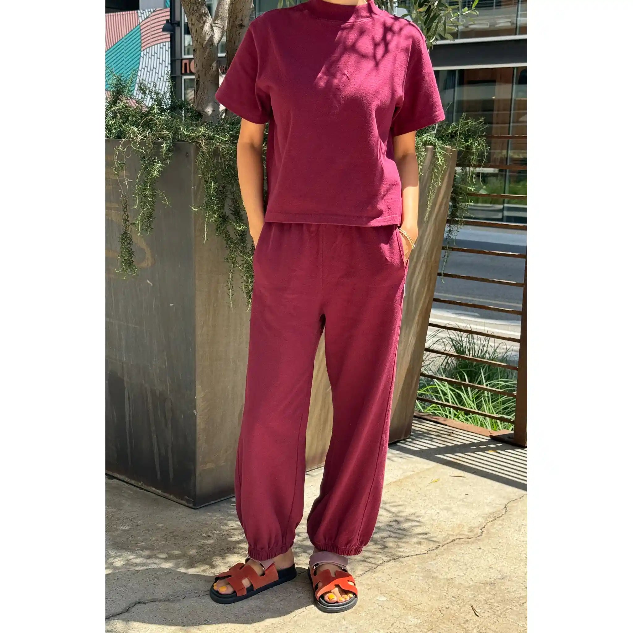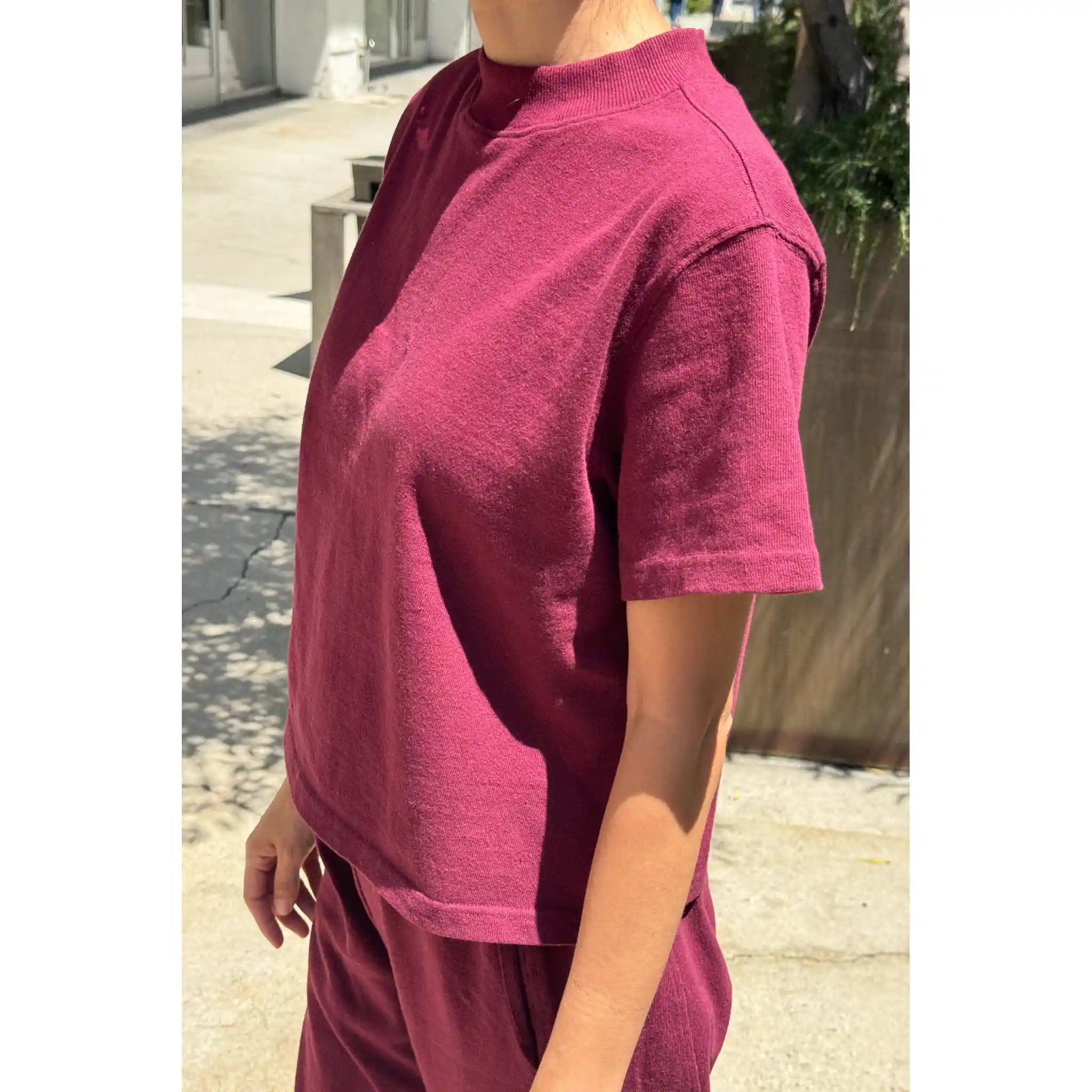 Sunset Mock Neck Tee, Cabernet.