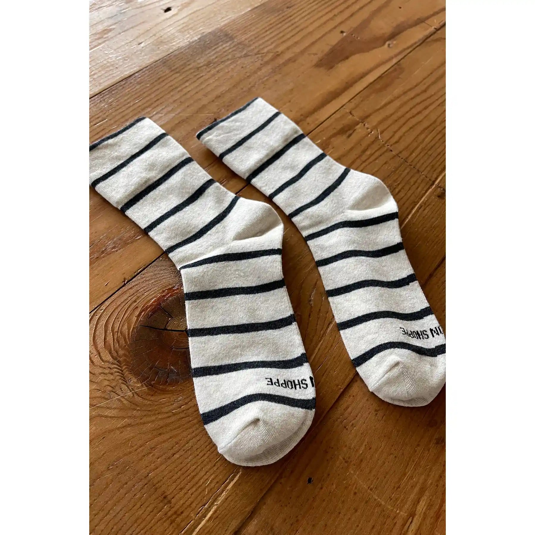 Le Bon Shoppe loves a good stripe. She is a classic and forever staple in every girls closet that transcends the seasons and the trends. The Wally Socks are made in a beautifully classic stripe that is reminiscent of Parisian chic. She loves to be styled with colourful pair of Mary Janes, Ballet flats or a cool city sneaker. Like LBS's Sneaker Socks it is made from a breathable cotton blend that you can sweat, dance, jump and play in without leaving a mark on your skin like most sock bands do!