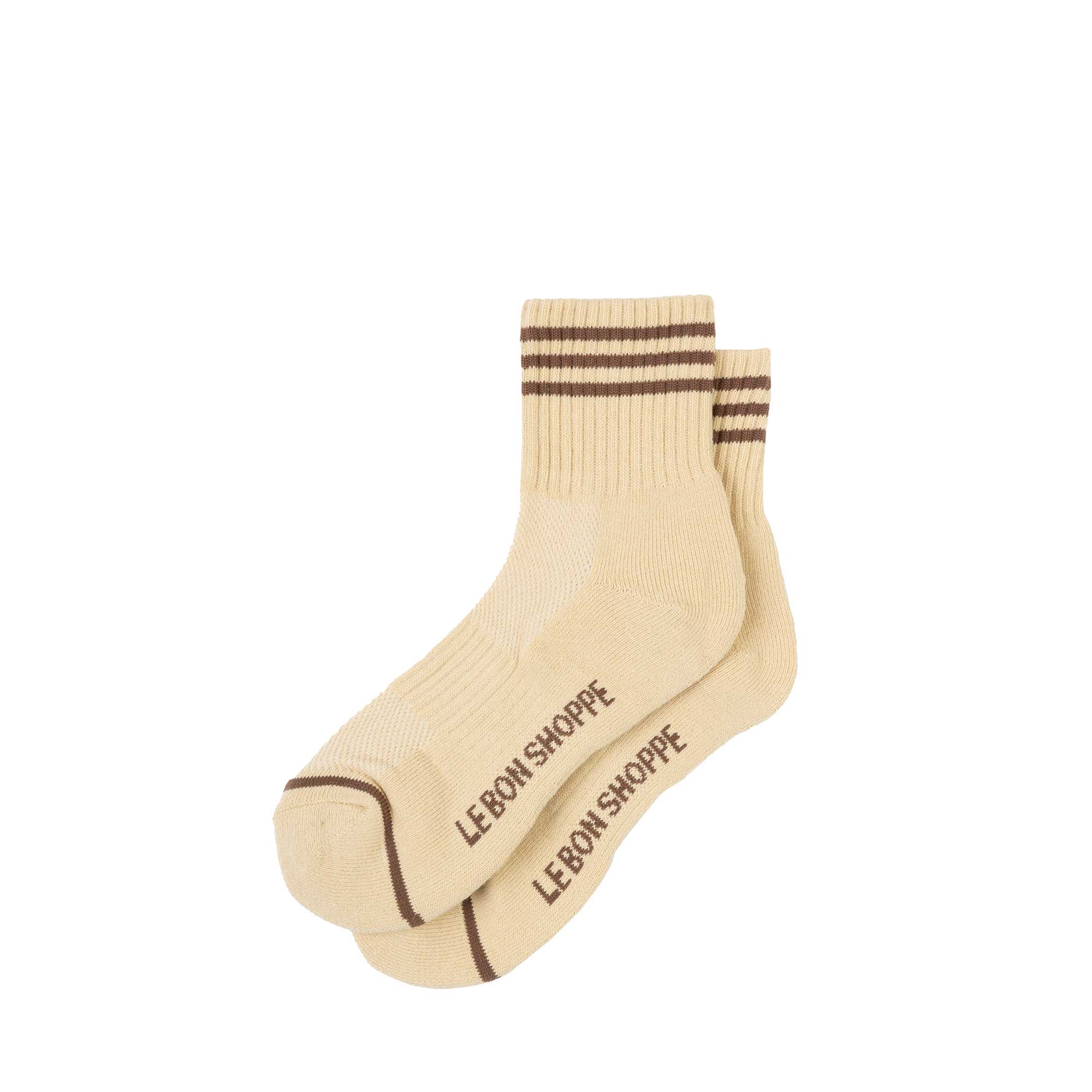 Le Bon loved their Boyfriend Socks so much they decided she needed a sister, the Girlfriend Socks is the cool crew version of their original bestseller and classic Boyfriend Socks. These beauties feature a triple contrast stripe at the opening and a shorter classic crew sock length. She is a universally quintessential sock and especially flattering for our petite ladies.