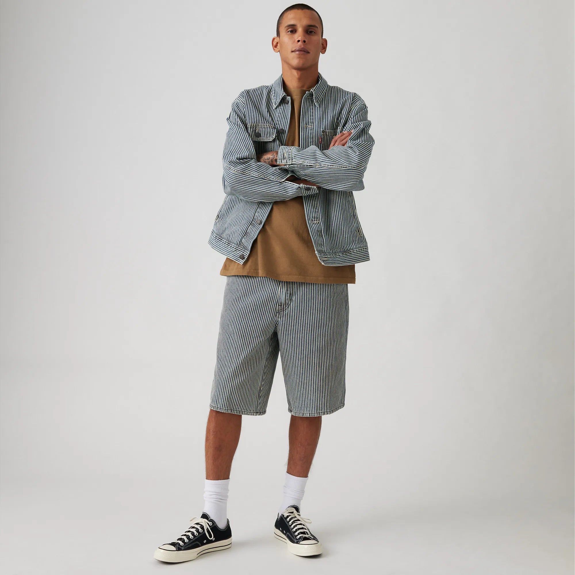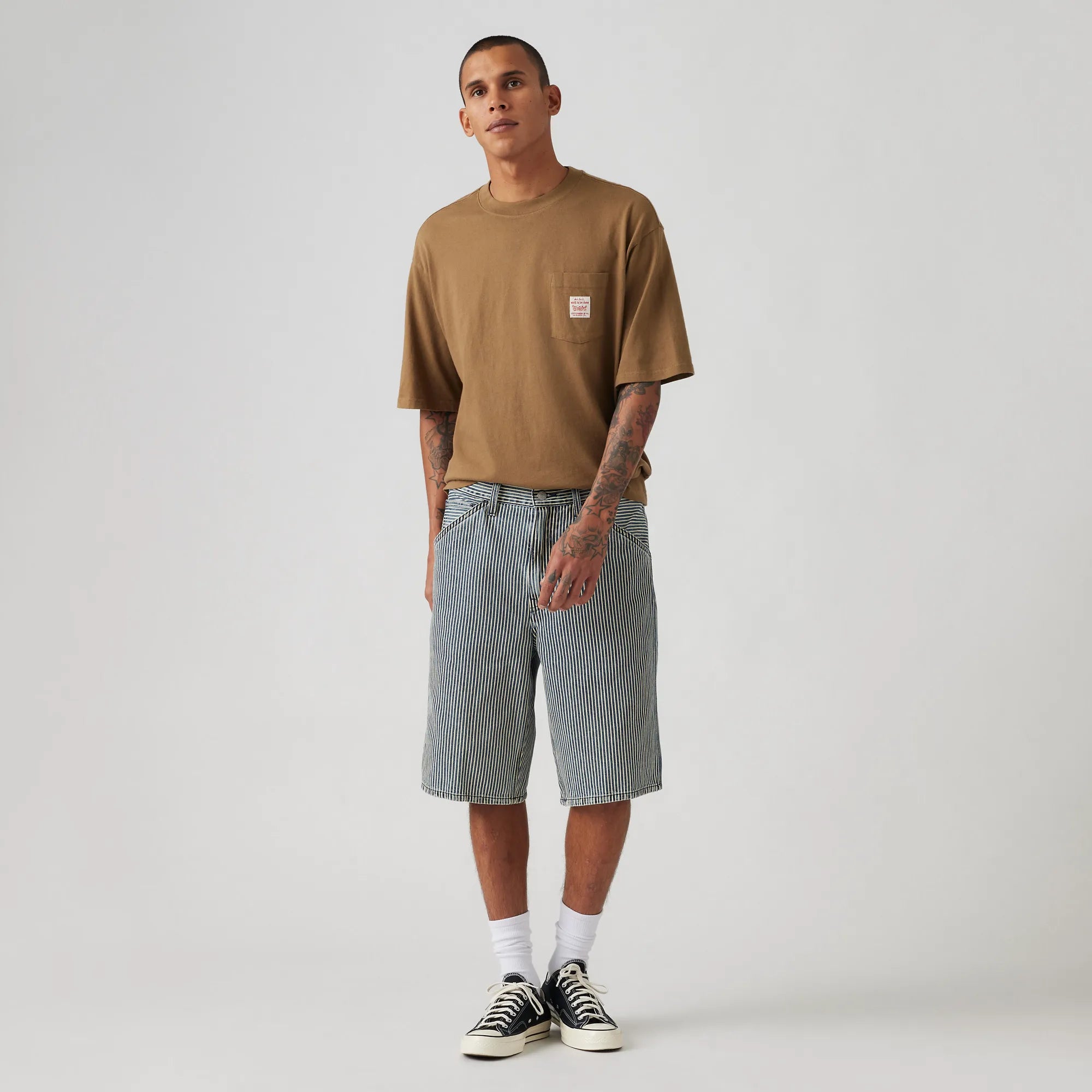 Levi's 568 Loose Carpenter Shorts, aged railroad stripe