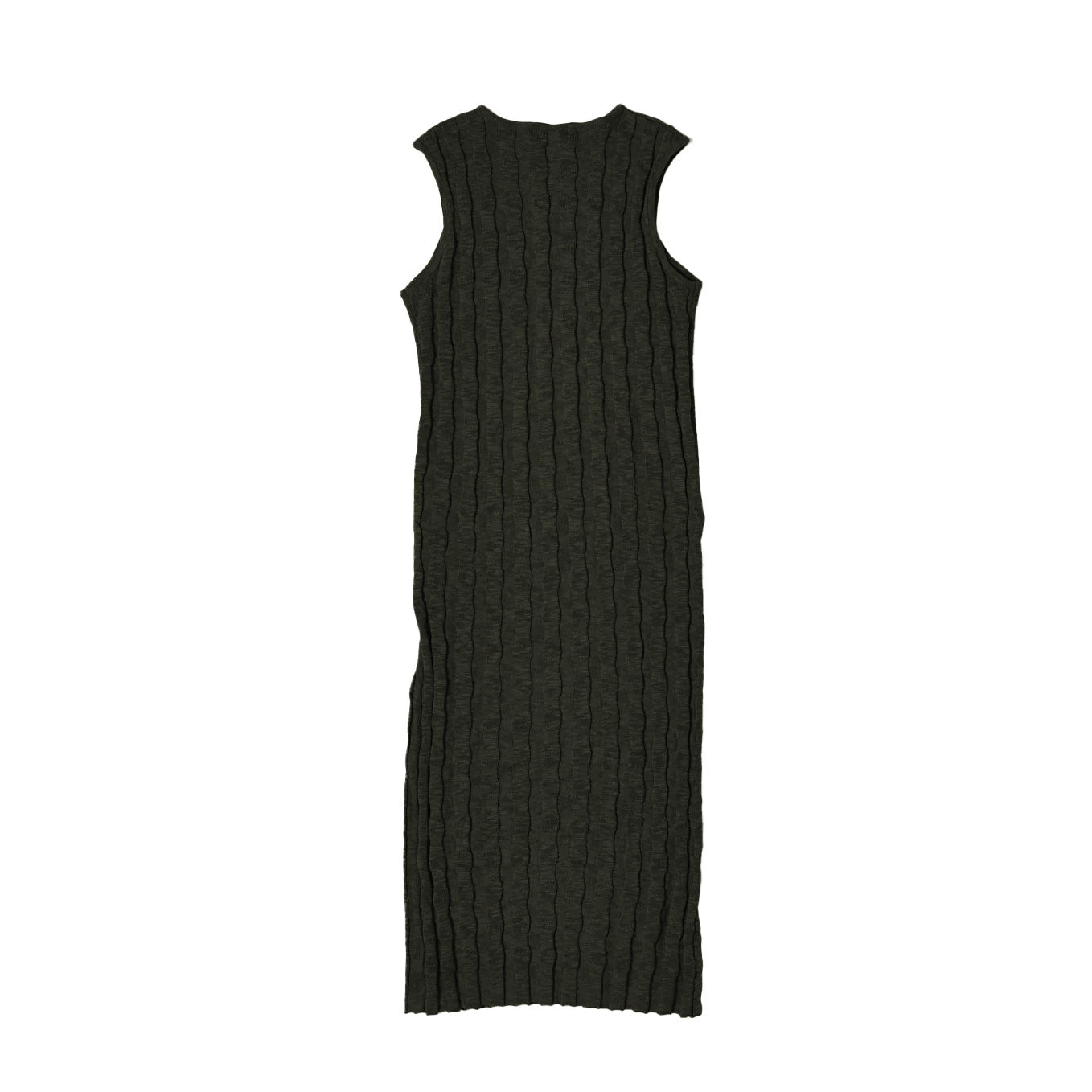 The Elle dress is a sleeveless, mid-length dress that is crafted from a bubble rib knit that adds texture and volume to the style. A semi-fitted silhouette that is modest, yet sophisticated, perfect for both formal and casual events.