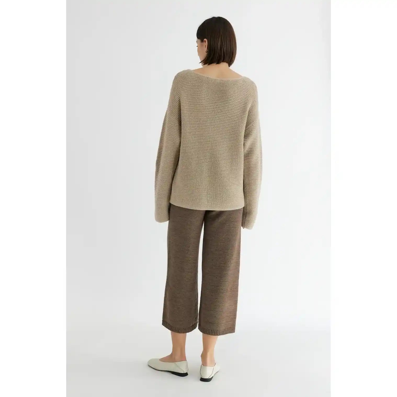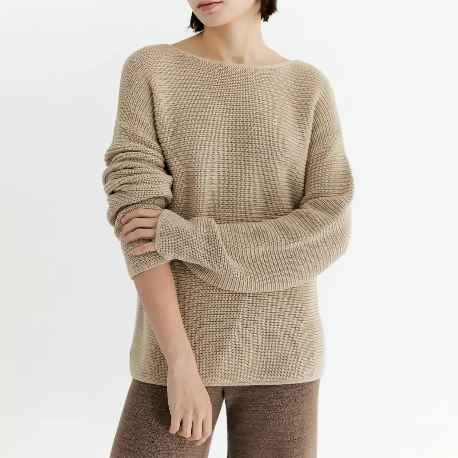 The Mya sweater is an oversized knit pullover sweater that can be worn throughout the seasons. It's detailed with a boat neckline and horizontal stitch design. A versatile piece warm enough for the cooler weather, yet light enough for the spring days.