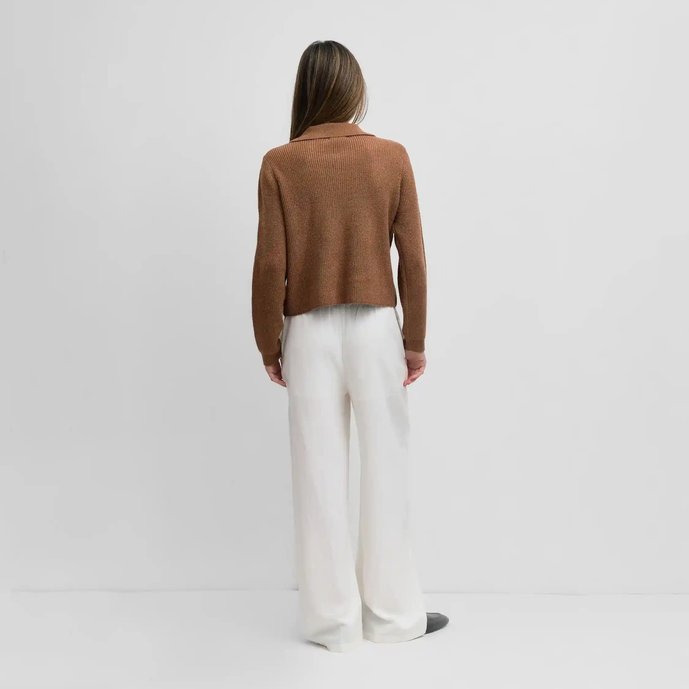 The Raye Sweater is a collared sweater featuring mother-of-pearl buttons for a touch of timeless elegance. The spread collar adds a refined detail to the relaxed fit, making it a versatile choice for a laid-back yet polished look.