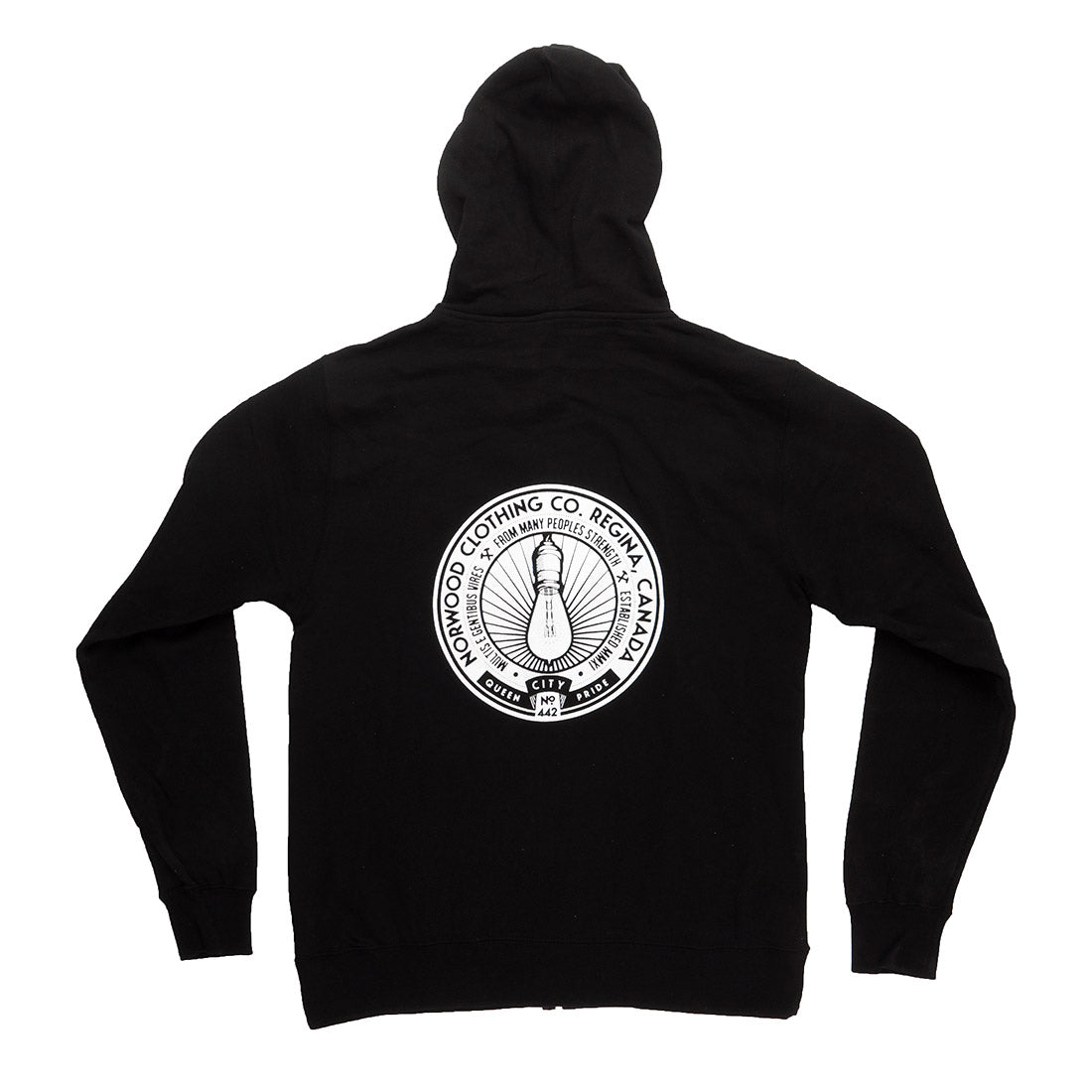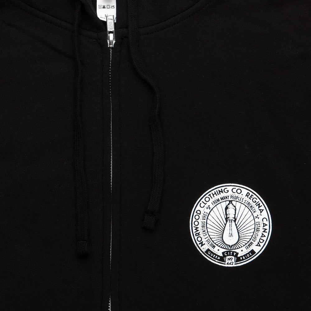 Lightweight fleece with zipper and chest left print and large back print. A slightly slimmer fit.