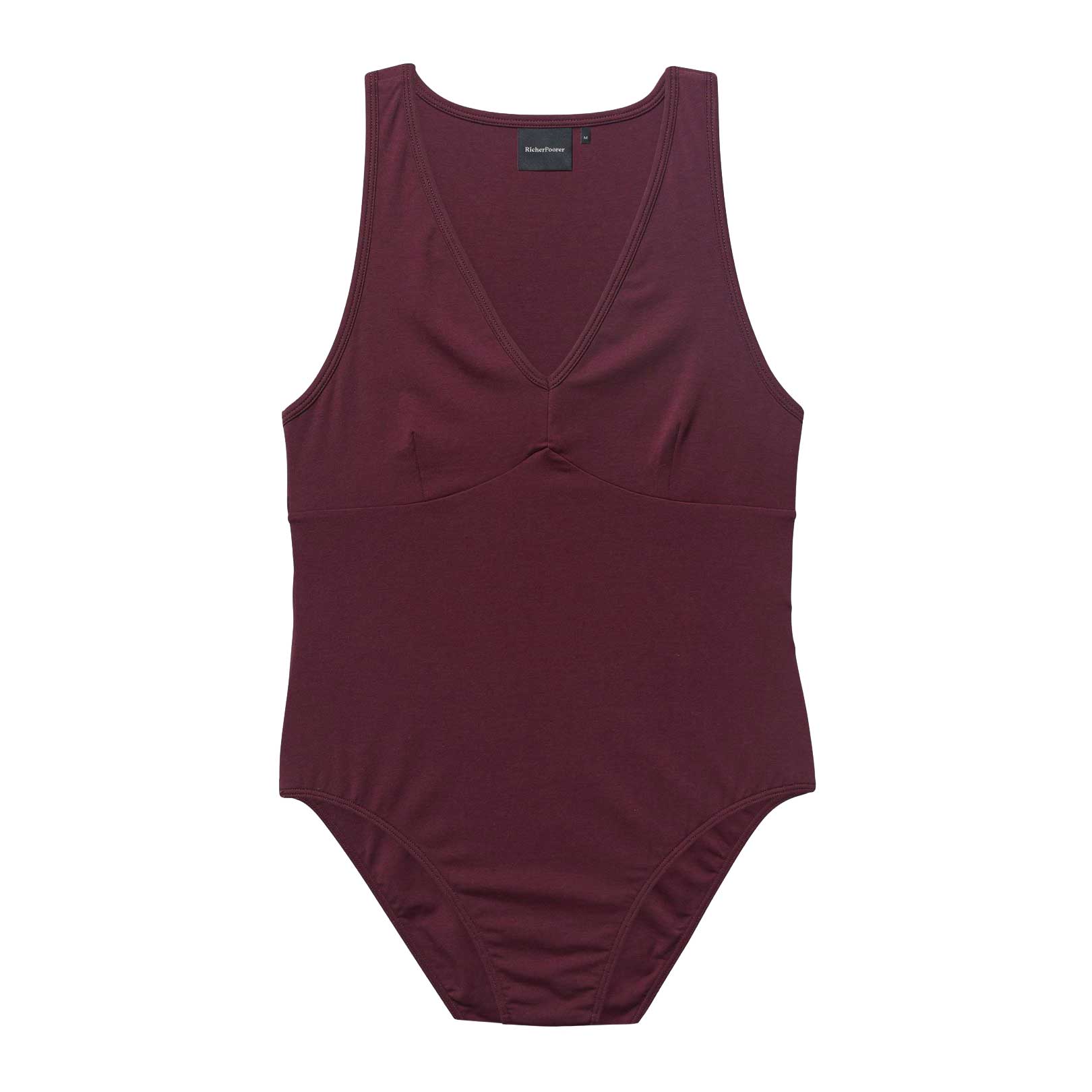 This style is a V-neck with slightly lower armhole, so if you prefer a more covered up, modest look please size up.