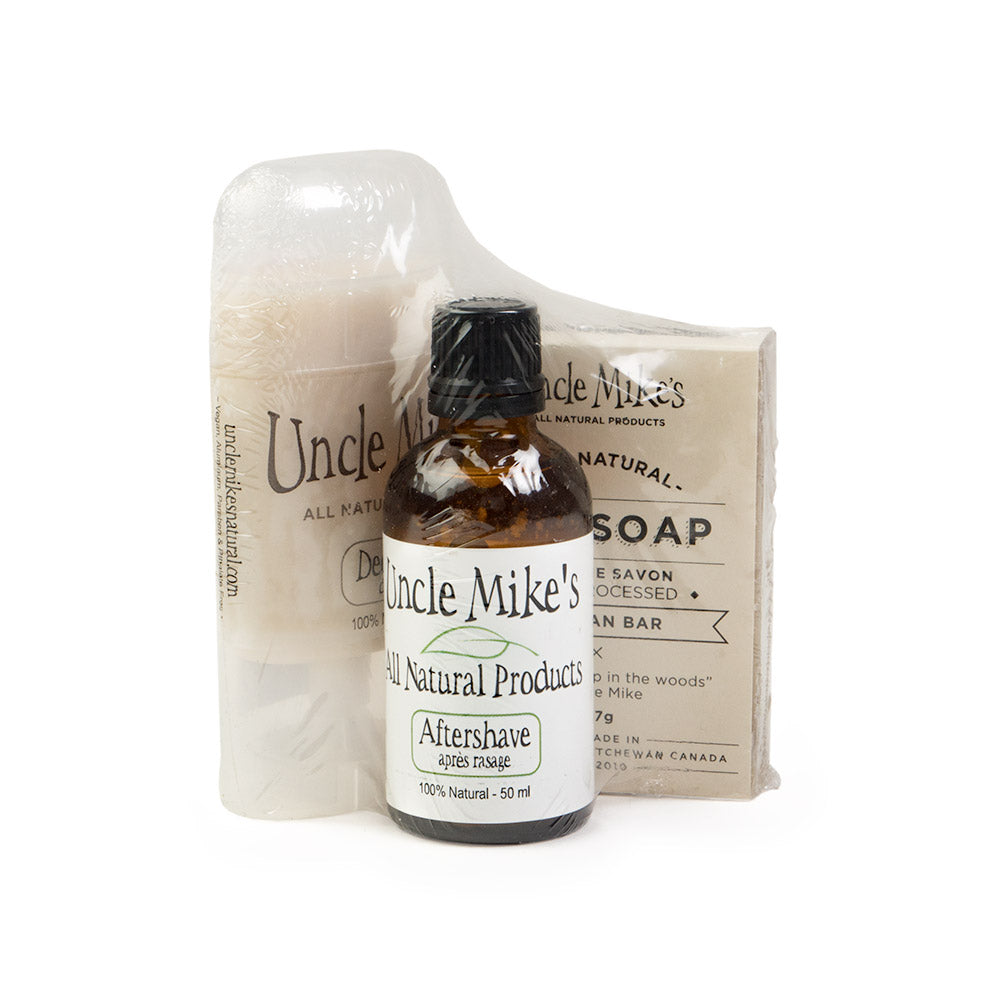 Aftershave ingredients: hamamelis virginiana (witch hazel) water, ethanol (alcohol), prunus armeniaca (apricot) kernel oil, triticum vulgare (wheat) germ oil, oenothera biennis (evening primrose) oil, lavandula angustifolia (lavender) oil, eucalyptus globulus (eucalyptus) oil, citrus aurantifolia (lime) oil, mentha piperita (peppermint) leaf oil, helianthus annuus seed oil (and) rosmarinus officinalis (rosemary) leaf extract