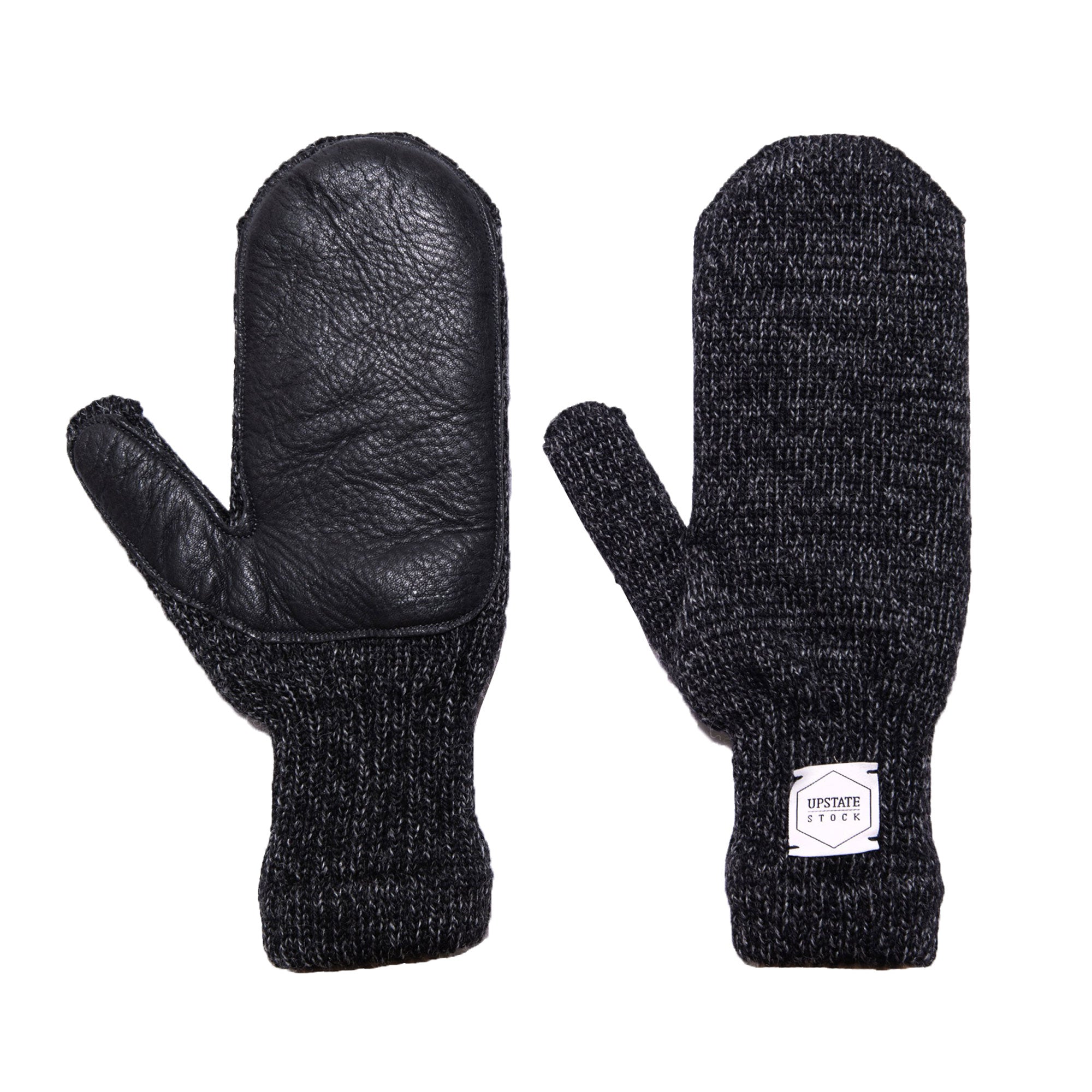 Upstate Stock Ragg Wool Mitten with Black Deer Skin, Black Melange