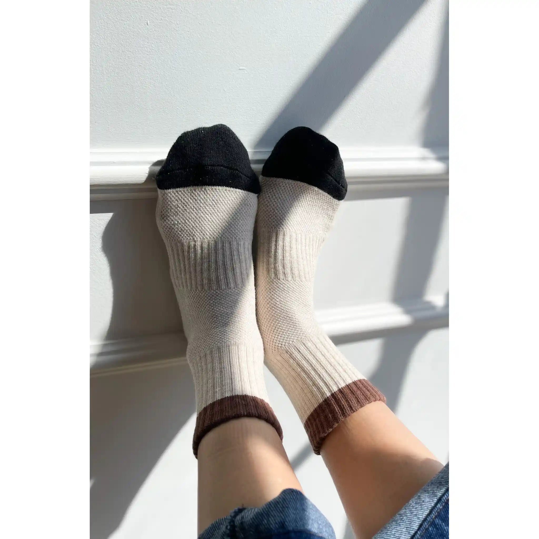 Le Bon Shoppe Womens Color Block Girlfriend Socks, black coffee
