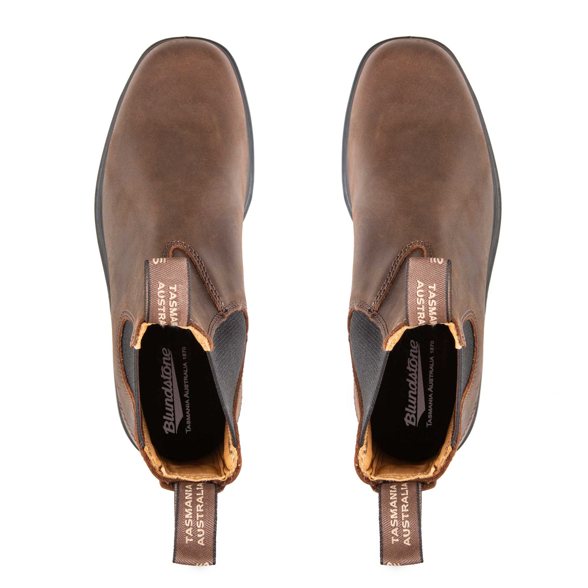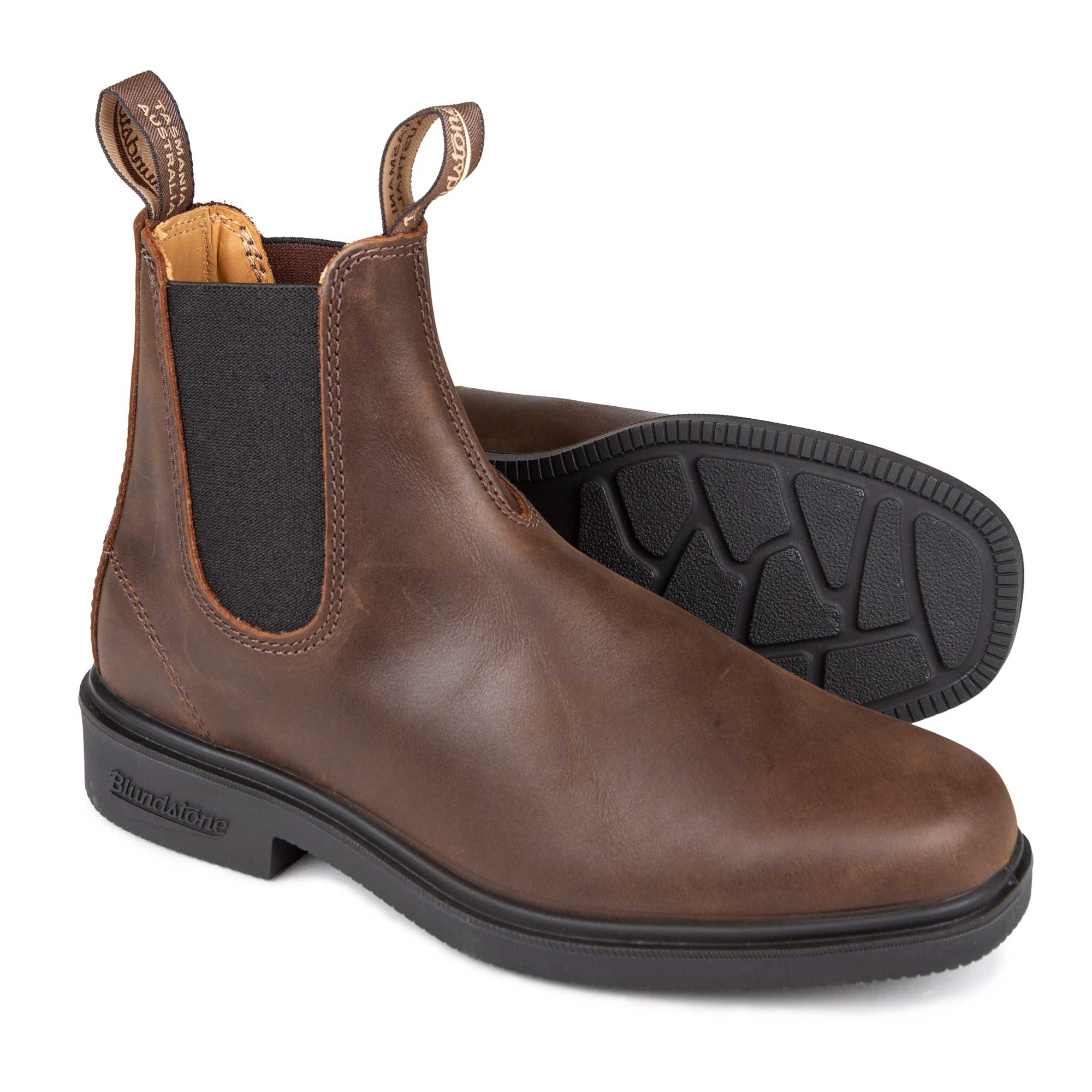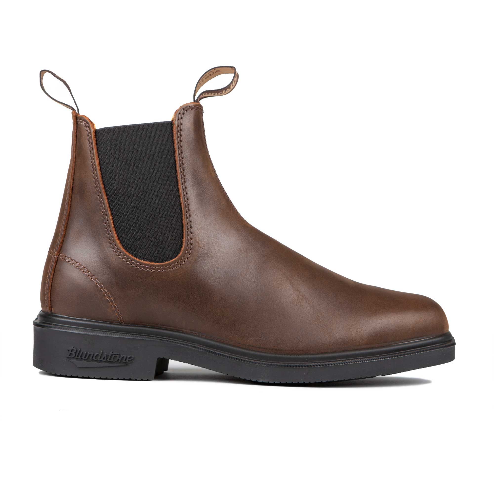 Here’s a dressy twist on a Blundstone boot in a leather with deep character. The 2029 Blundstone Dress Chelsea in Antique Brown looks like you’ve owned them forever. And you might! Chisel toe shape is a dressier cut that gets the job done. Unbeatable Blundstone all-day comfort and long wear.
