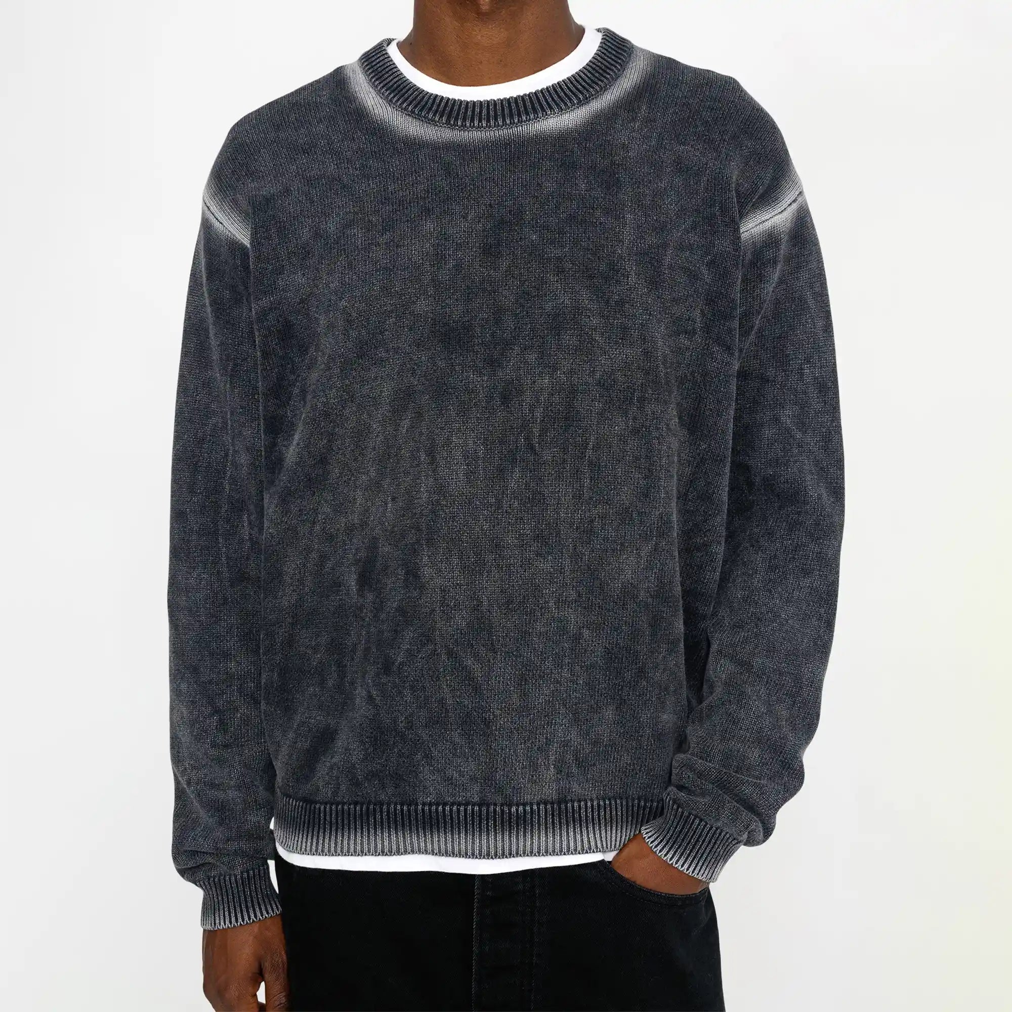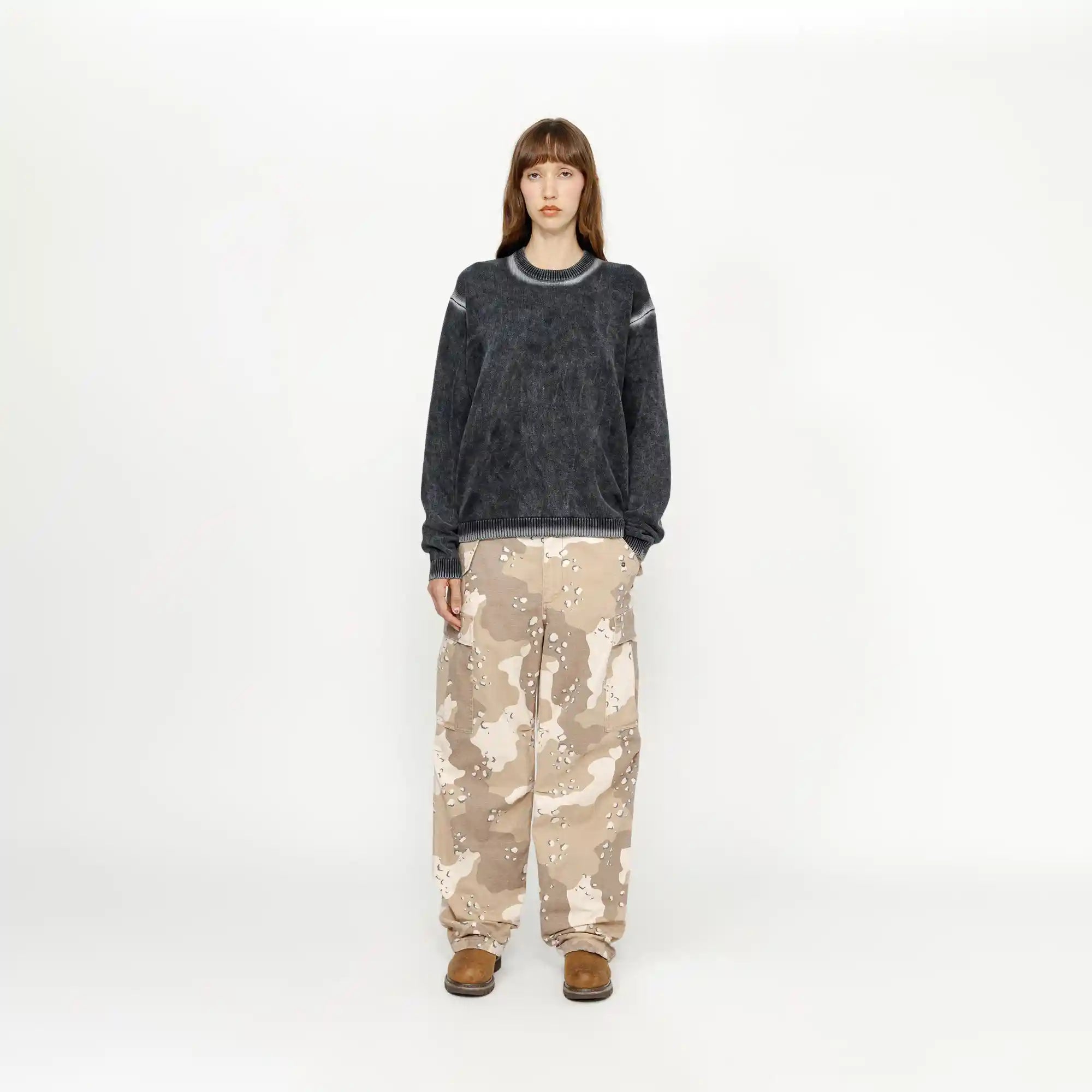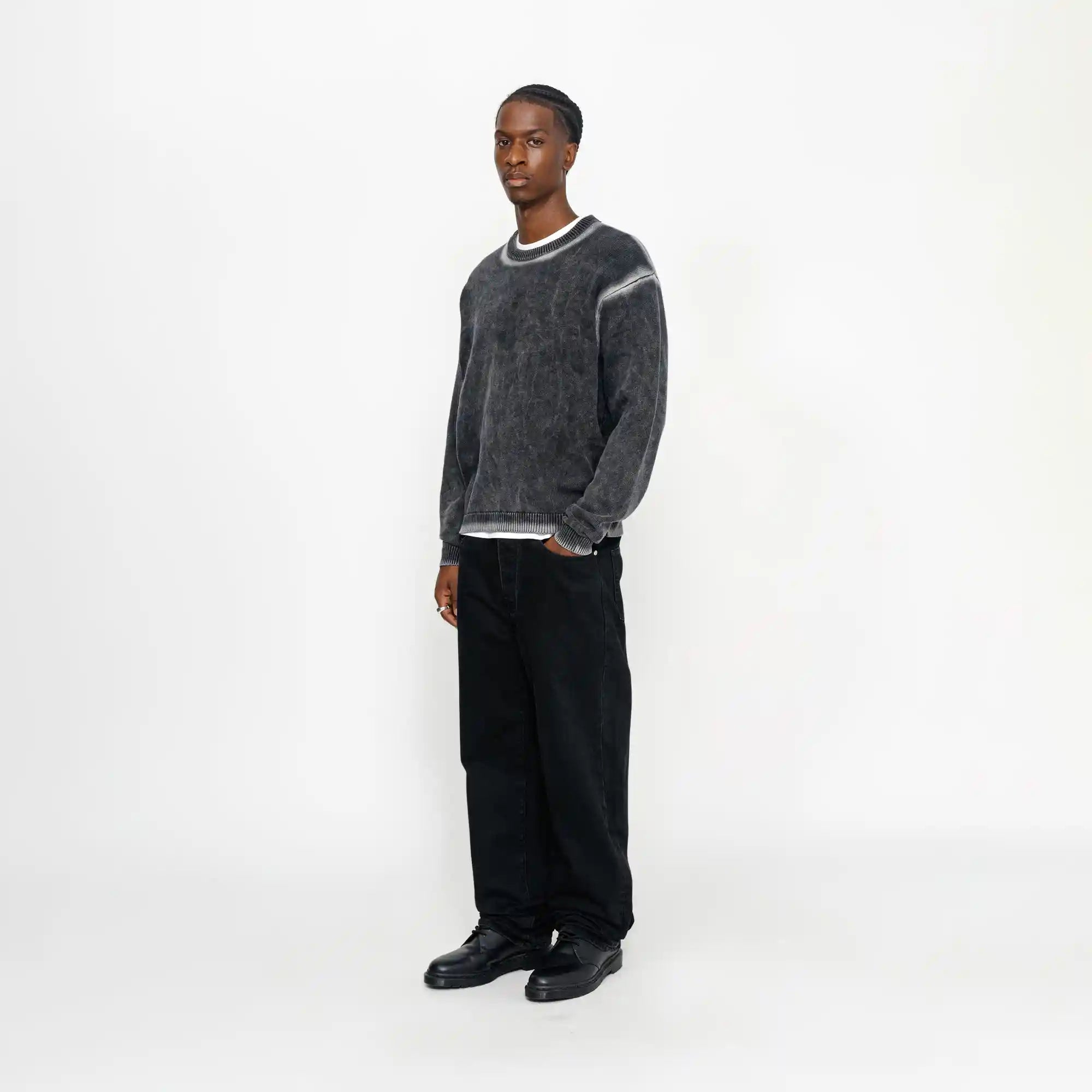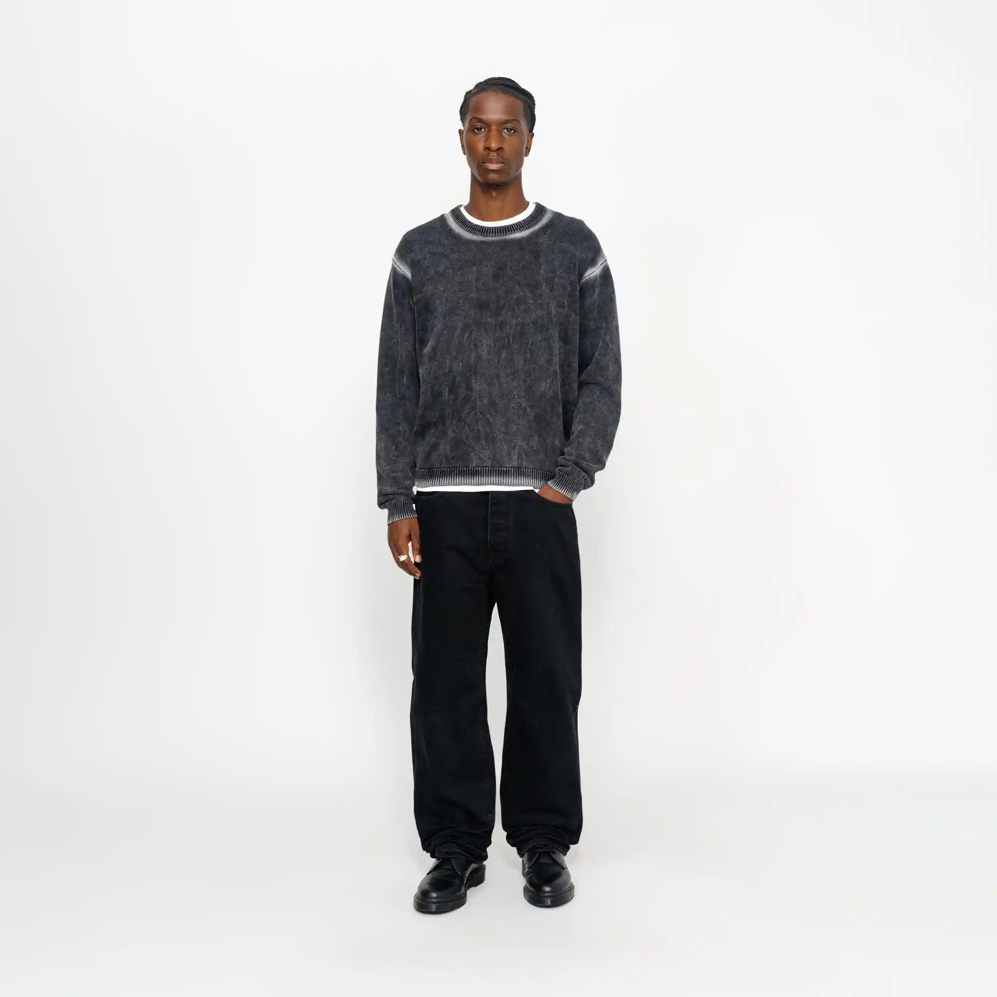 Relaxed fit crewneck sweater in stonewashed cotton. Stüssy stock flag label stitched at the side seam.