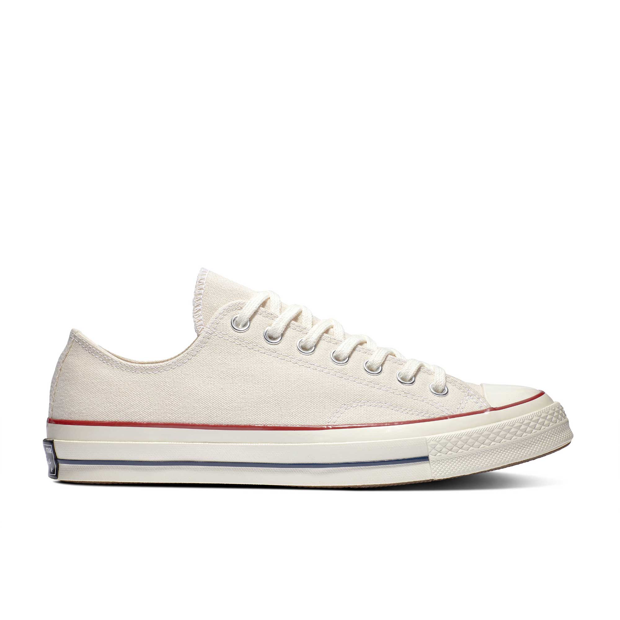 More cushioning, tougher canvas, same versatility. The Chuck 70 low top is built off of the original 1970s design, with premium materials and an extraordinary attention to detail. We added an extra cushy insole for arch support and stability, and used wing tongue stitching on 12 oz canvas for durability. No reason not to wear them all day, every day.