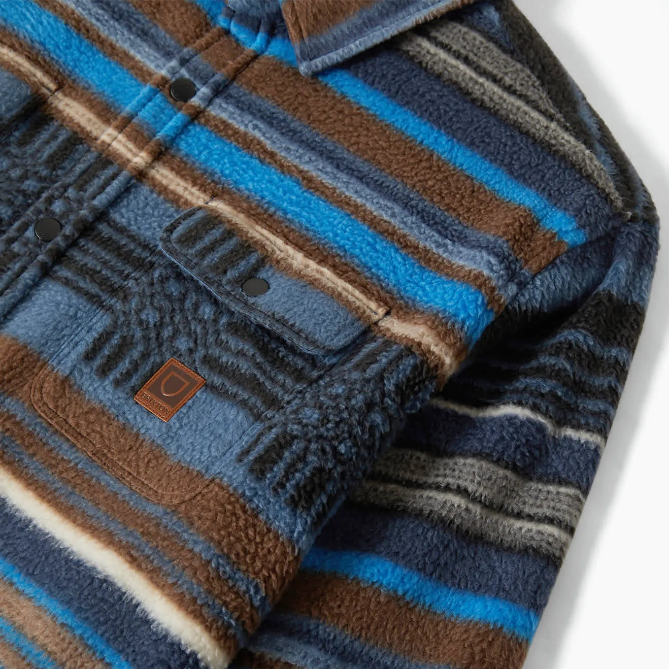 Brixton Bowery Arctic Stretch Fleece Shirt, mood indigo blanket stripe