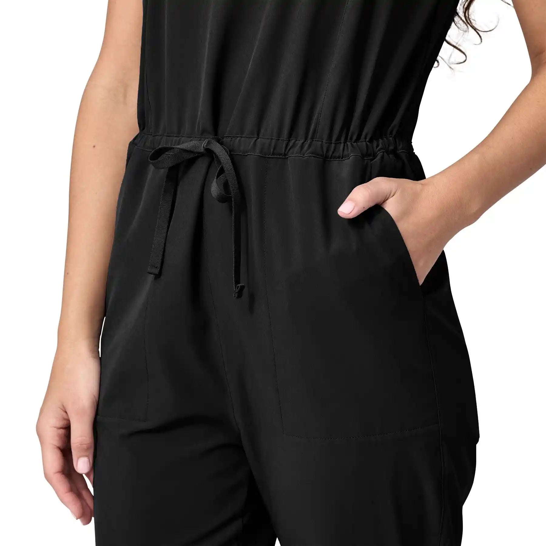 This jumpsuit is made from stretchy 89% recycled polyester/11% spandex plain weave for comfort and mobility