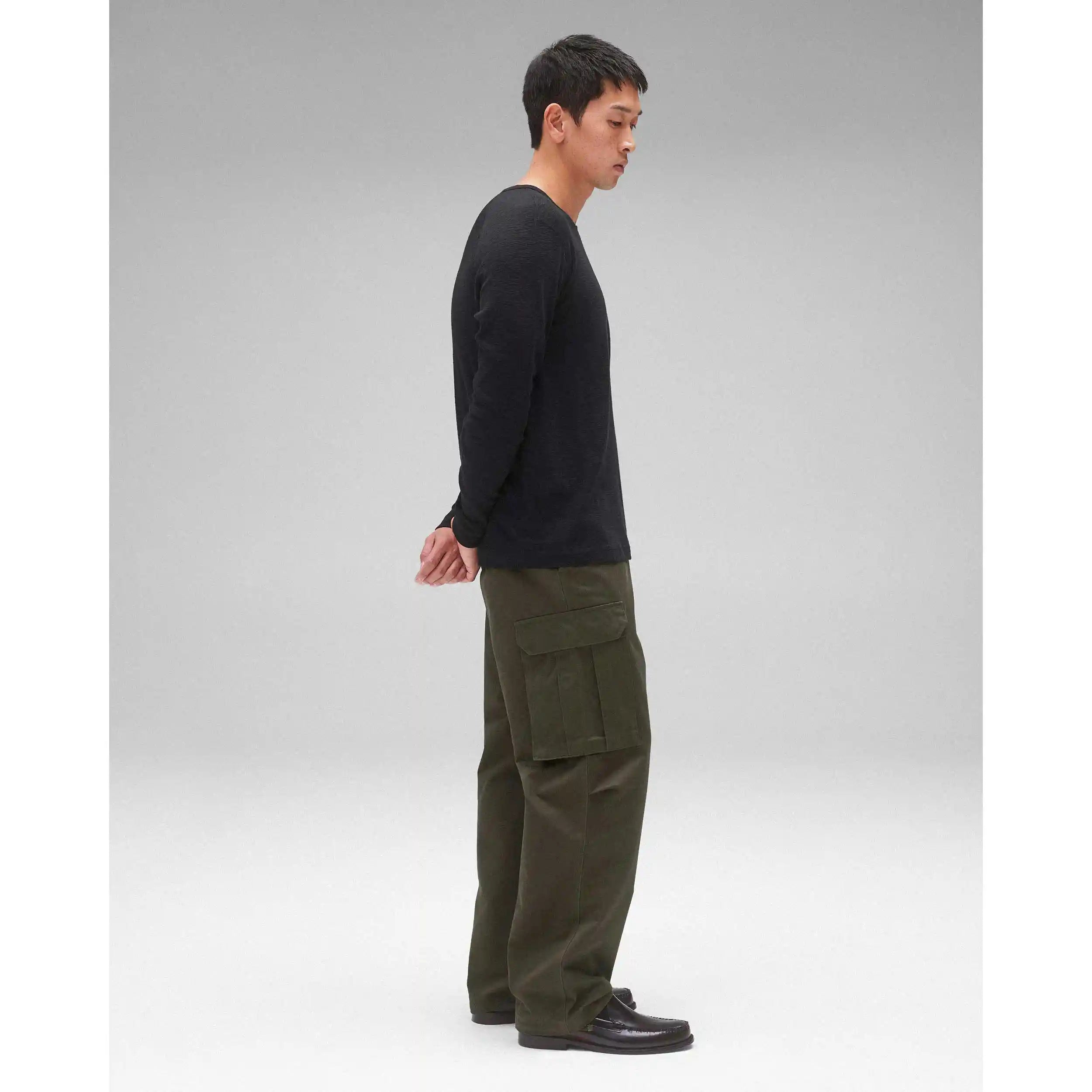 This classic cargo pant is crafted from a cotton chino twill that's washed for a softer, lived-in feel. Featuring a generous straight leg, with a regular rise. Designed with a belt loop waistband, corded slash pockets, a YKK metal zip fly, bellowed cargo pockets, rear flap pockets, and drawcord cuffs. Finished with knee pleats for added volume and ease of movement.