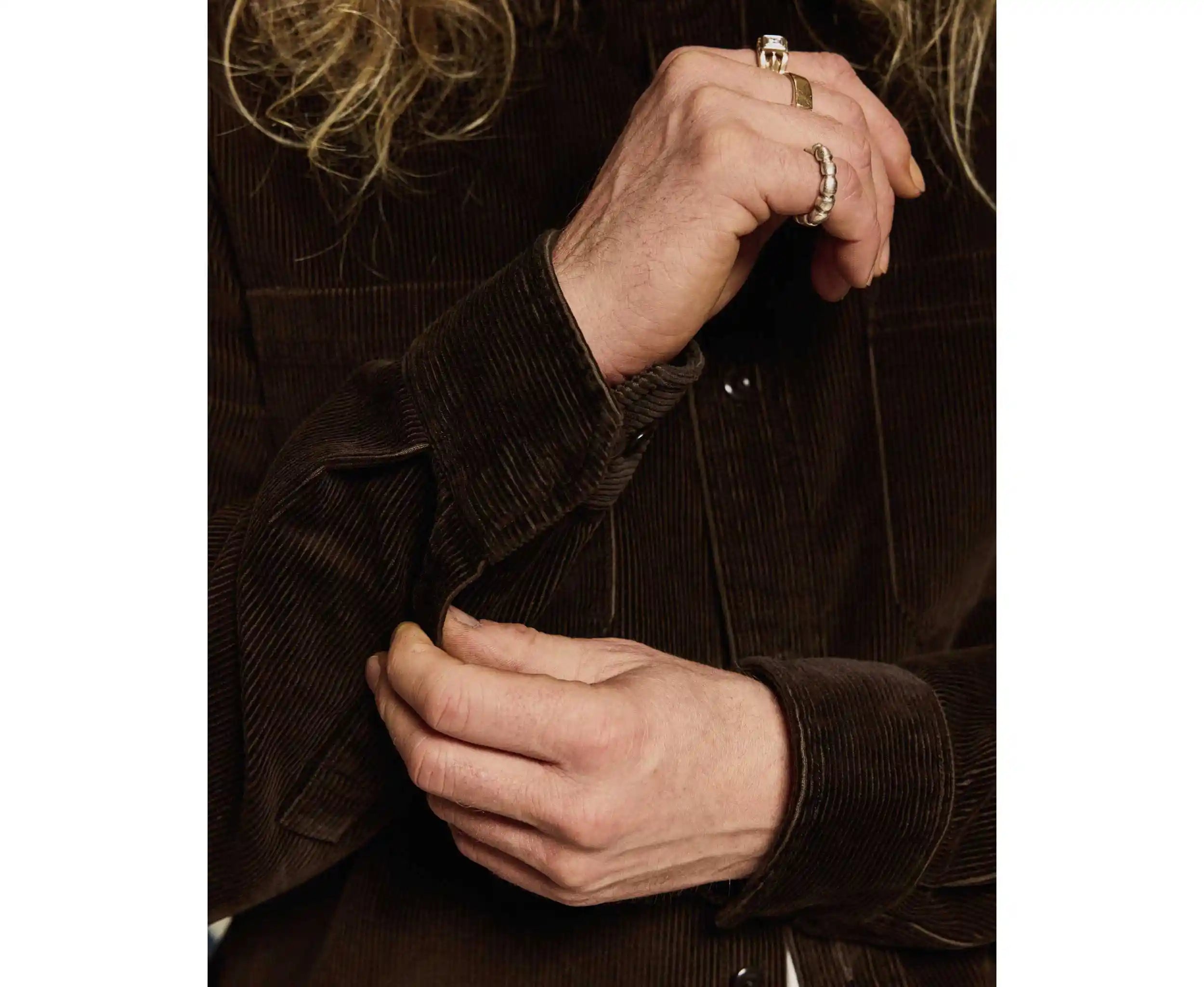 This corduroy overshirt features classic 10-wale construction that's washed for a softer, lived-in feel. Featuring a generous standard fit for versatile layering. Designed with a pointed collar, dual chest pockets, corozo buttons, adjustable cuffs, and a flat hem.