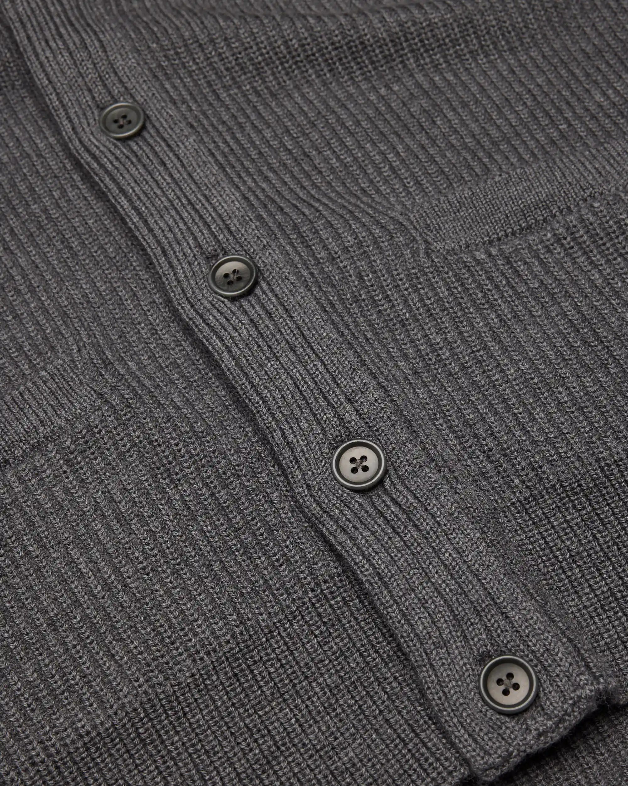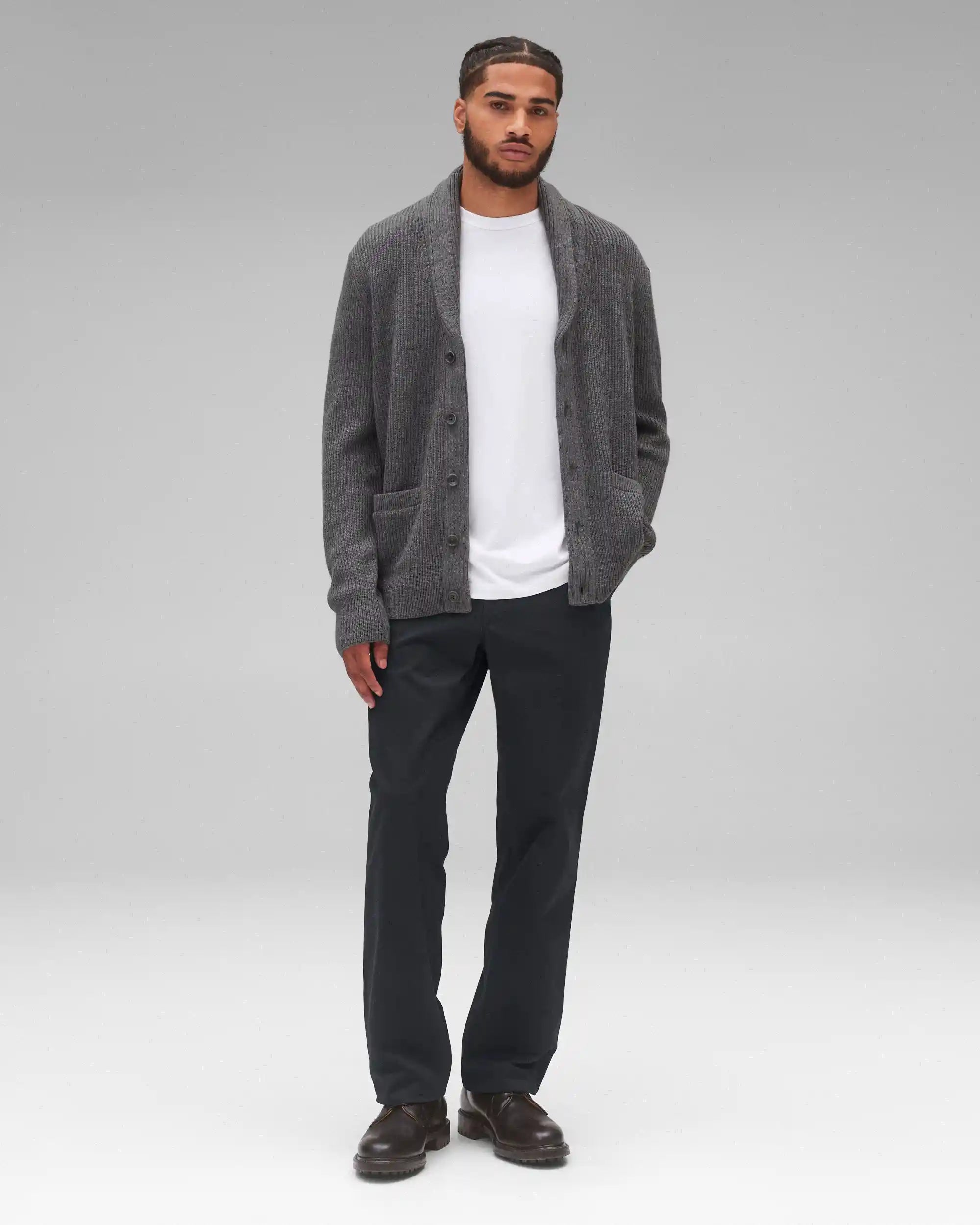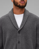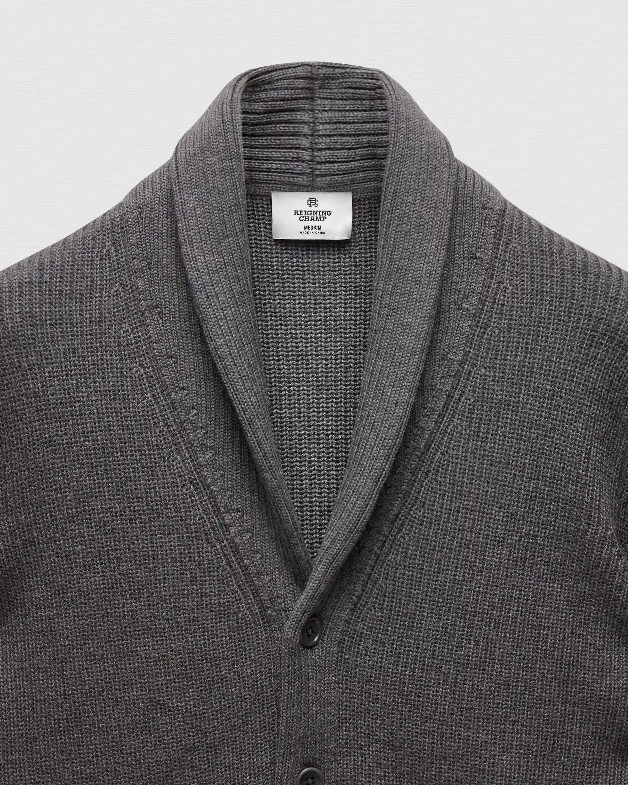 Reigning Champ Merino Rib Vinnie Shawl Cardigan, heather carbon
