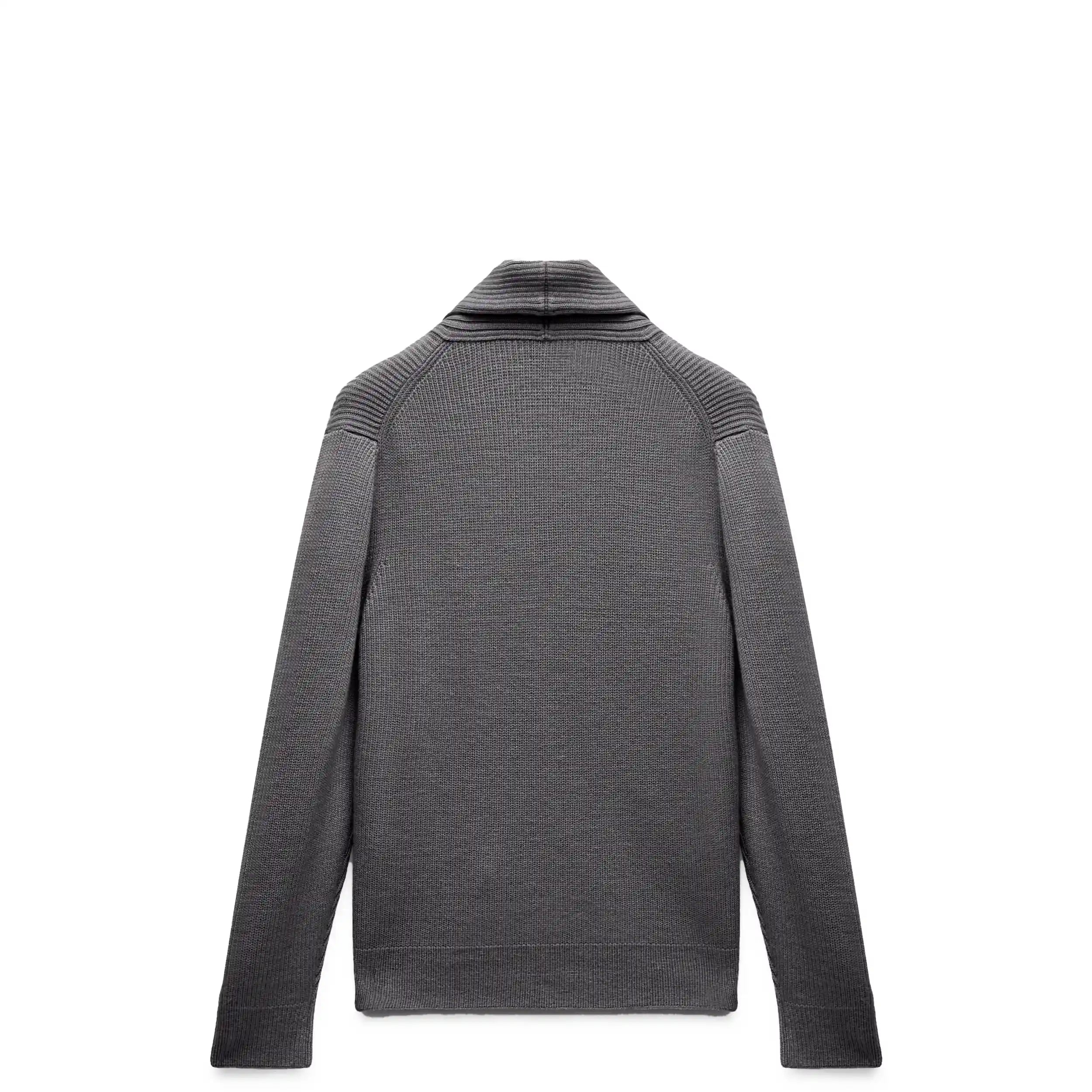 This shawl cardigan is crafted from premium merino wool milled in Italy. Featuring a standard fit, with fully fashioned seam construction. Designed with a rib knit collar and placket, faux horn buttons, semi-raglan sleeves, inset welt pockets, and rib cuffs and hem.