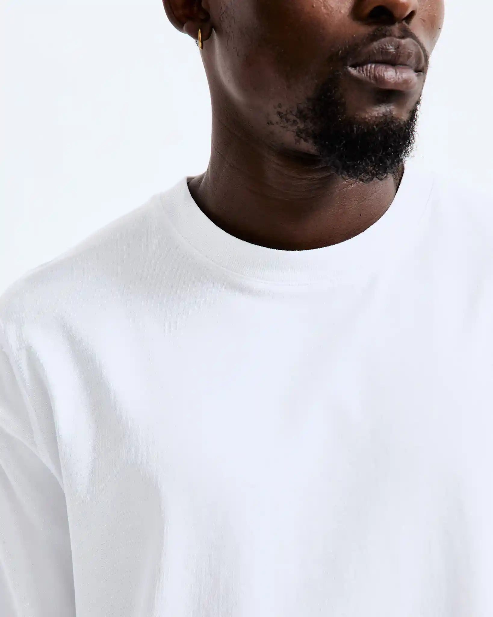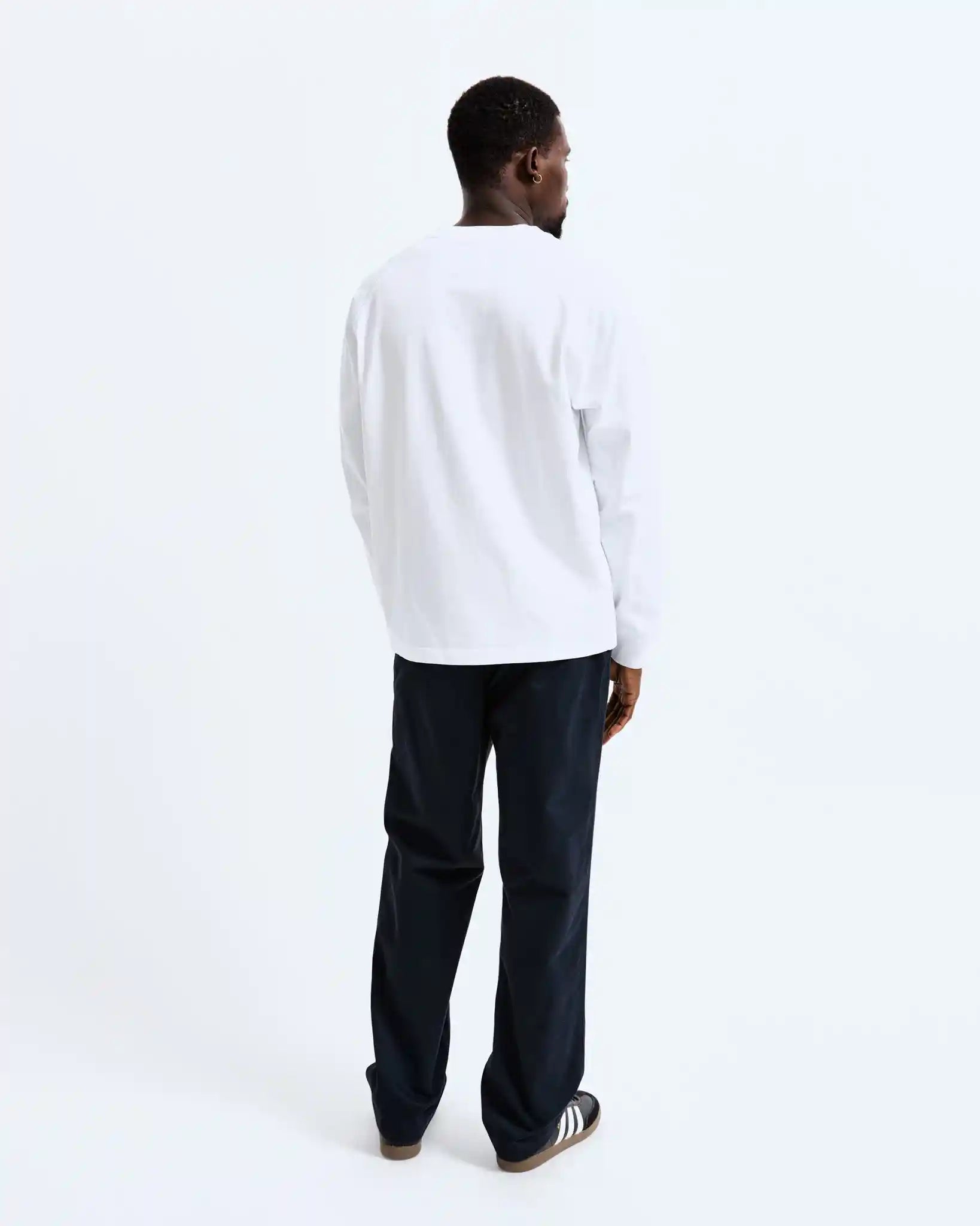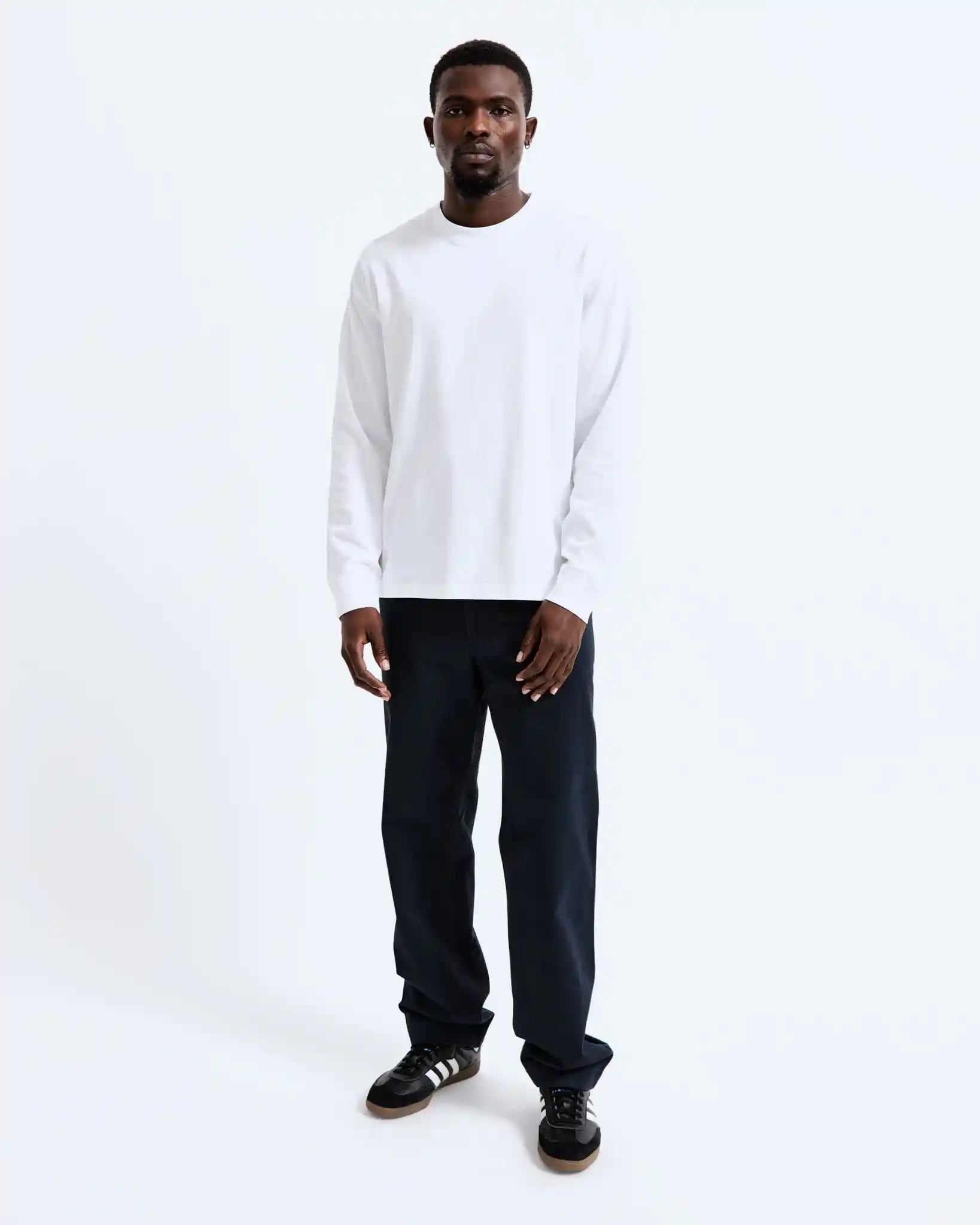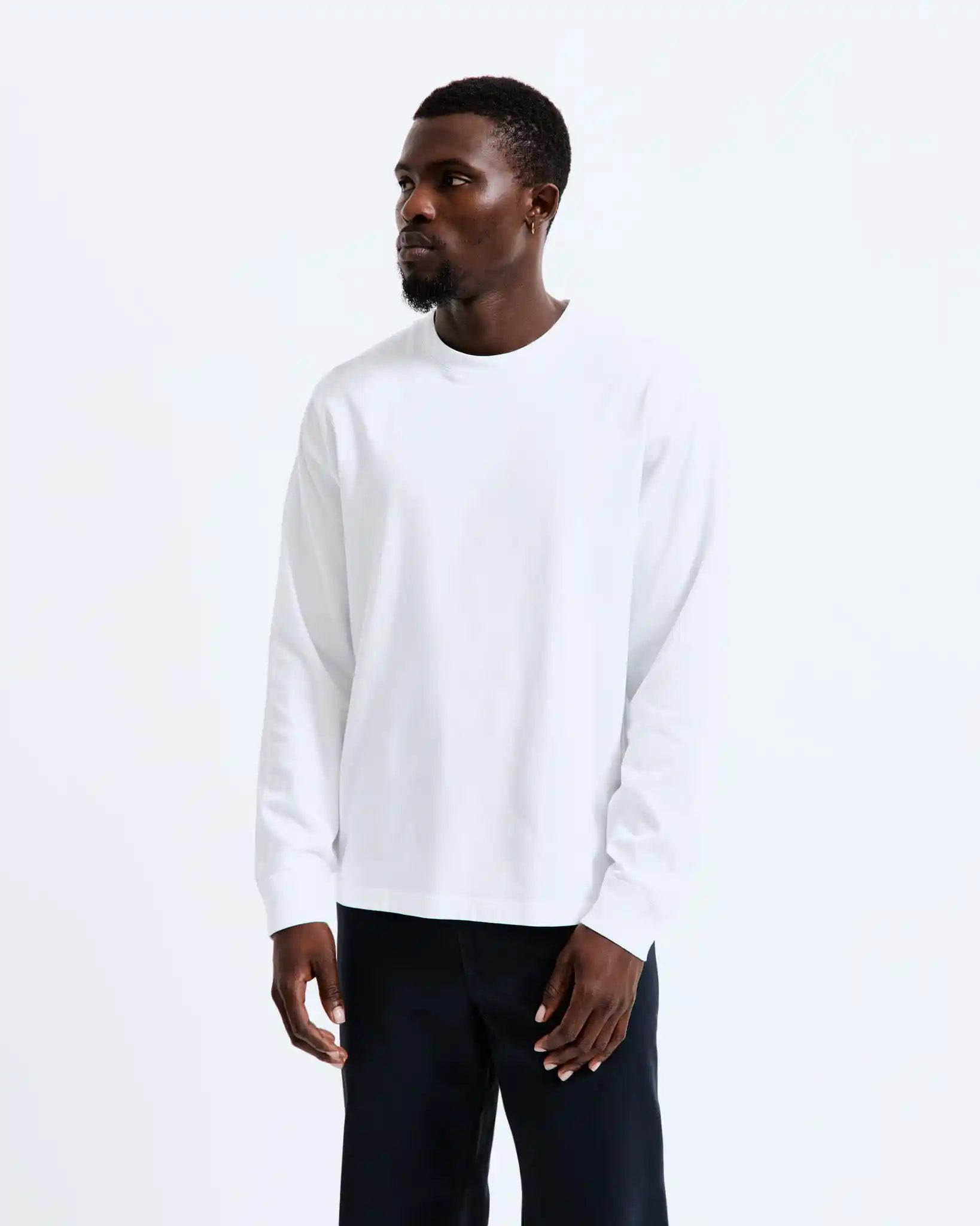 Reigning Champ's midweight long sleeve T-shirt is made from premium cotton, balancing substantial structure with a soft hand. Featuring a standard fit, with full-cut sleeves and torso. Designed with a wide rib collar, set-in sleeves, and signature flatlock construction.