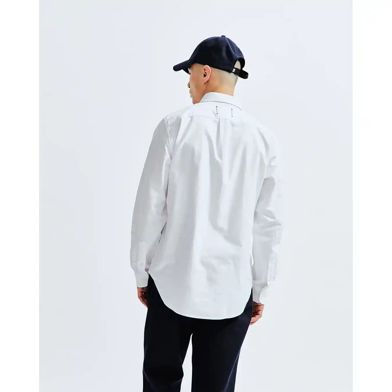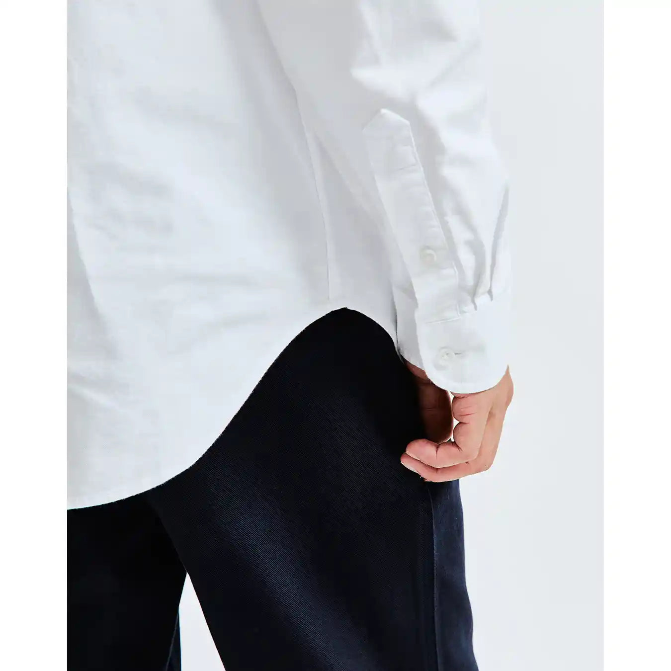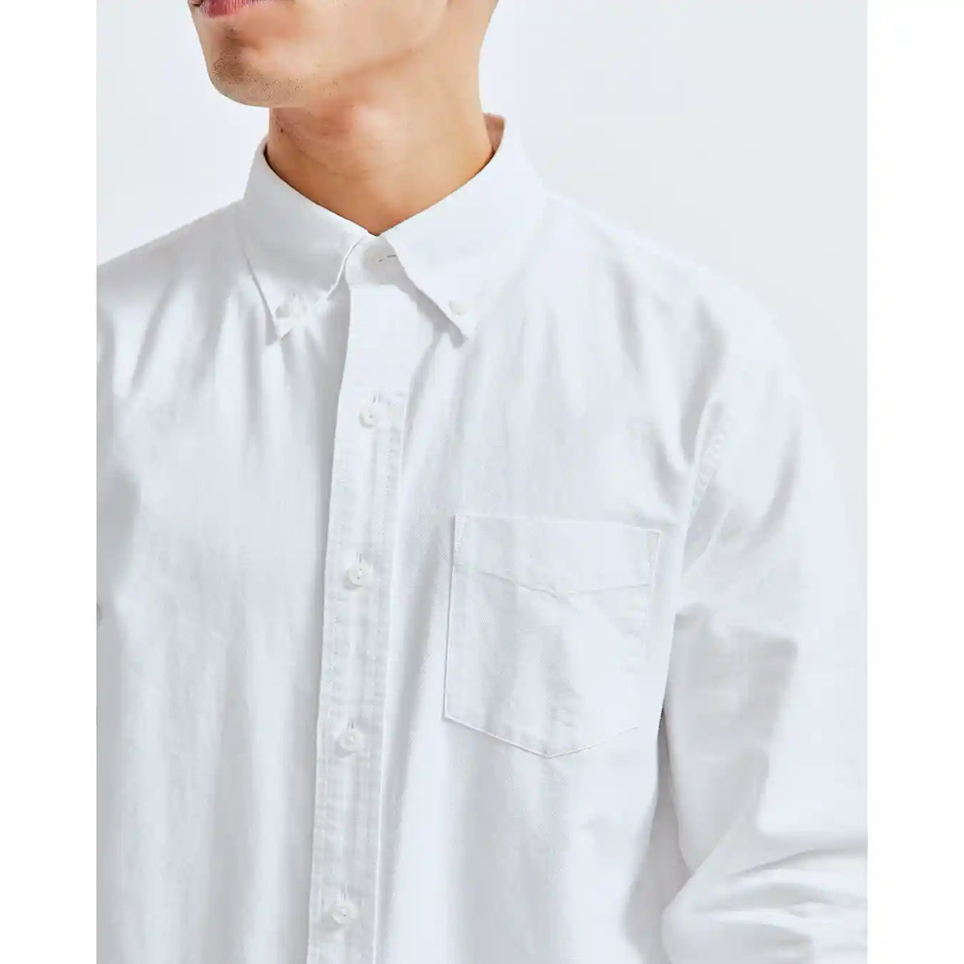 This buttondown shirt is crafted from classic cotton oxford in a year-round weight. Featuring a classic fit, with full cut sleeves and torso. Designed with faux horn buttons, a chest pocket, single button cuffs, rear yoke with box pleat, and a curved hem.