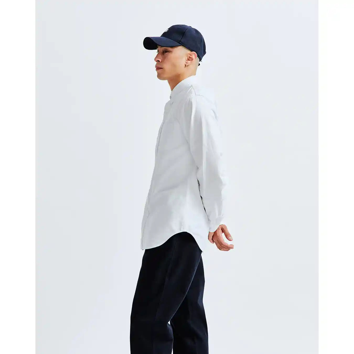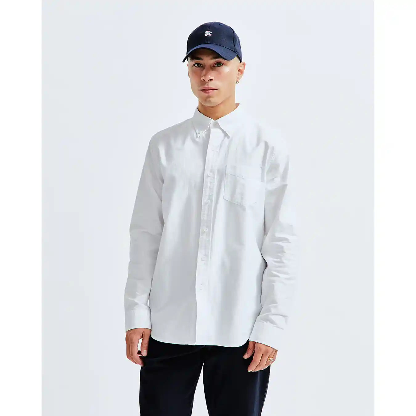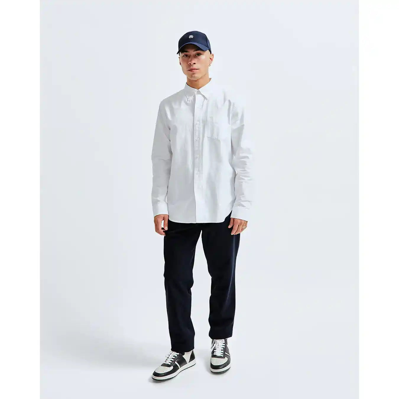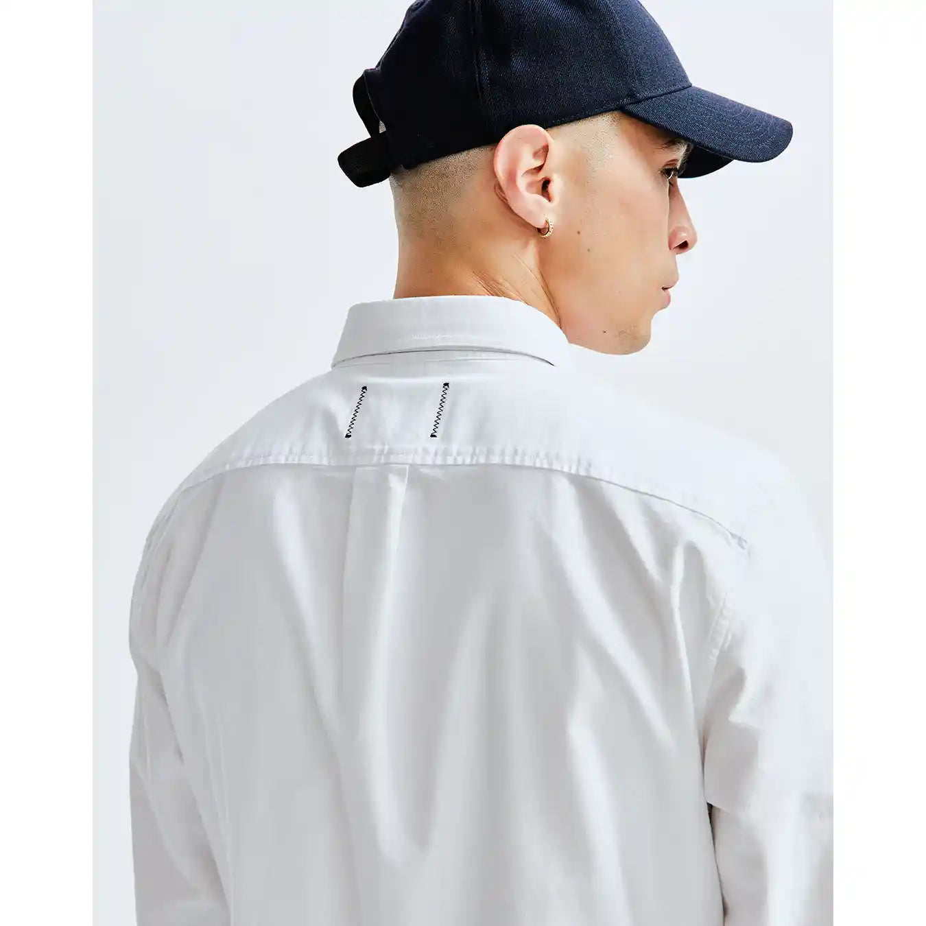 This buttondown shirt is crafted from classic cotton oxford in a year-round weight. Featuring a classic fit, with full cut sleeves and torso. Designed with faux horn buttons, a chest pocket, single button cuffs, rear yoke with box pleat, and a curved hem.